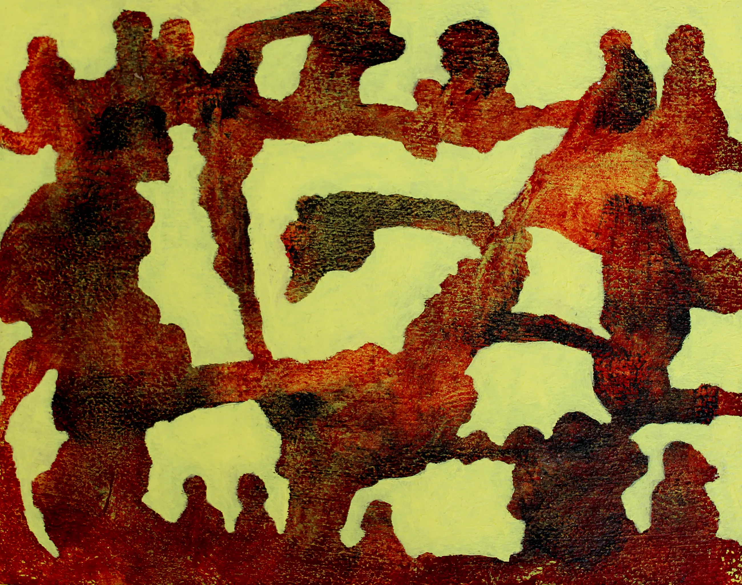 Schilderij uit 2018. Acryl- en olieverf op paneel (multiplex).