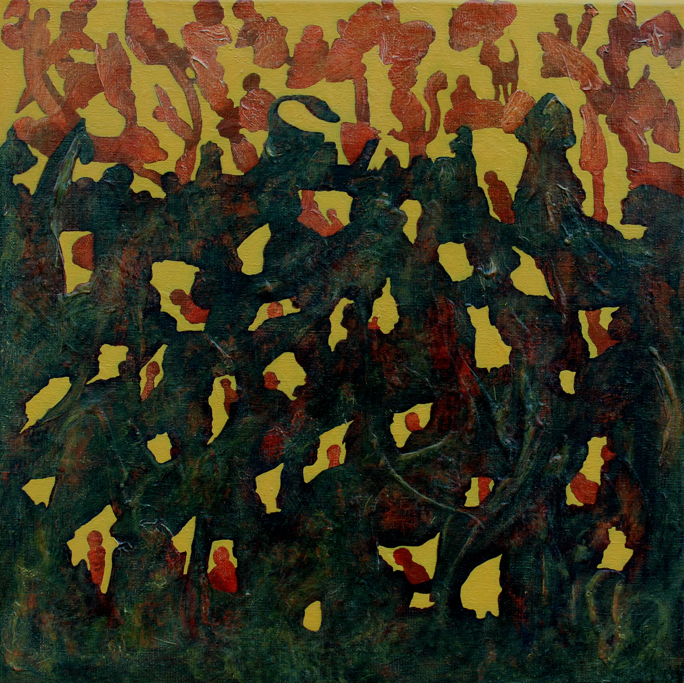 Schilderij uit 2015. Acryl- en olieverf op doek (linnen).