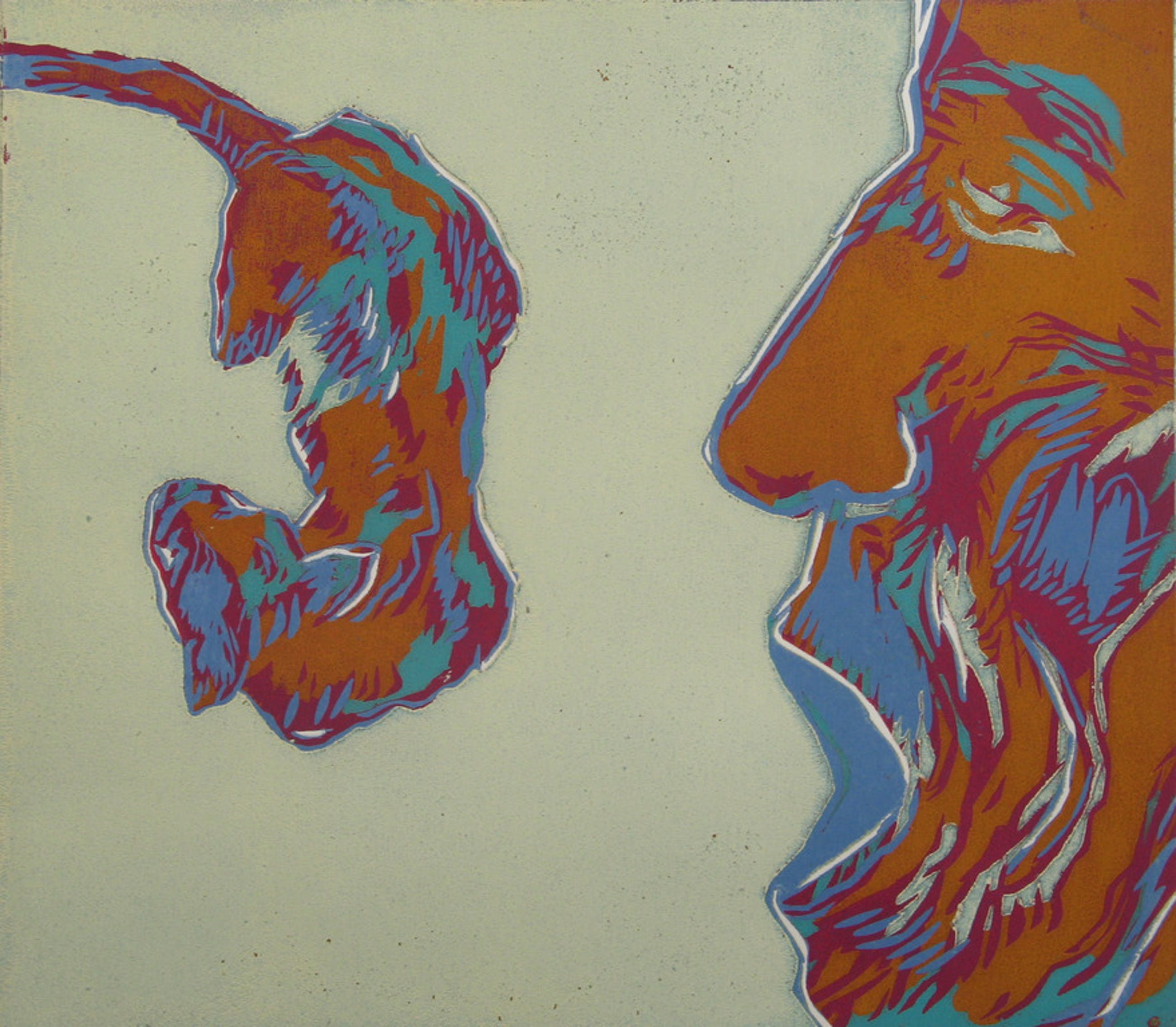 Houtsnede uit 2001 (vierkleurendruk op dik papier).