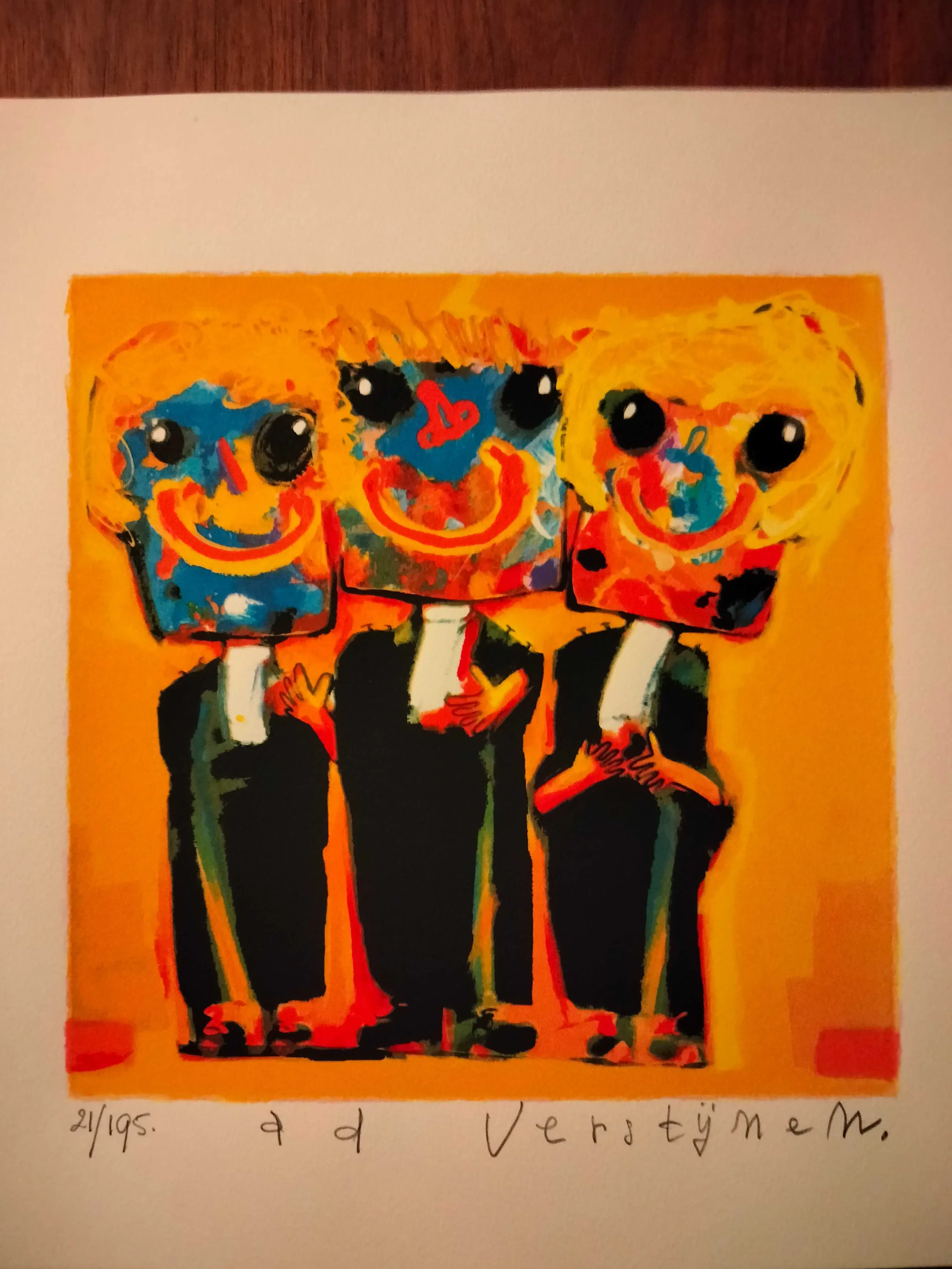 Kleurrijke in complete nieuwstaat verkerende zeefdrukken van ad verstijnen. De werken zijn nog nooit ingelijst geweest Het betreft hier 5 zeefdrukken. De werken waarop u bied hebben de volgende oplage nummers Oplage nummer s 25/195 129/195 37/195 71/195 59195
