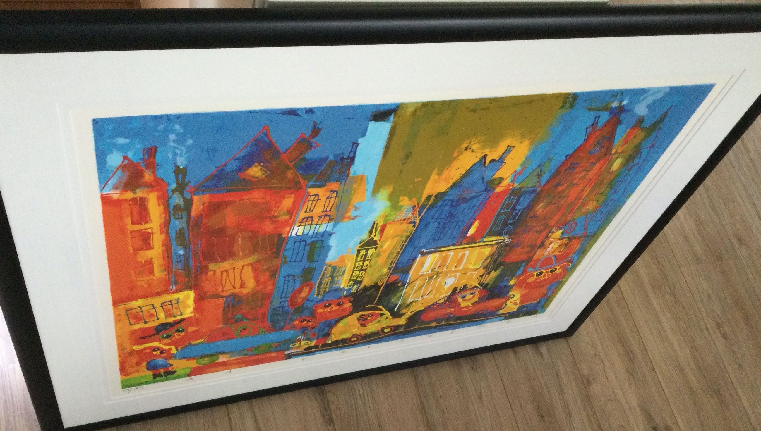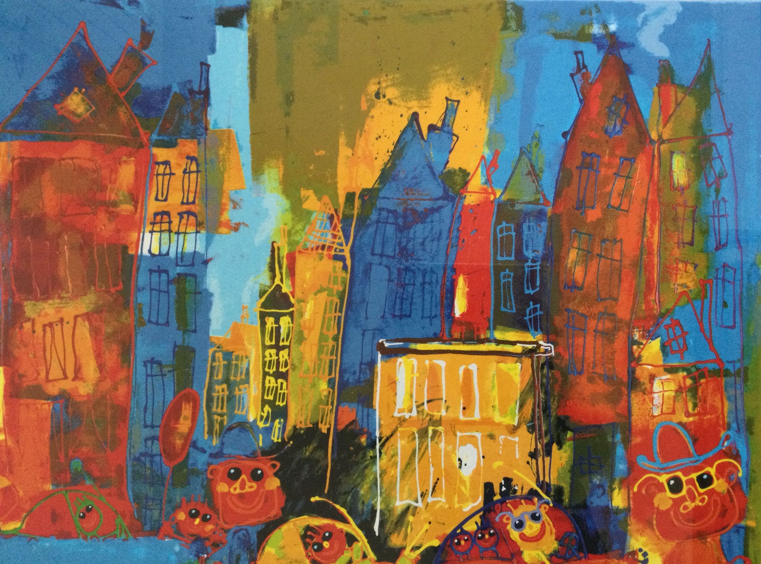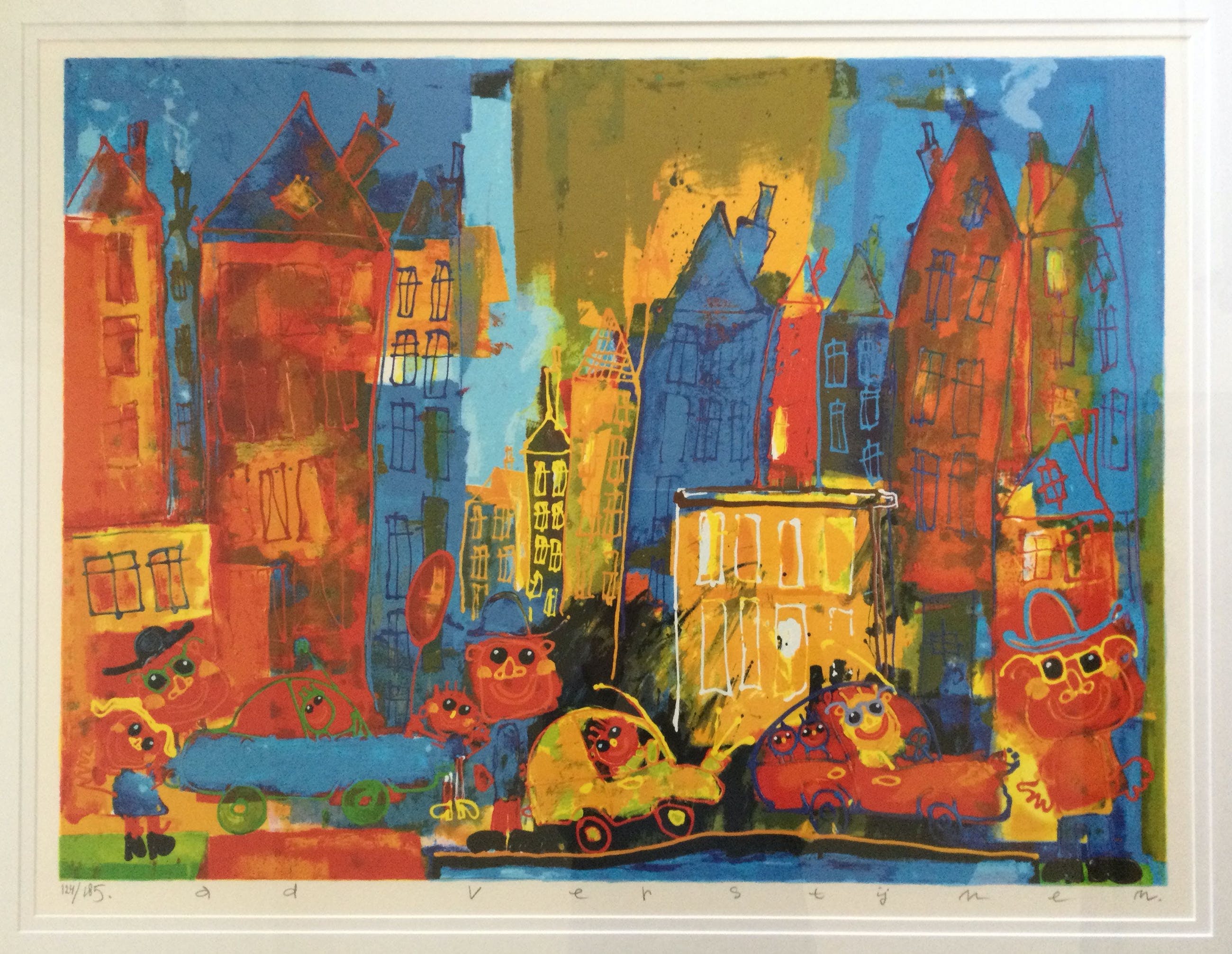 Deze kleurrijke en vrolijke zeefdruk draagt de titel 'Big City'. Elders wordt 'ie ook als 'Big Town' geduid.