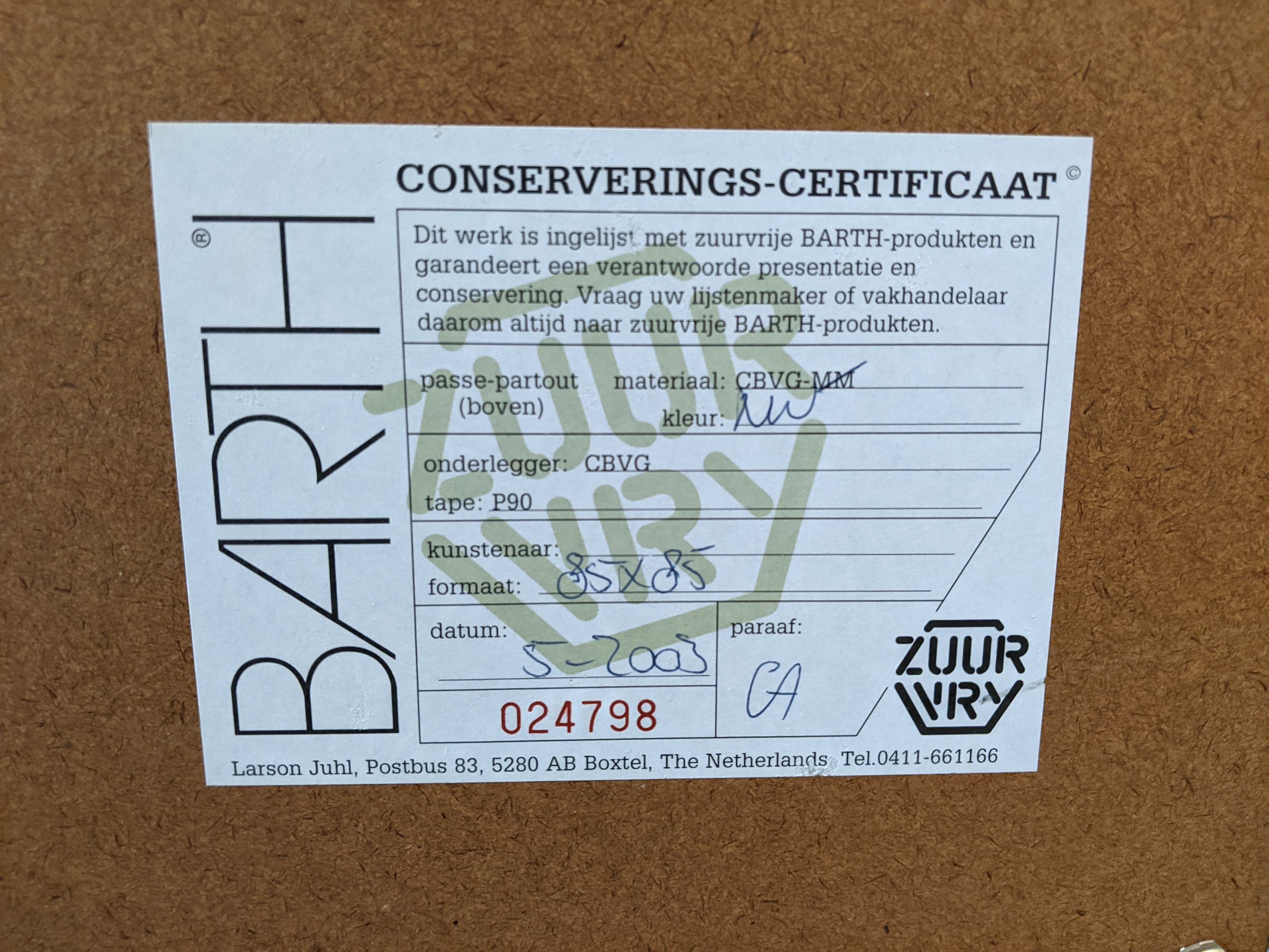 Afmeting blad 64x64 cm (incl. lijst & passepartout 90x90 cm).