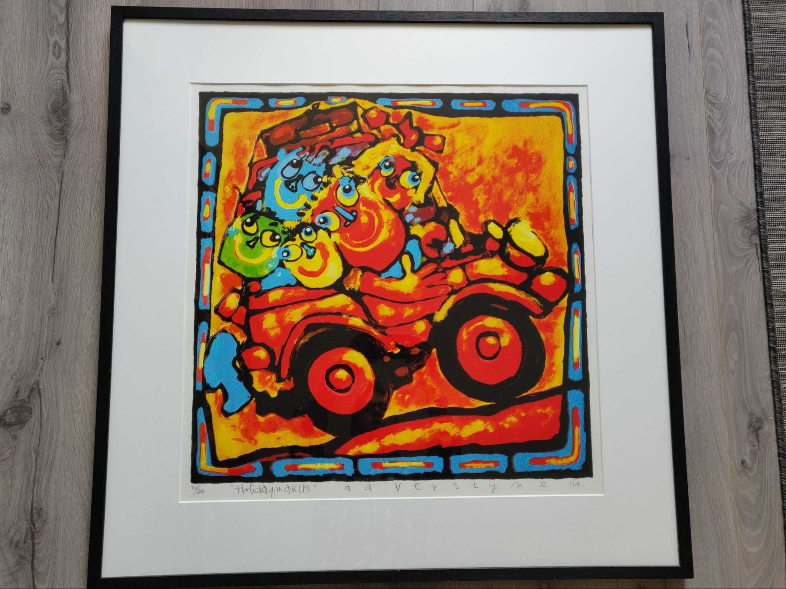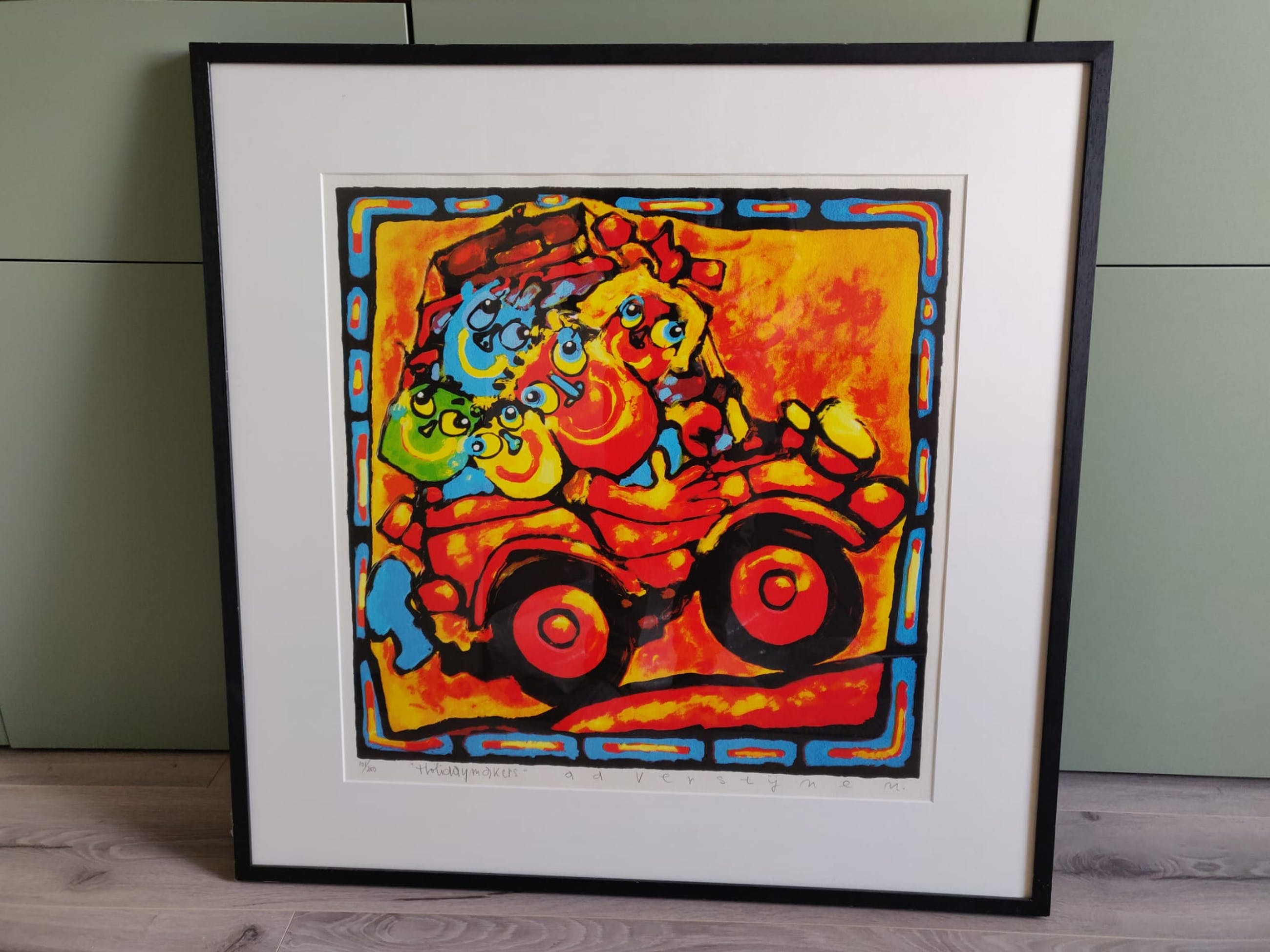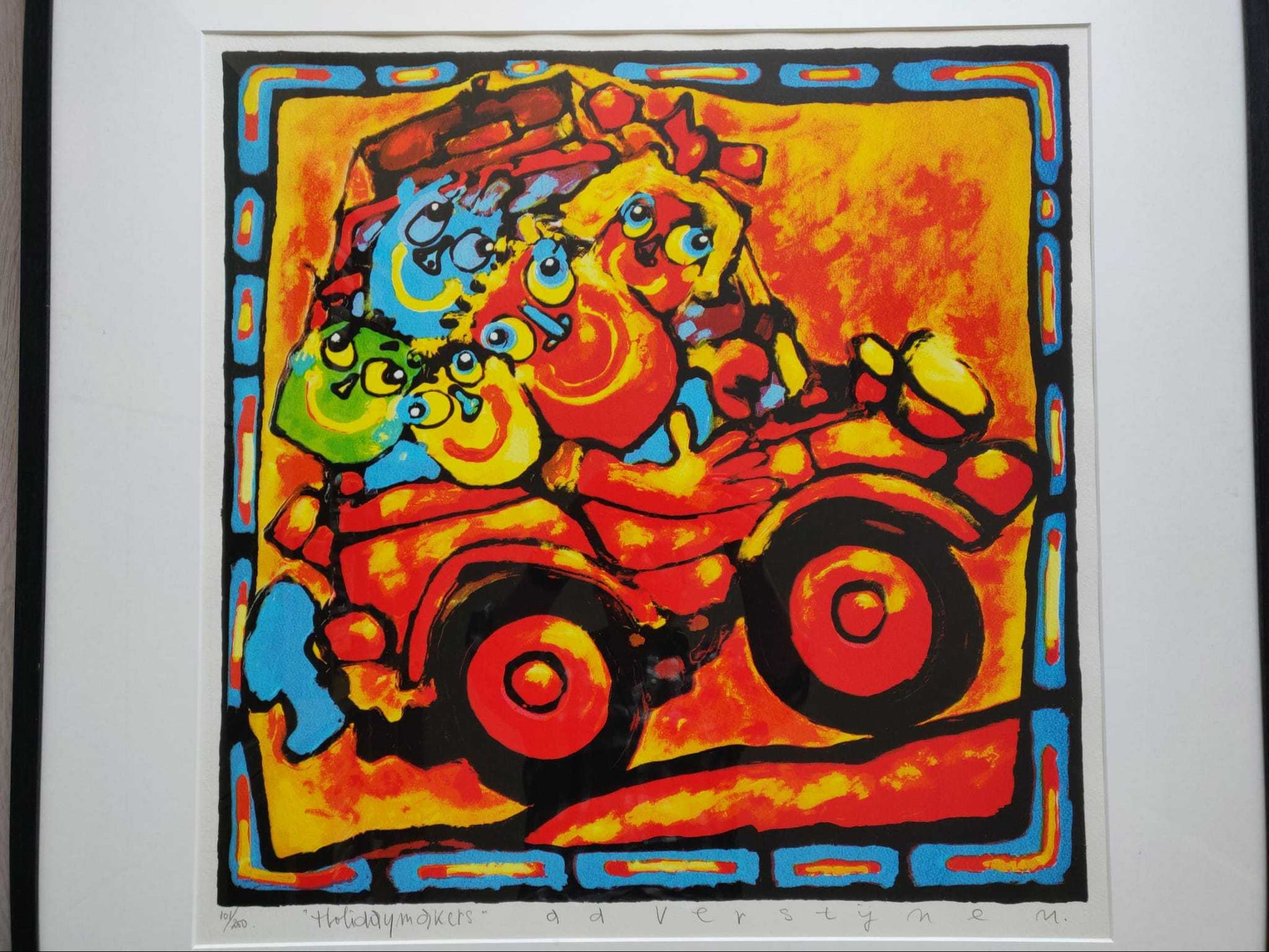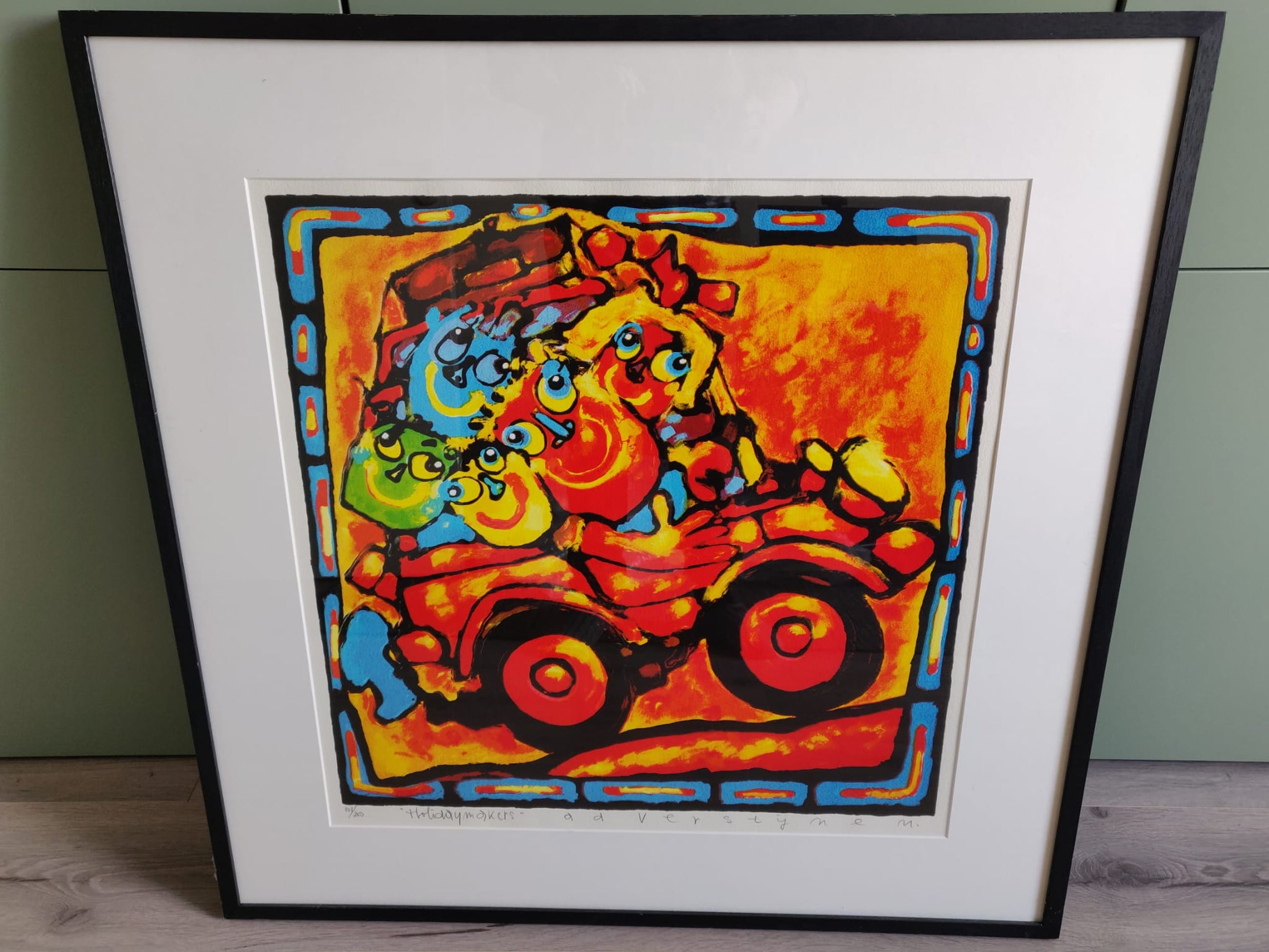 Prachtig groot kleurenzeefdruk van Ad Verstijnen. Holiday Makers - kleurrijk, vrolijk, vakantiegevoel