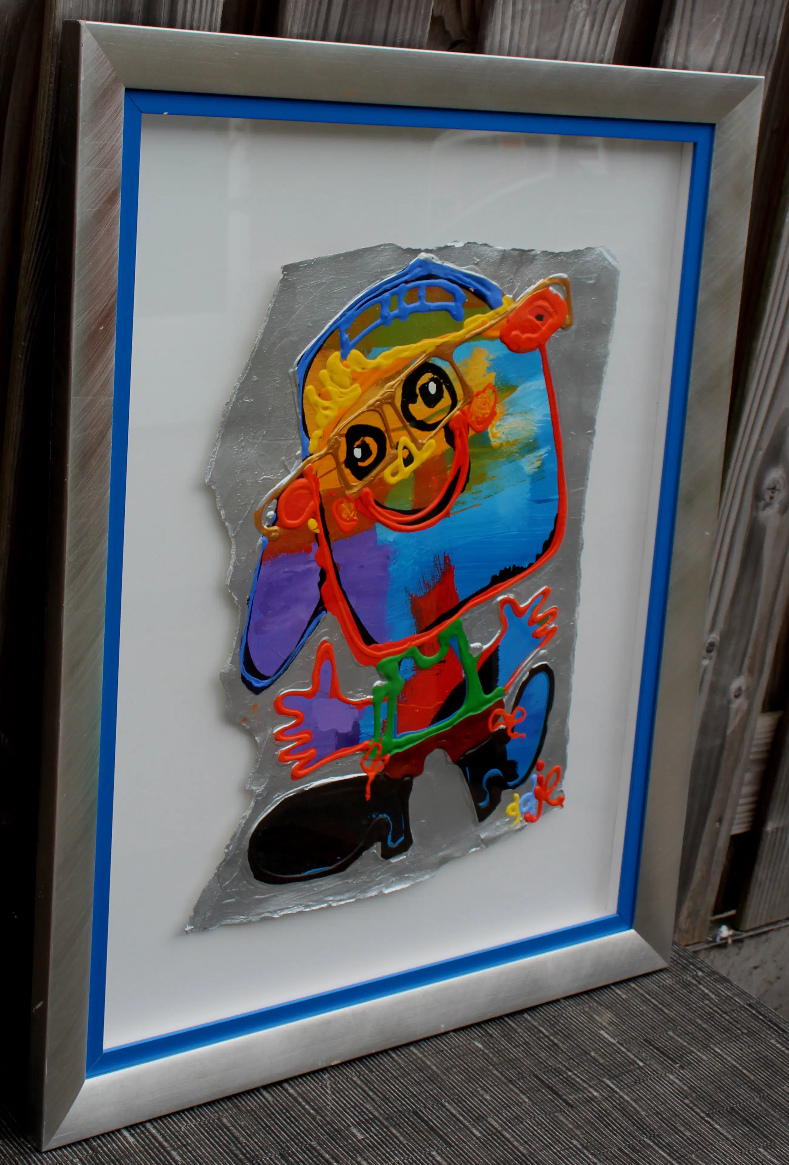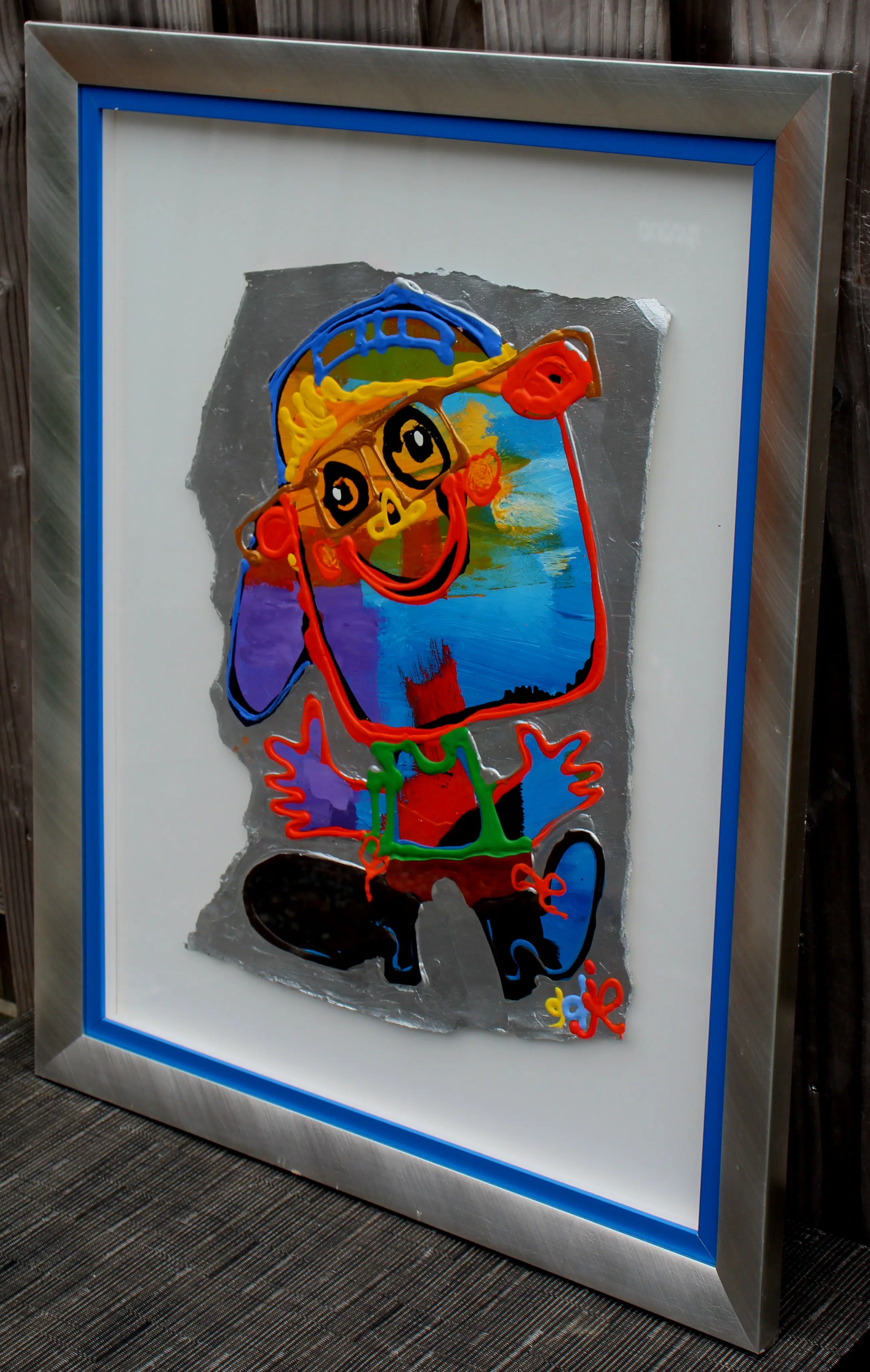 ingelijste olieverf op papier van Ad Verstijnen. Leuk en vrolijk werk. Titel: ''Happy''. Afmetingen incl lijst: H79 x b64cm. Afmetingen voorstelling: H52 x b38cm. Het werk is rechtsonder gesigneerd door de kunstenaar. De authenticiteit van het, aangeboden, werk wordt volledig gegarandeerd. Een certificaat van echtheid kan, op aanvraag, worden gemaild.