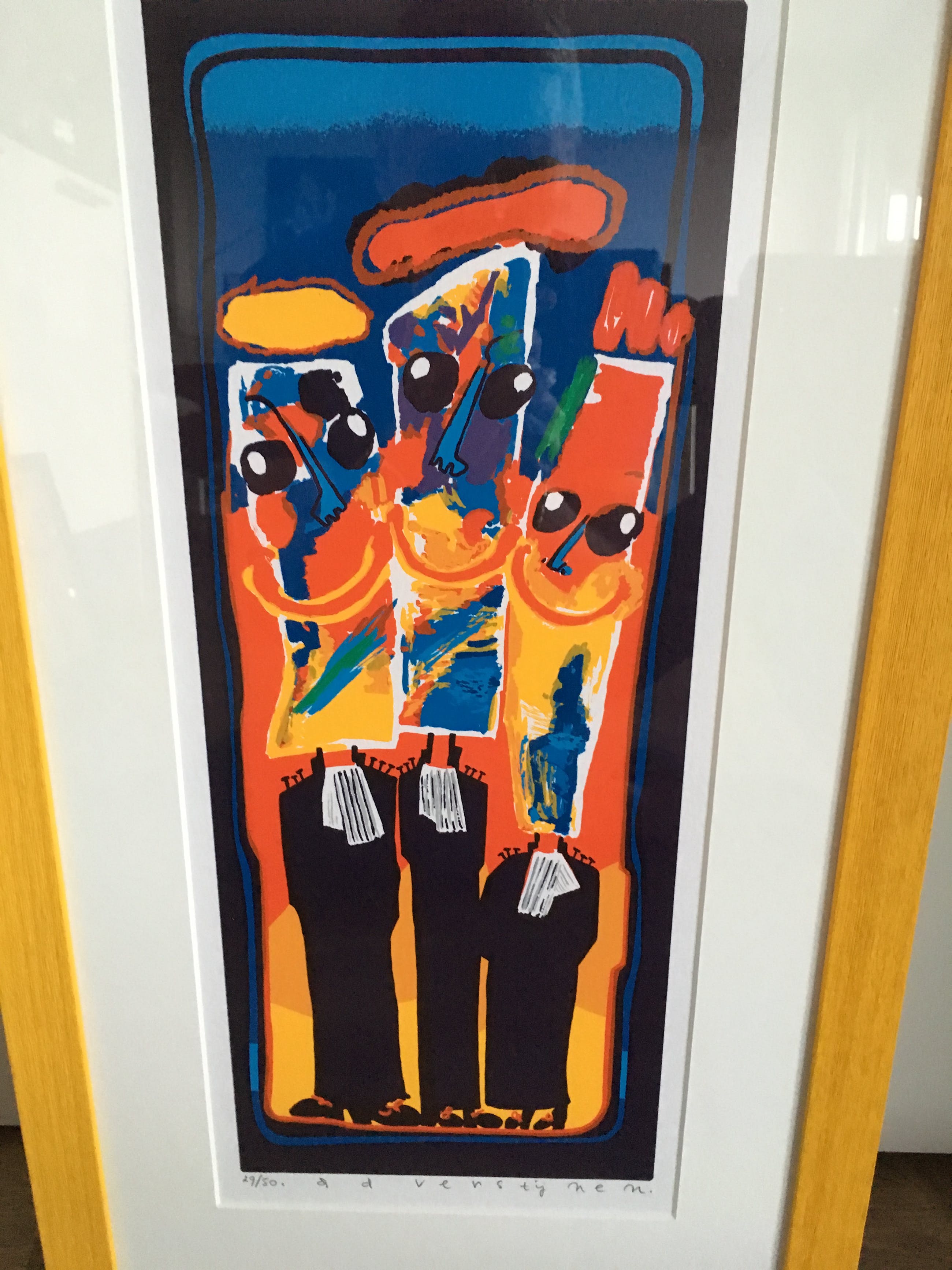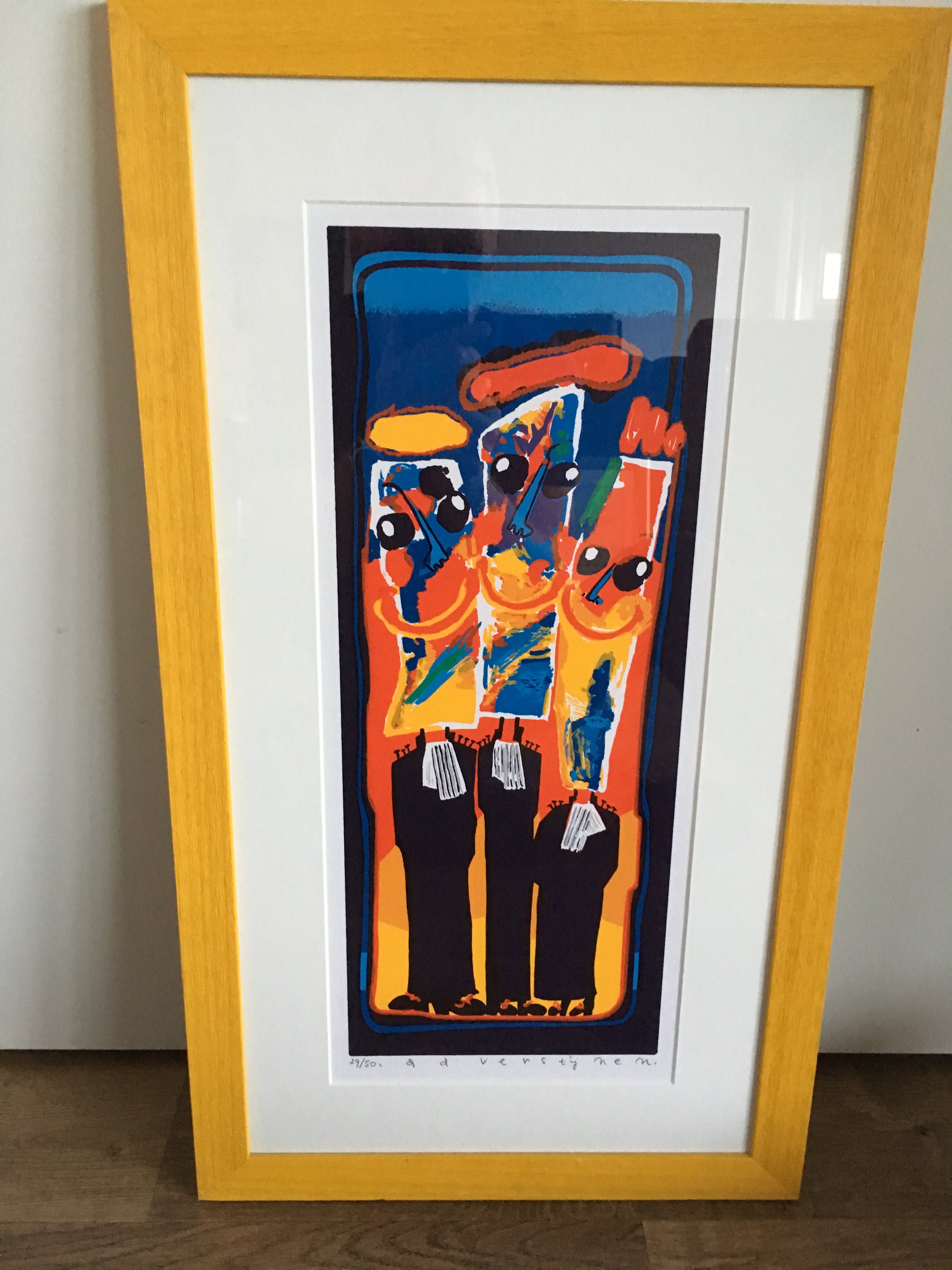 Fraaie kleurenlitho met mooie geel houten lijst. Nr 29 van 50.