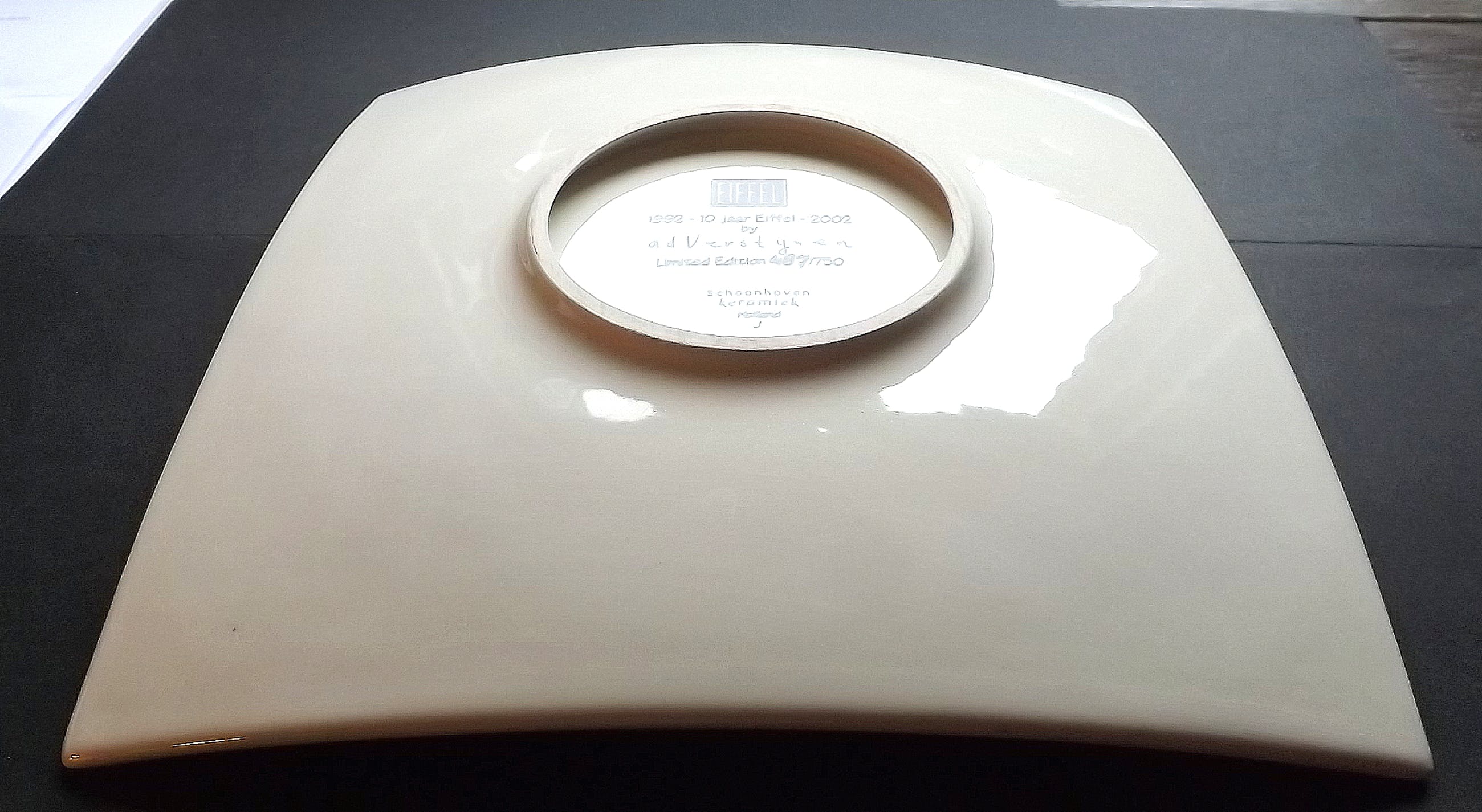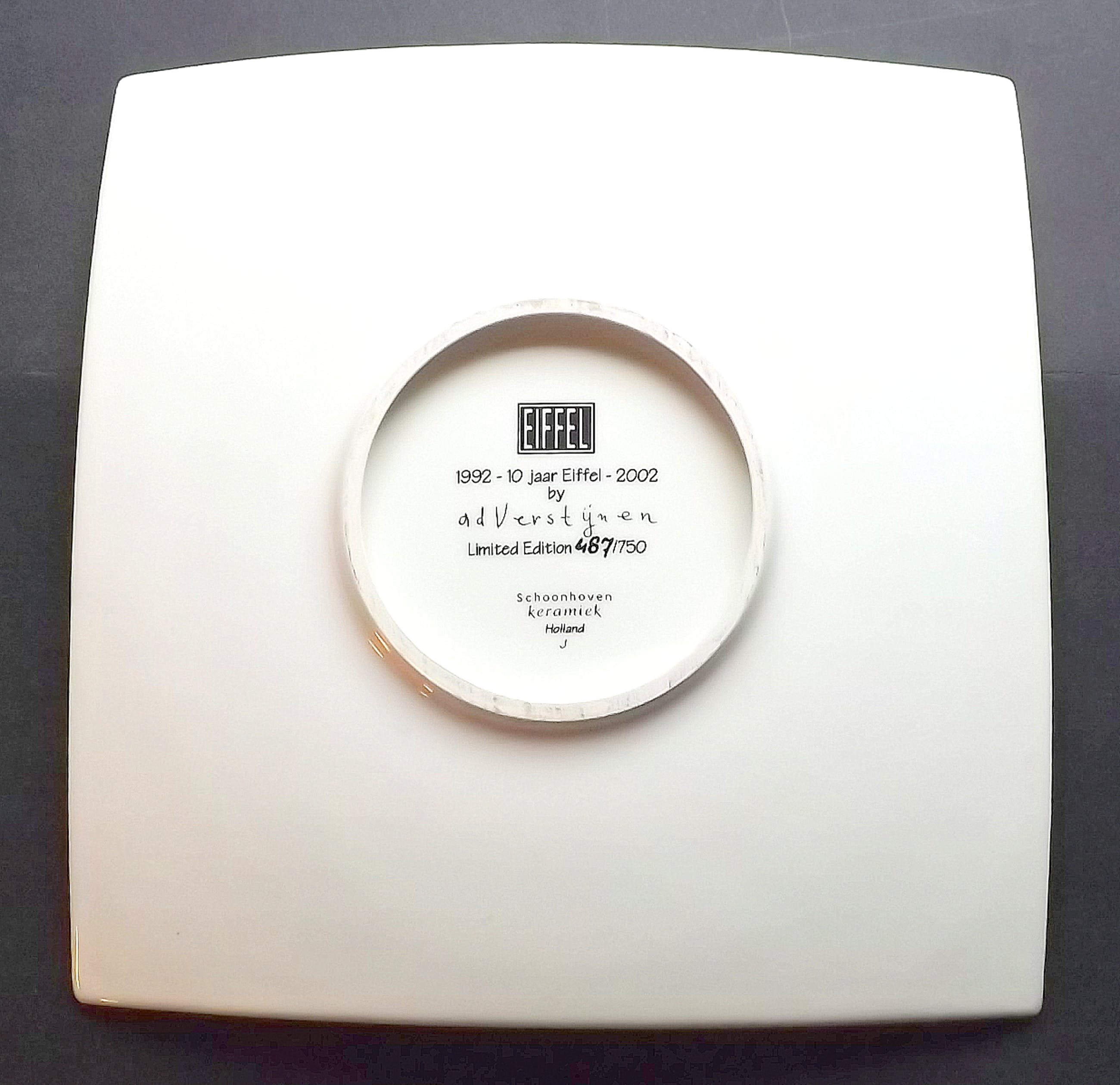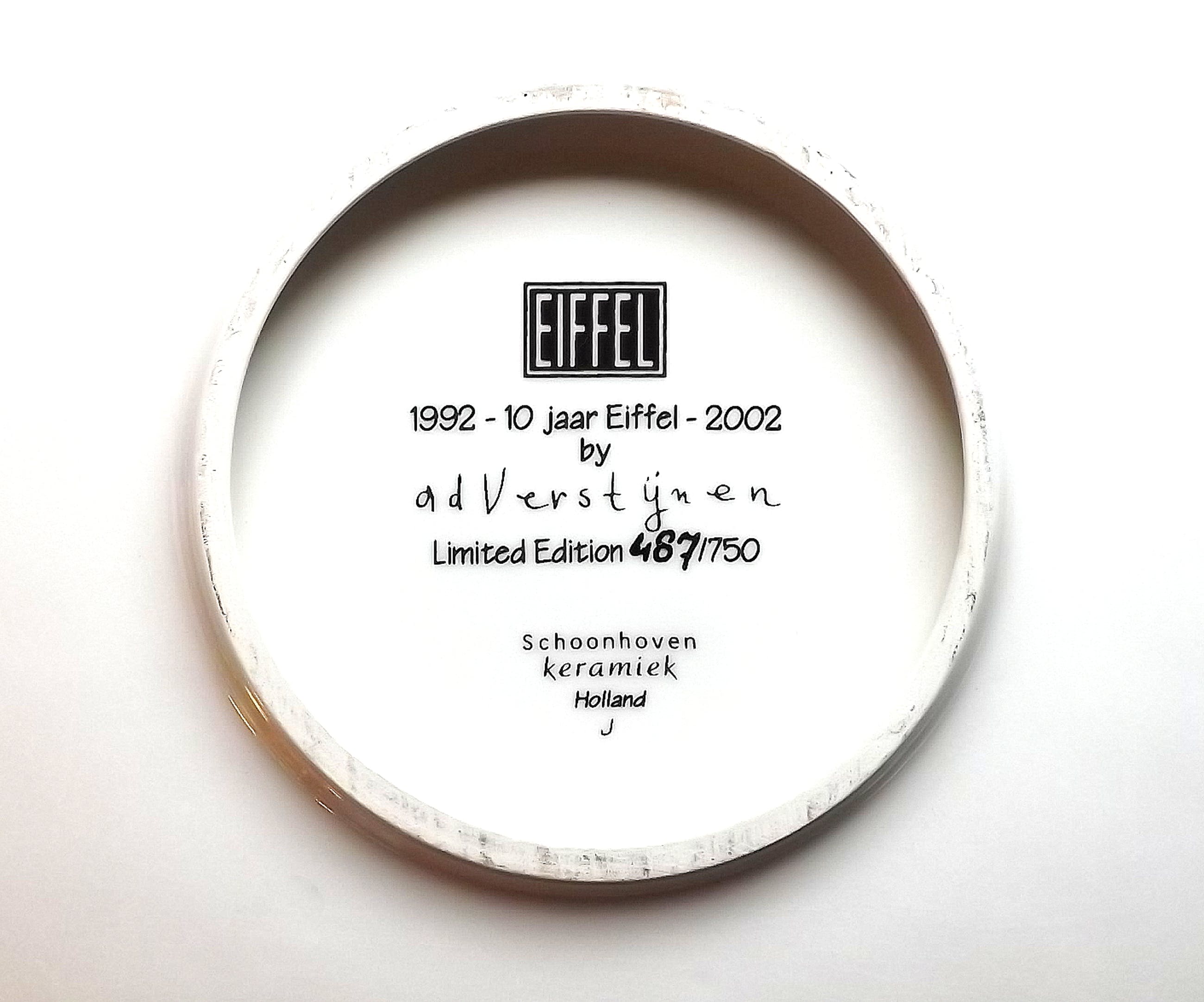 uitgifte 10 jaar Eiffel - 1992-2002 limited edition 487/1750Schoonhoven keramiek Holland (J) 27x27x h 4 cm