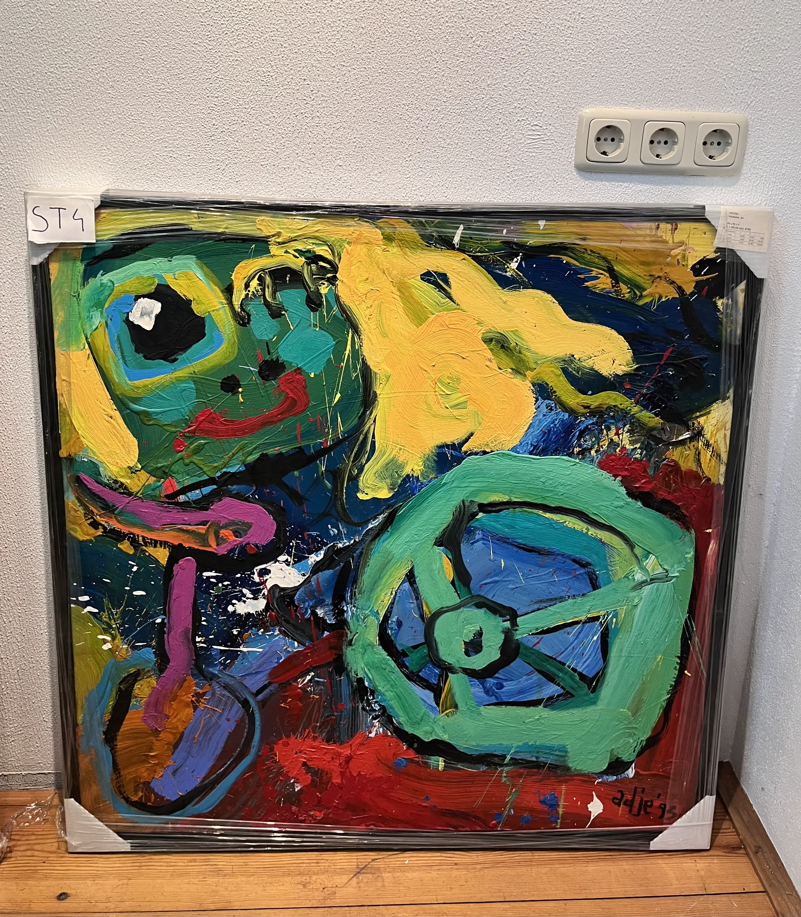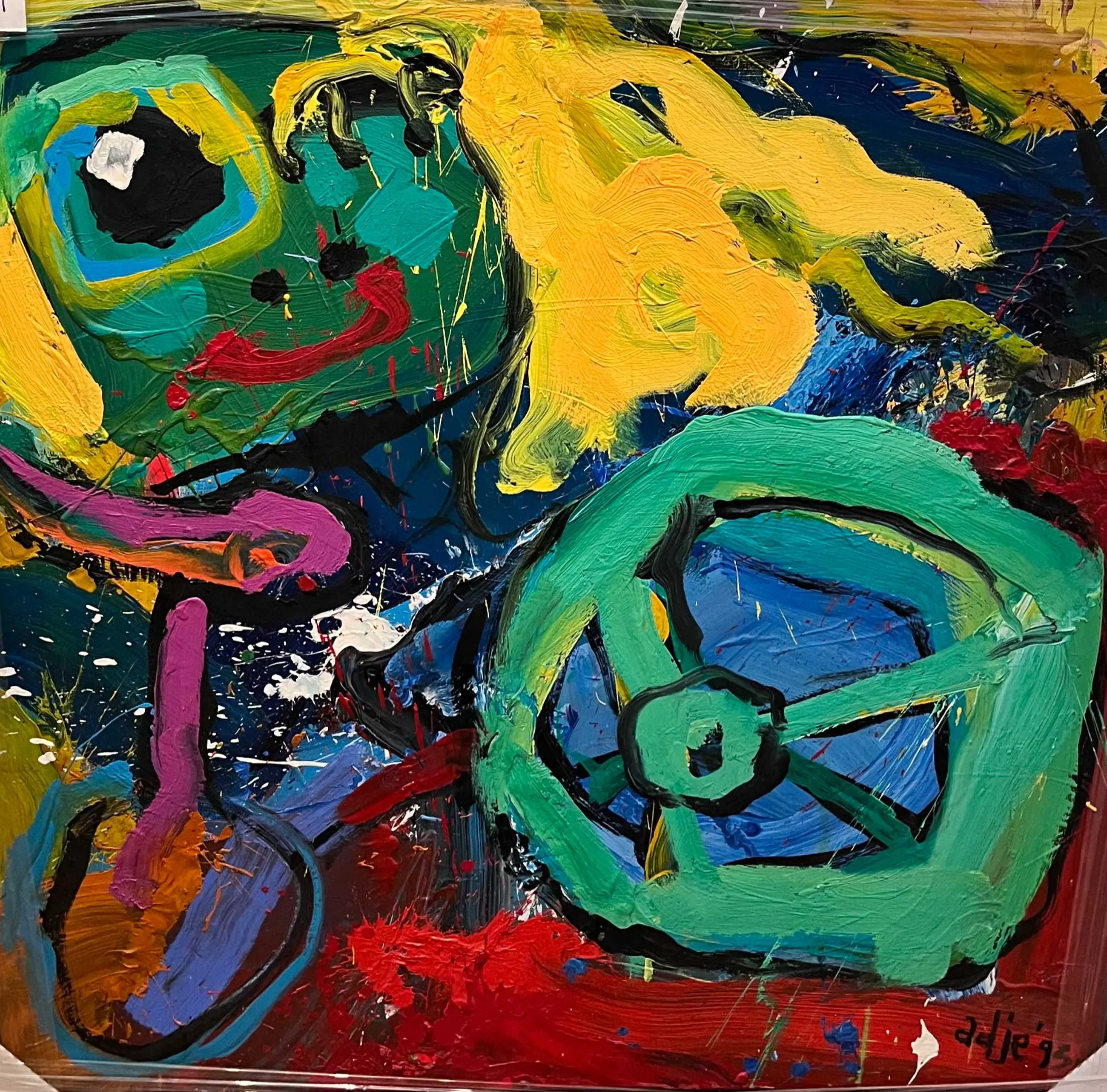Kleurrijk doek van Ad Verstijnen. Gesigneerd door de kunstenaar. U kunt het werk vooraf komen beoordelen in de schatkamer van galerie Rotor in Gorcum. In overleg kunt u uw aankopen laten opslaan in onze verwarmde opslagruimte en ze in een later stadium ophalen. De lijst is niet nieuw maar kan zo aan de muur. Andere lijst? Wij kunnen ook uw inlijstingen verzorgen.