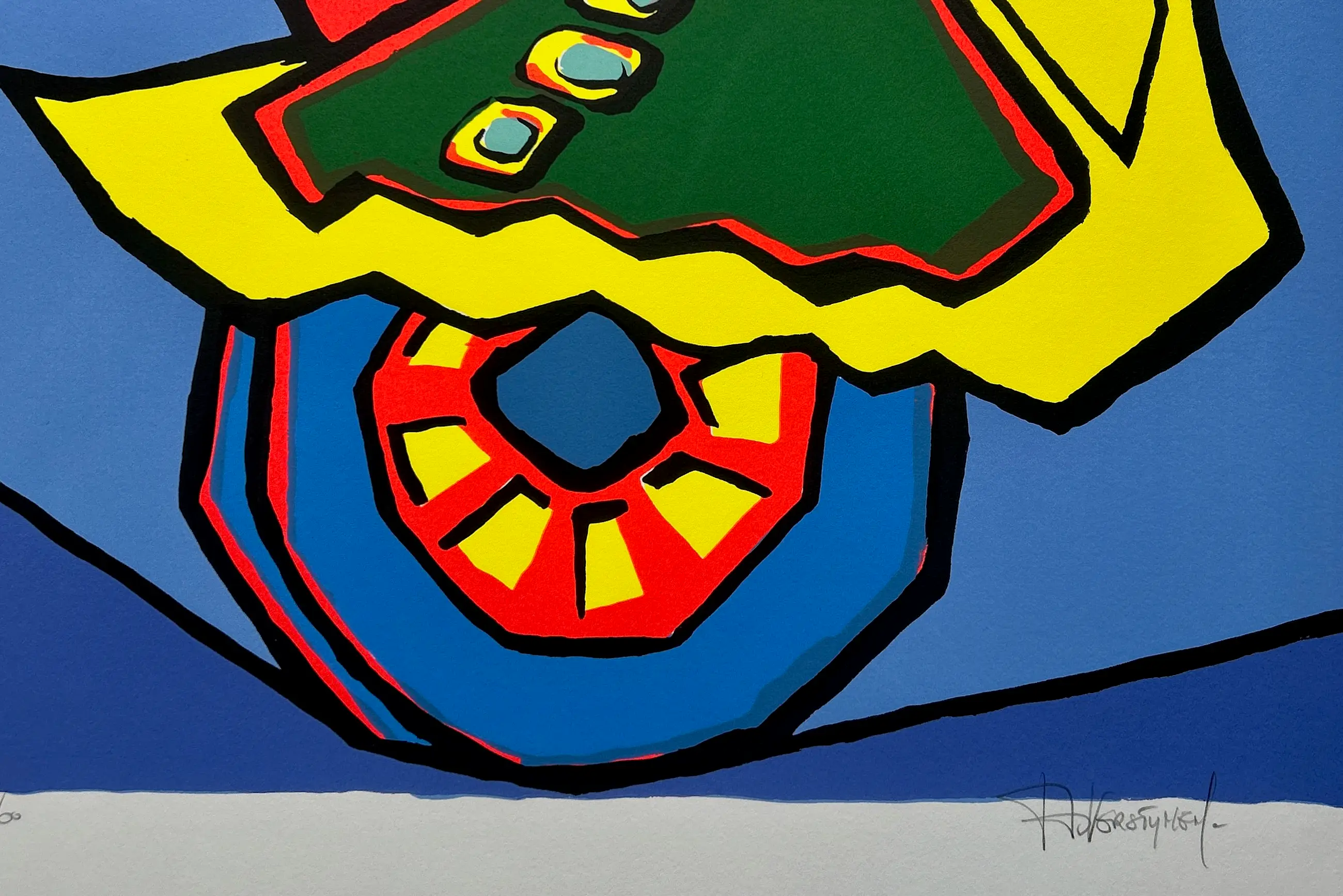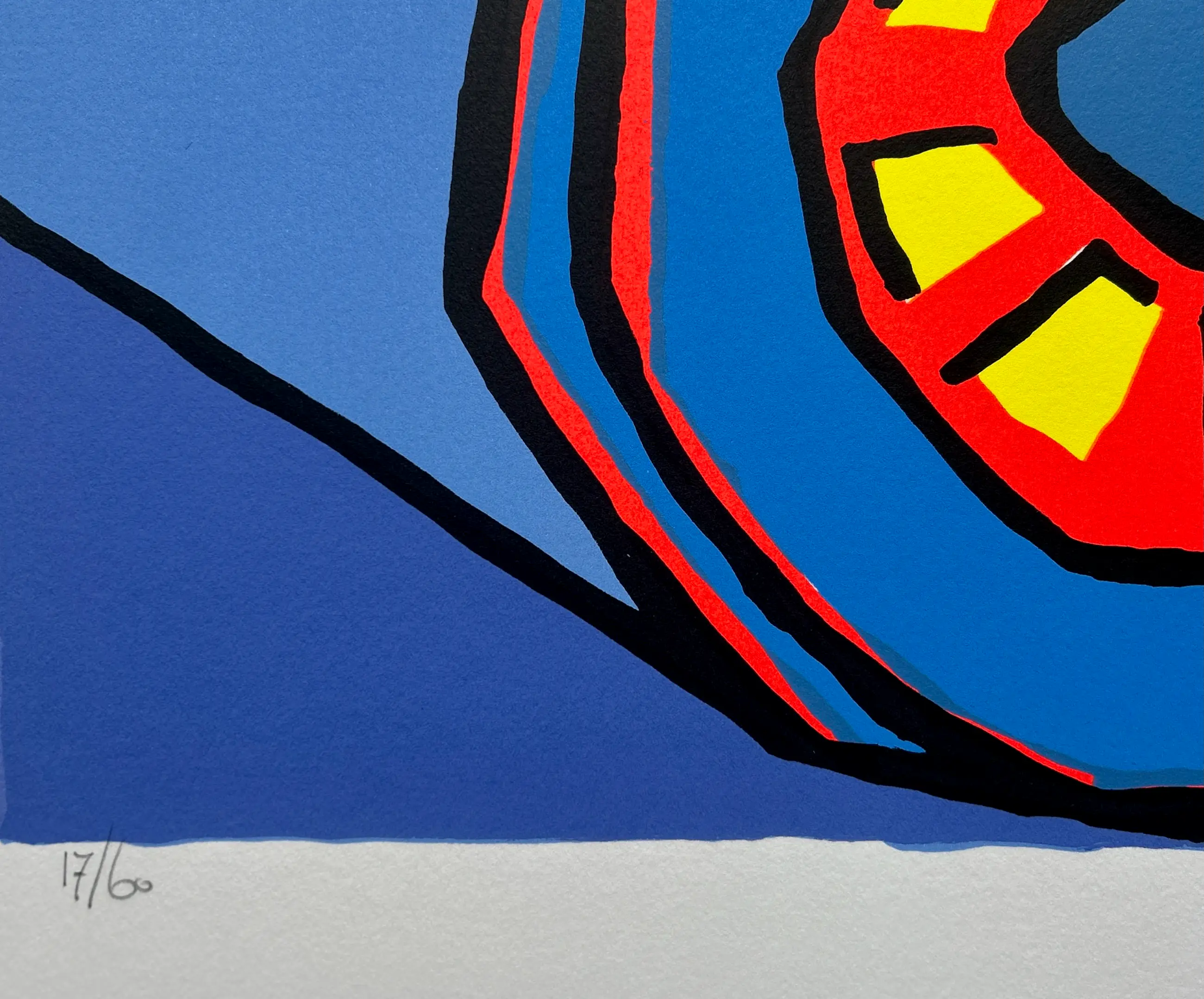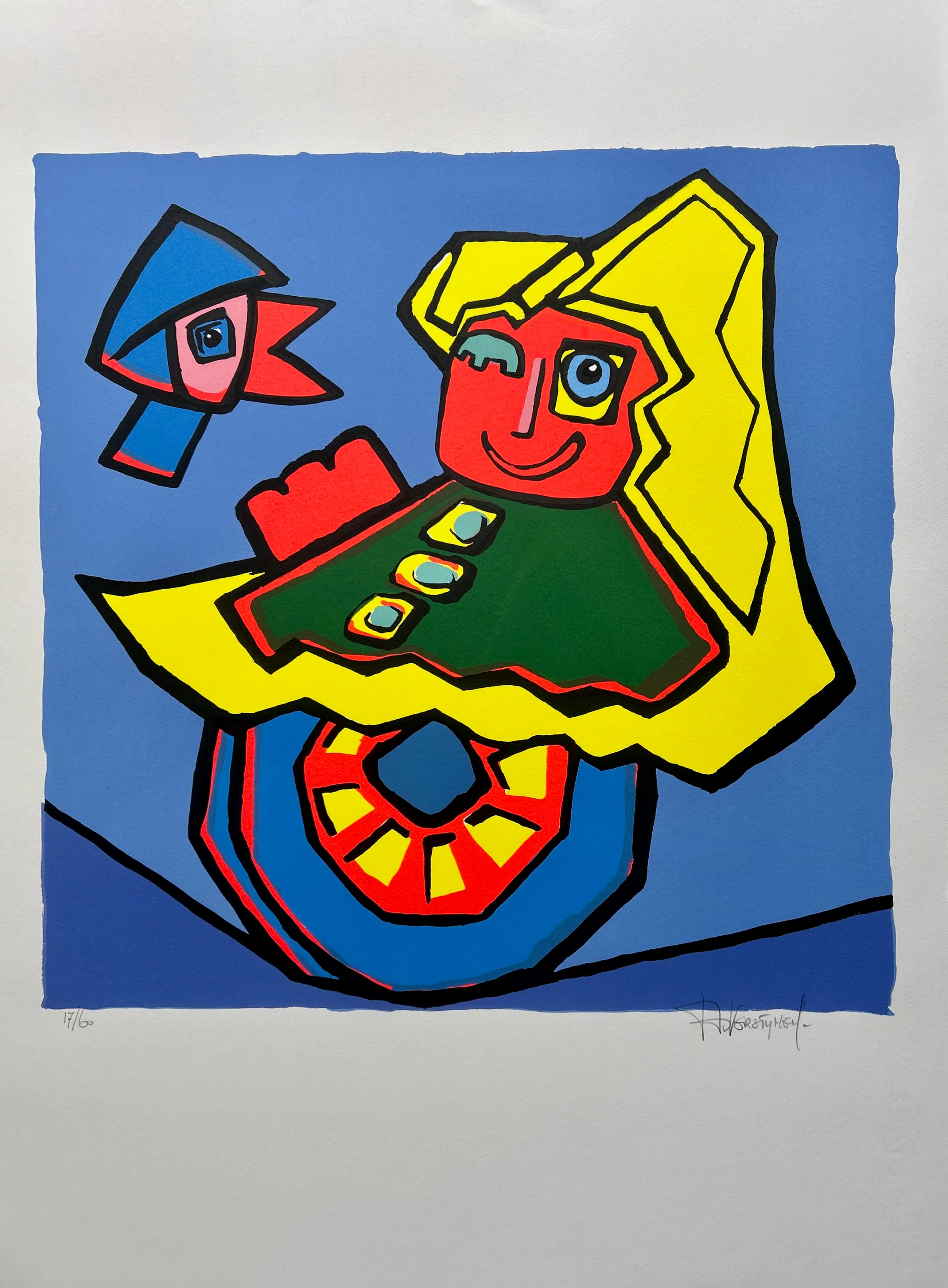 Conditie: uitstekend. Licht deukje bovenrand vel, zie foto. Oplage: 17/60. Afmeting: afbeelding 50 x 50 cm. Papiersoort: BFK Rives. Wordt verzekerd verzonden in een stevige kartonnen koker.