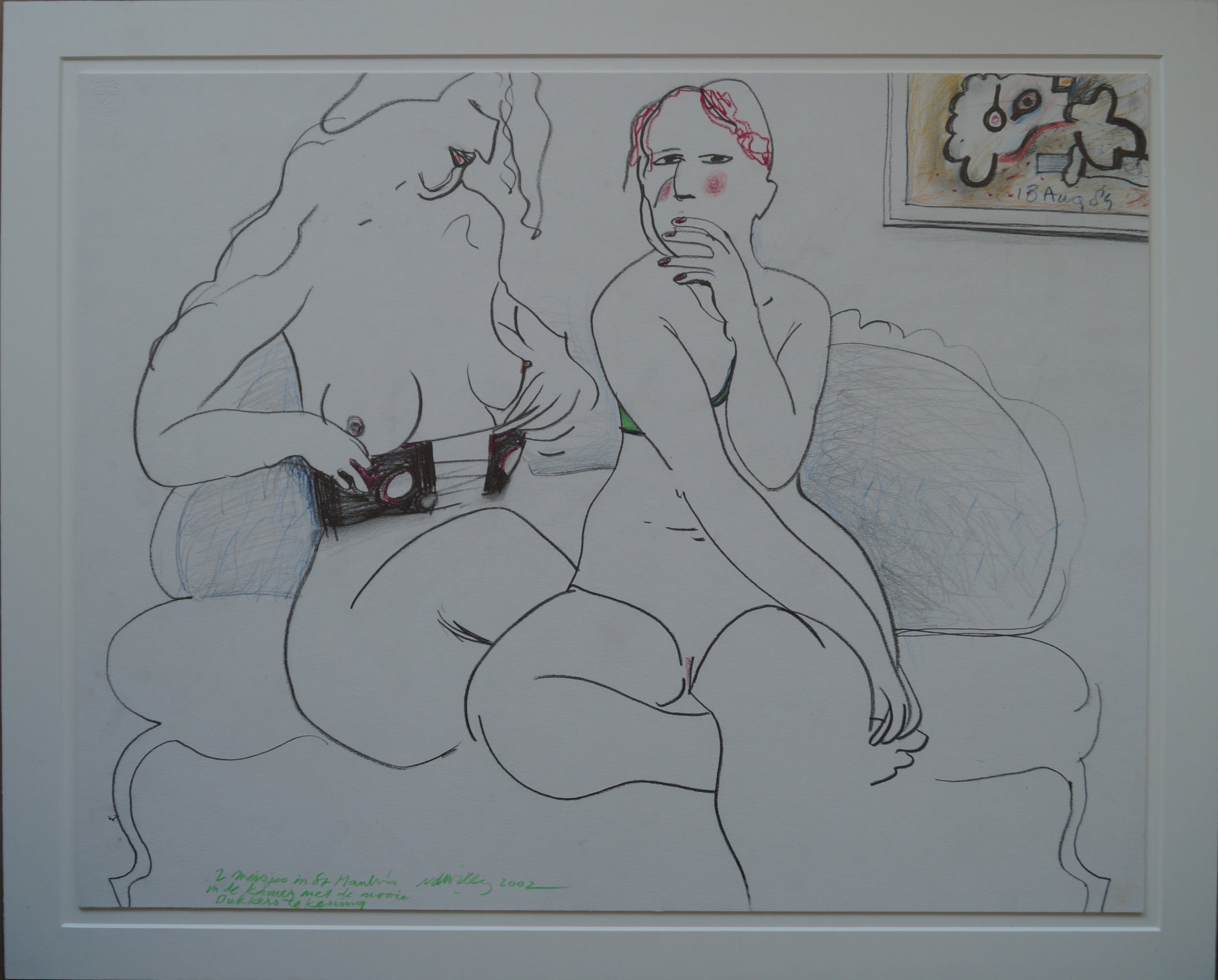 Ad Willemen - 2 meisjes in St. Maulvis ...... gesigneerde tekening