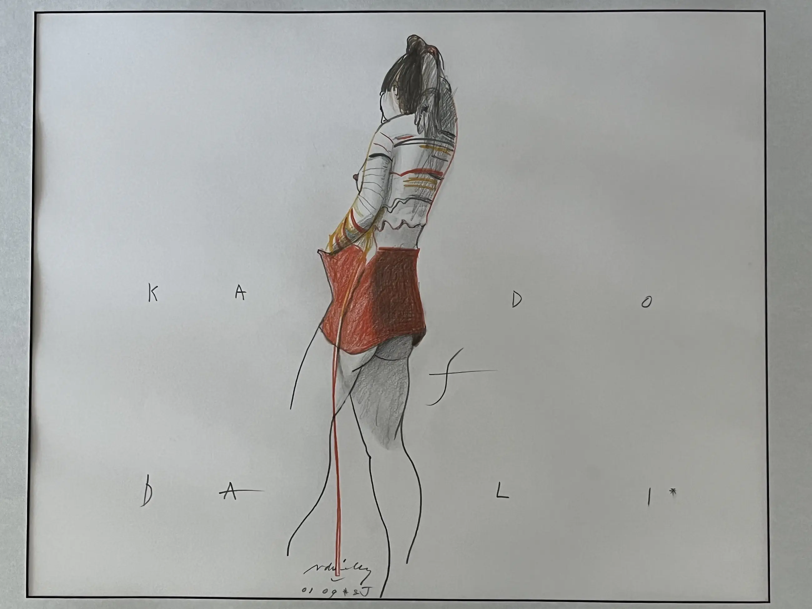 Karakteristieke ingekleurde tekening, gelijst in witgeverfde houten lijst. (Lijst mag wel een likje verf hebben) Afmeting tekening 49 x 61 cm. Inclusief lijst 73 x 85 cm.