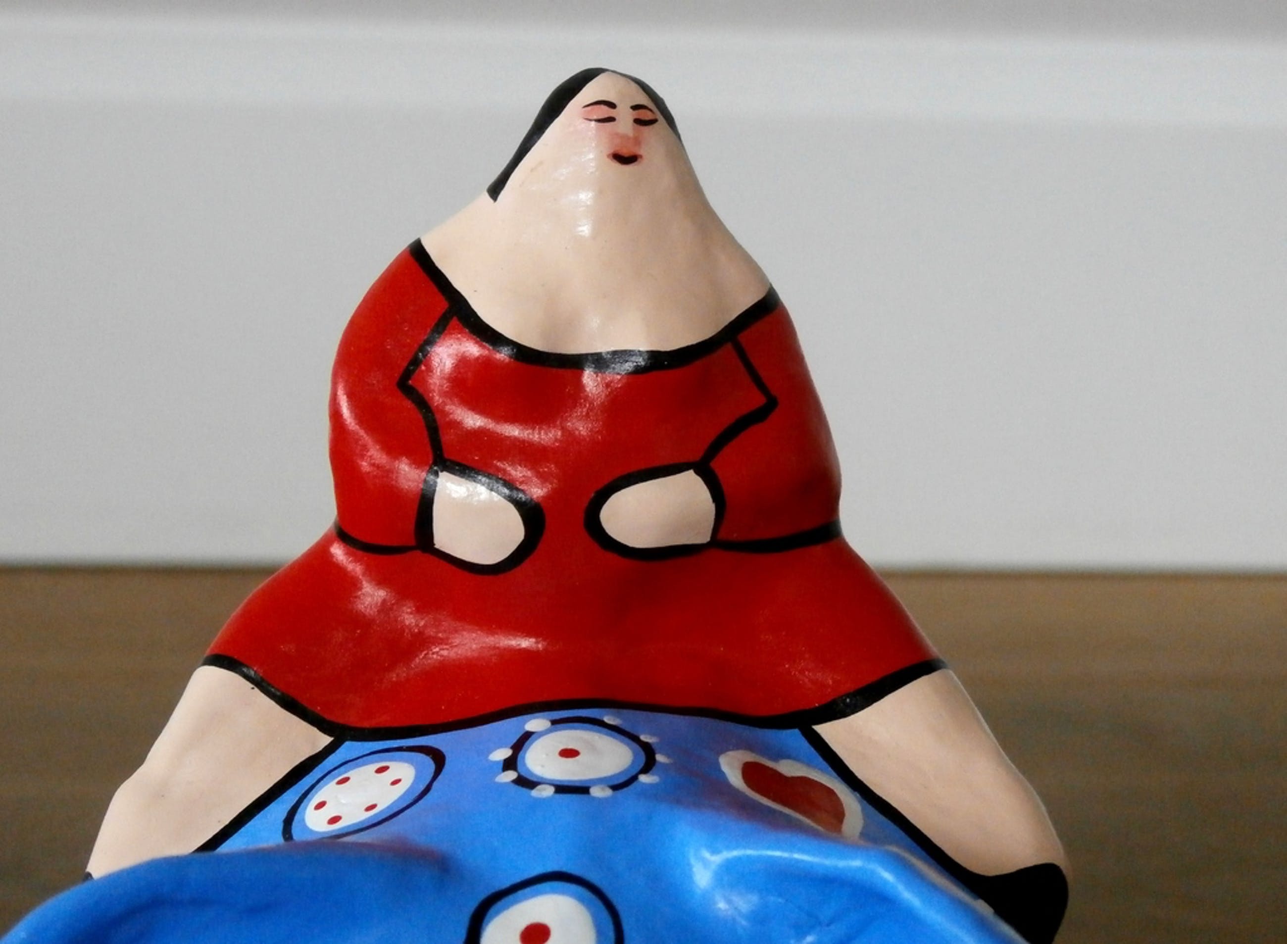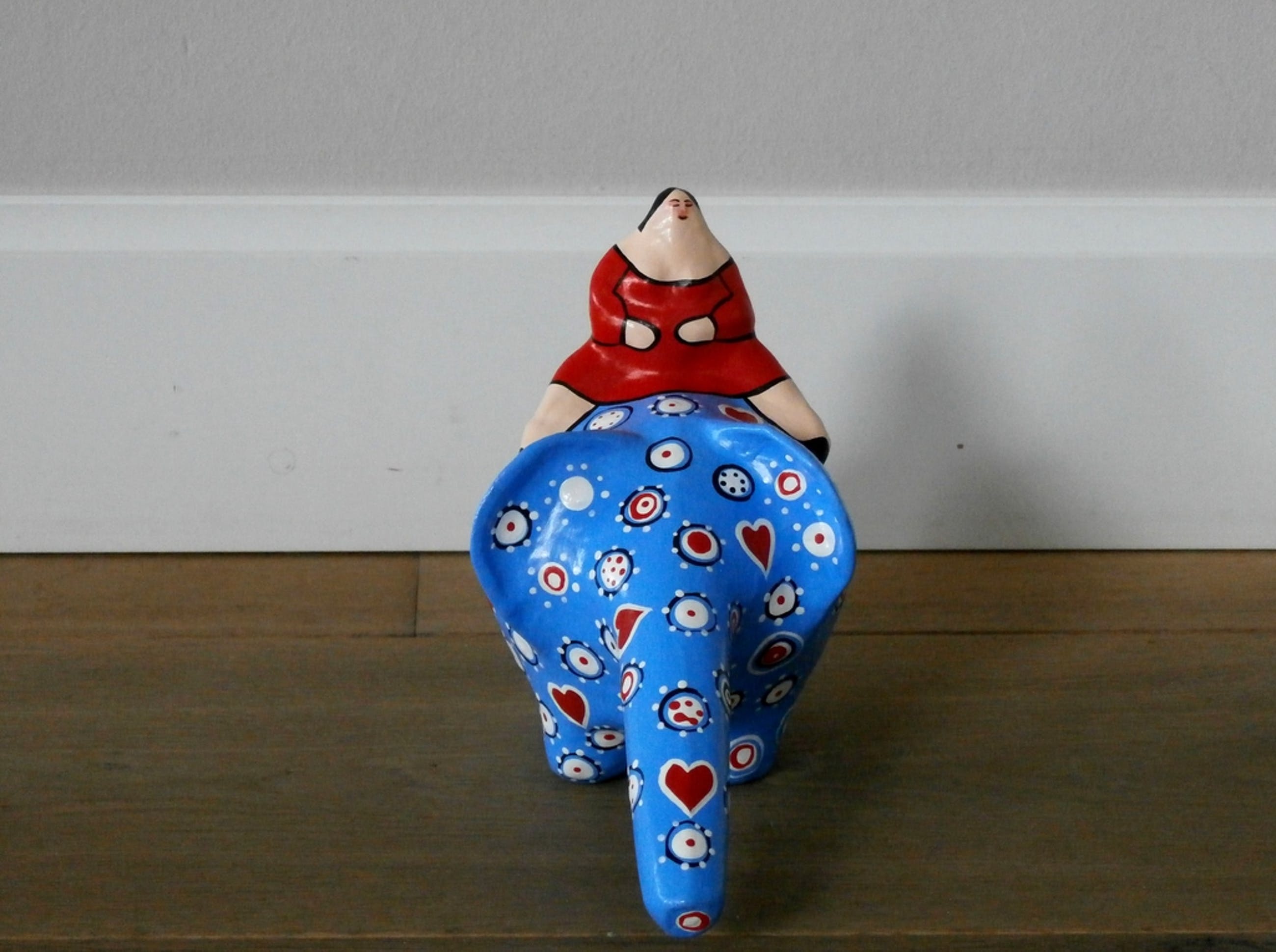 Leuk beeld van Ada Breedveld met de titel: Blauwe olifant, harten. Jaar: 2008. Het beeld is h17 x b10 x l22 cm. Op de onderzijde gesigneerd.