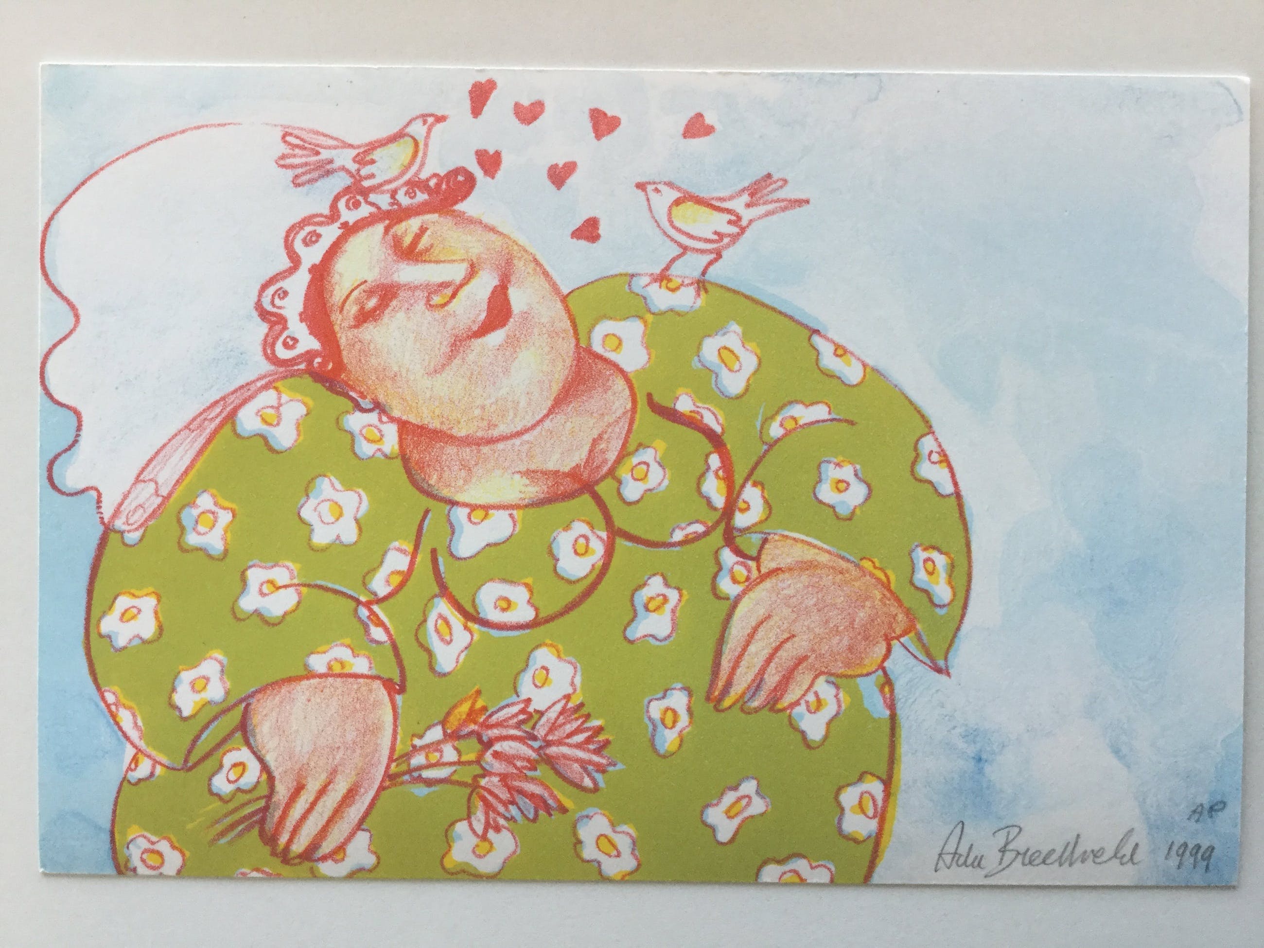 Deze kleine serie van 4 werken herkent u gelijk als een interpretatie van de vier seizoenen door Ada Breedveld. Het archetype van de vrouw is wondermooi, bijna sprookjesachtig neergezet. Pastelkleuren geven de werken een zachte en gevoelige uitstraling.
