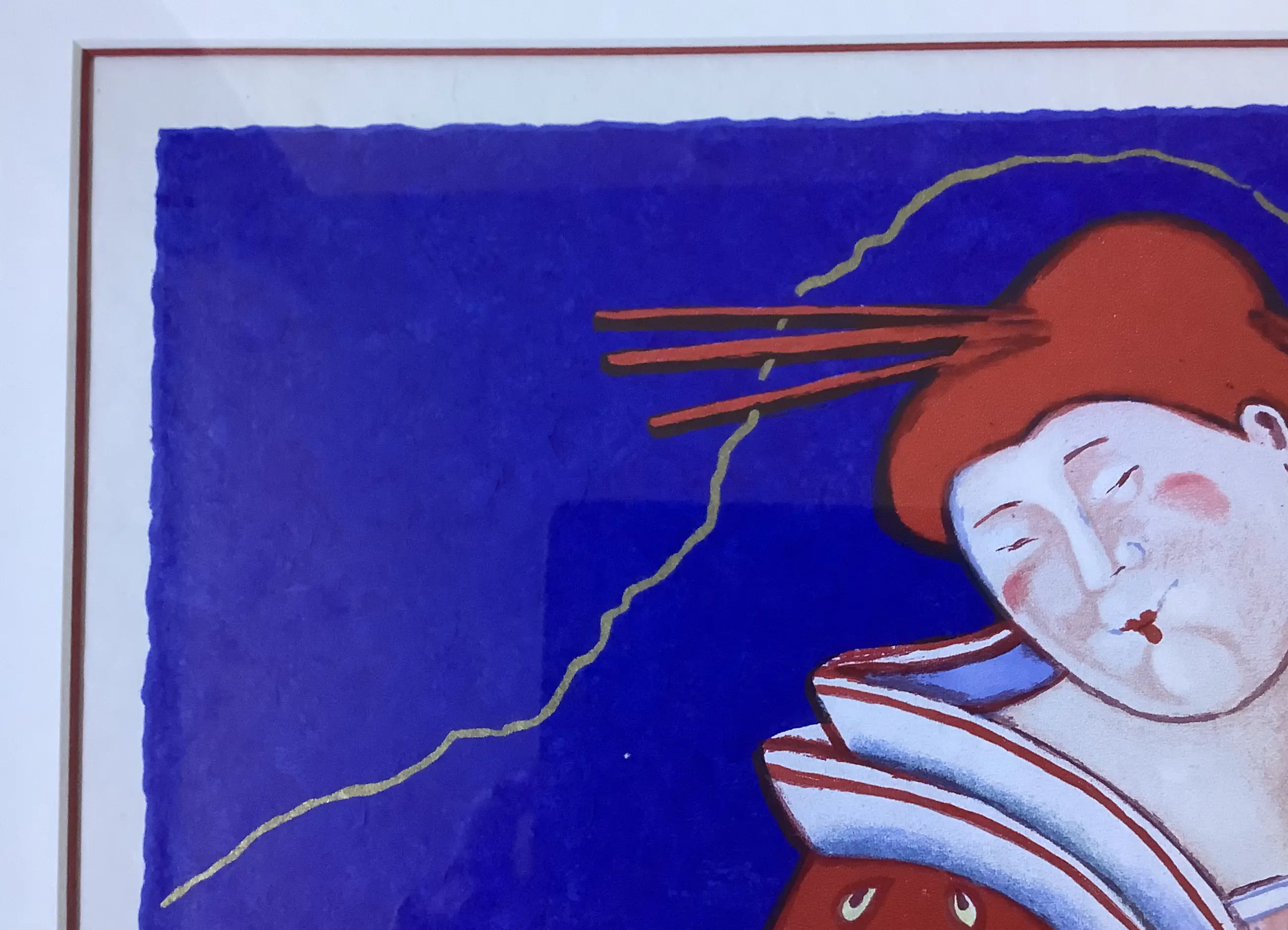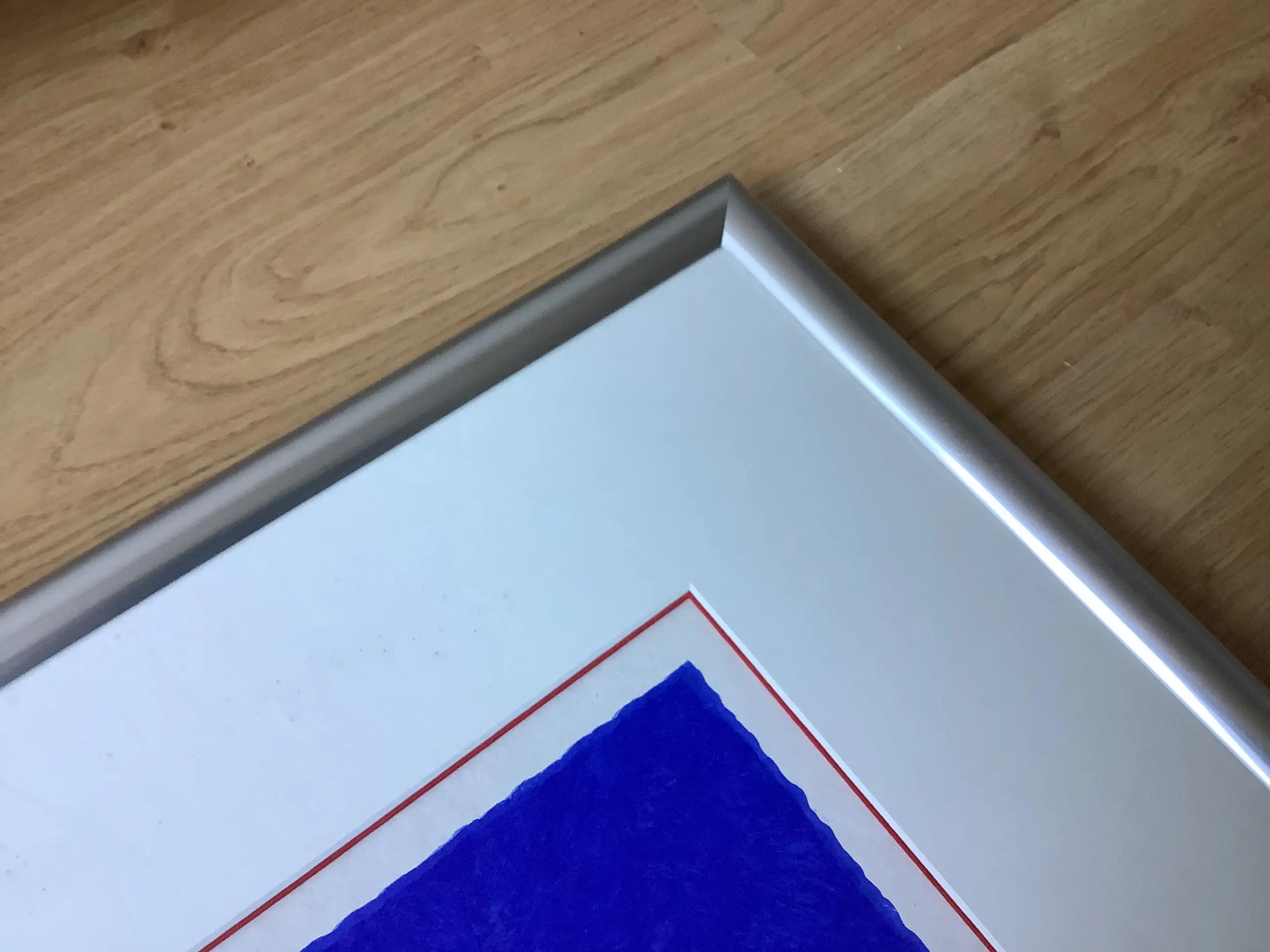 Conditie: In goede staat, aantal kleine vlekjes op passe partout, zie foto’s. In aluminium lijst 2,5 cm breed en 3,0 cm hoog.