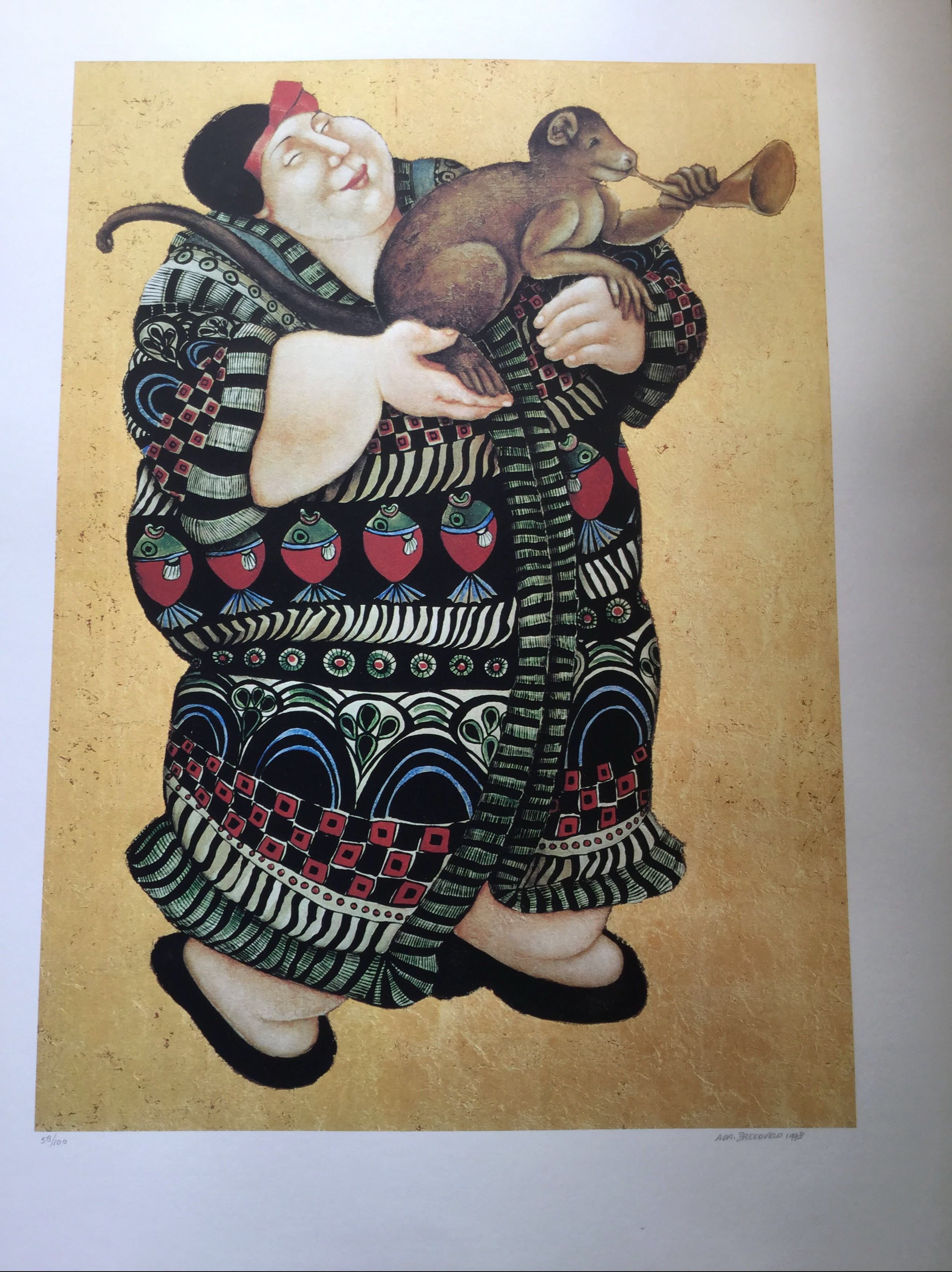 Kenmerkend werk van Ada Breedveld.Volle vrouwen in kimono of naakt, in een vaak vermakelijk decor of pose. Werk is nooit ingelijst geweest. Aangeboden werk is genummerd 57/100.