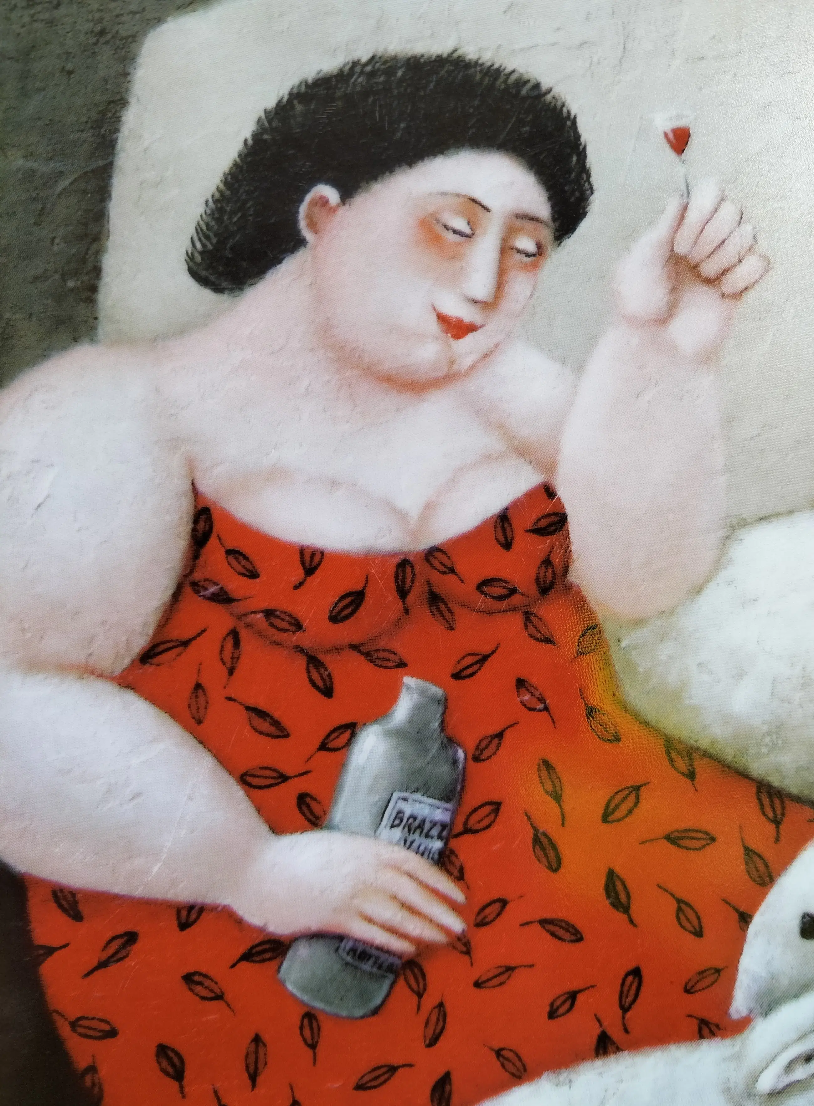 Ada Breedveld is bekend om haar volumineuze, immer tevreden glimlachende vrouwen., waarvan dit fraaie bord een goed voorbeeld is.