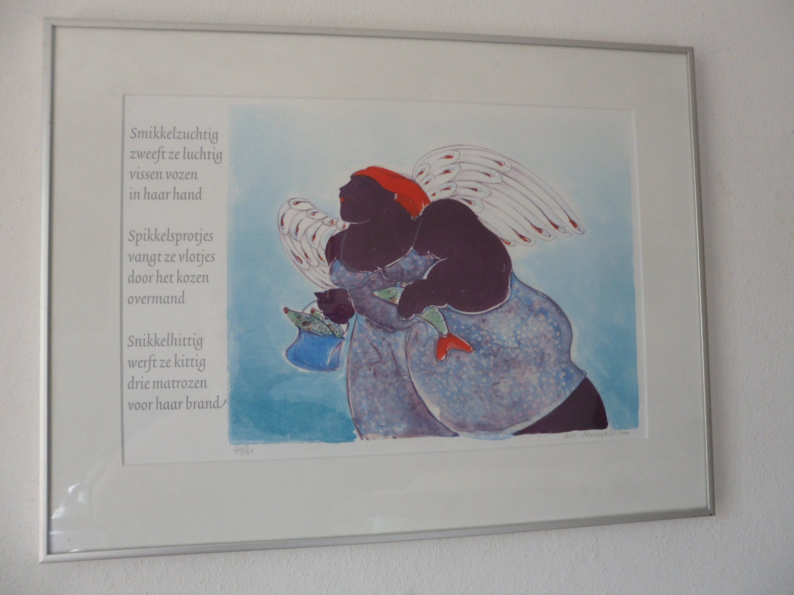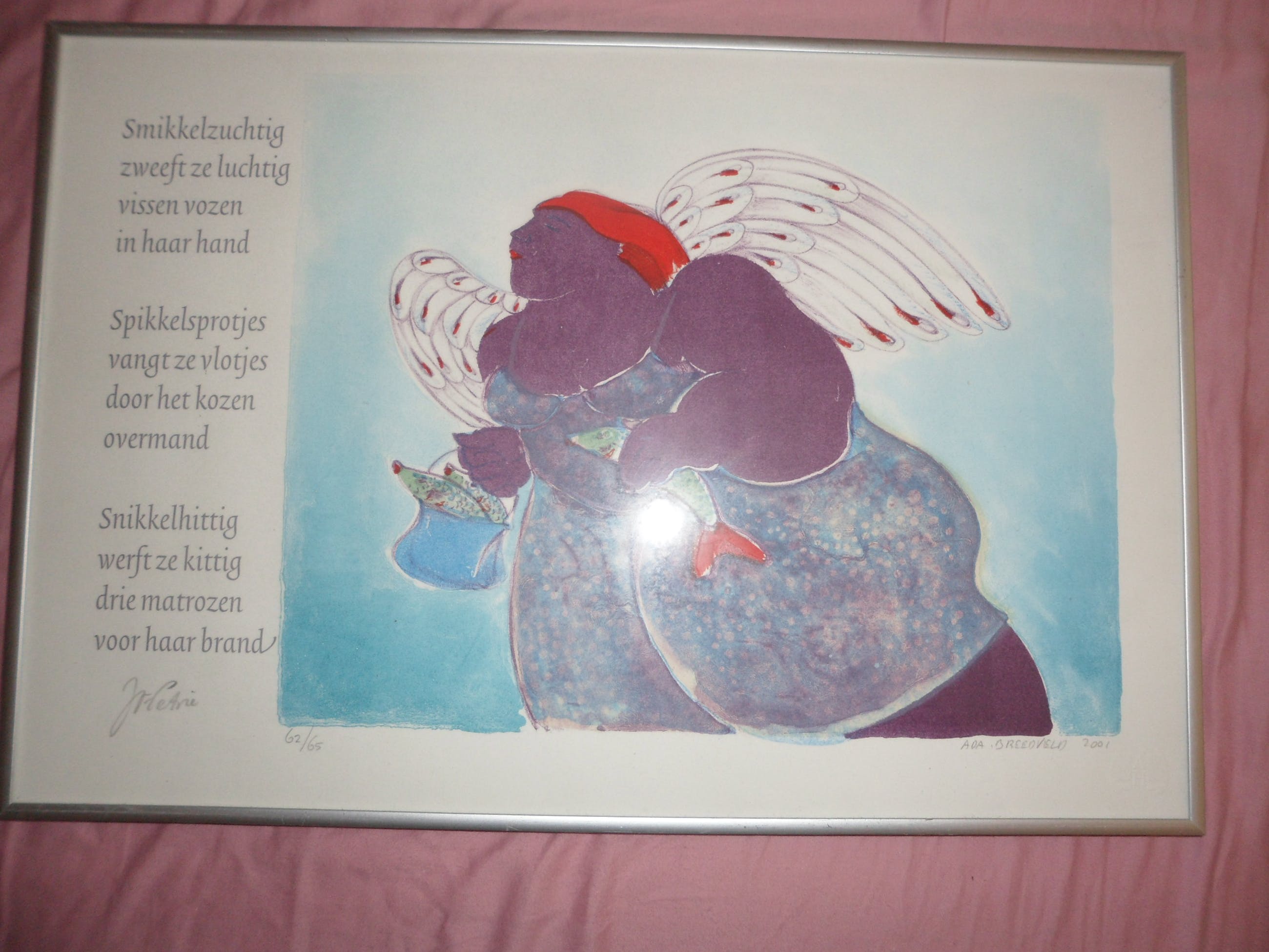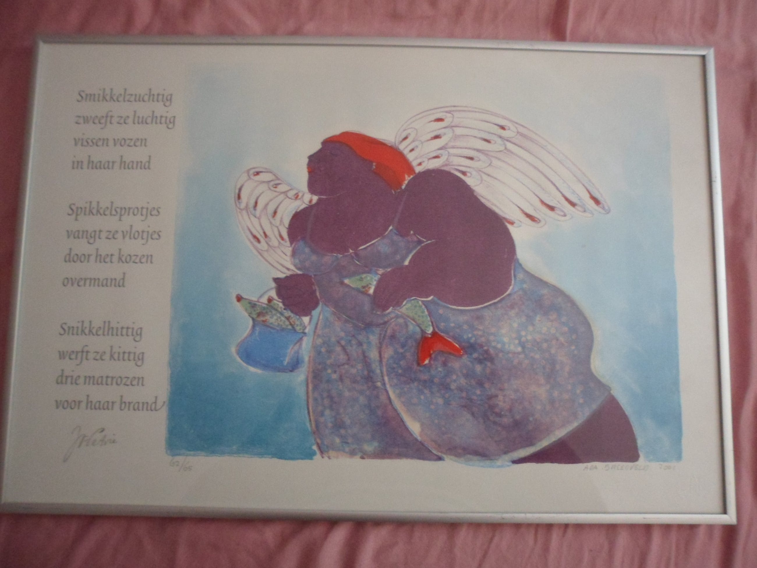 Litho van Ada Breedveld, Engel met gedicht.