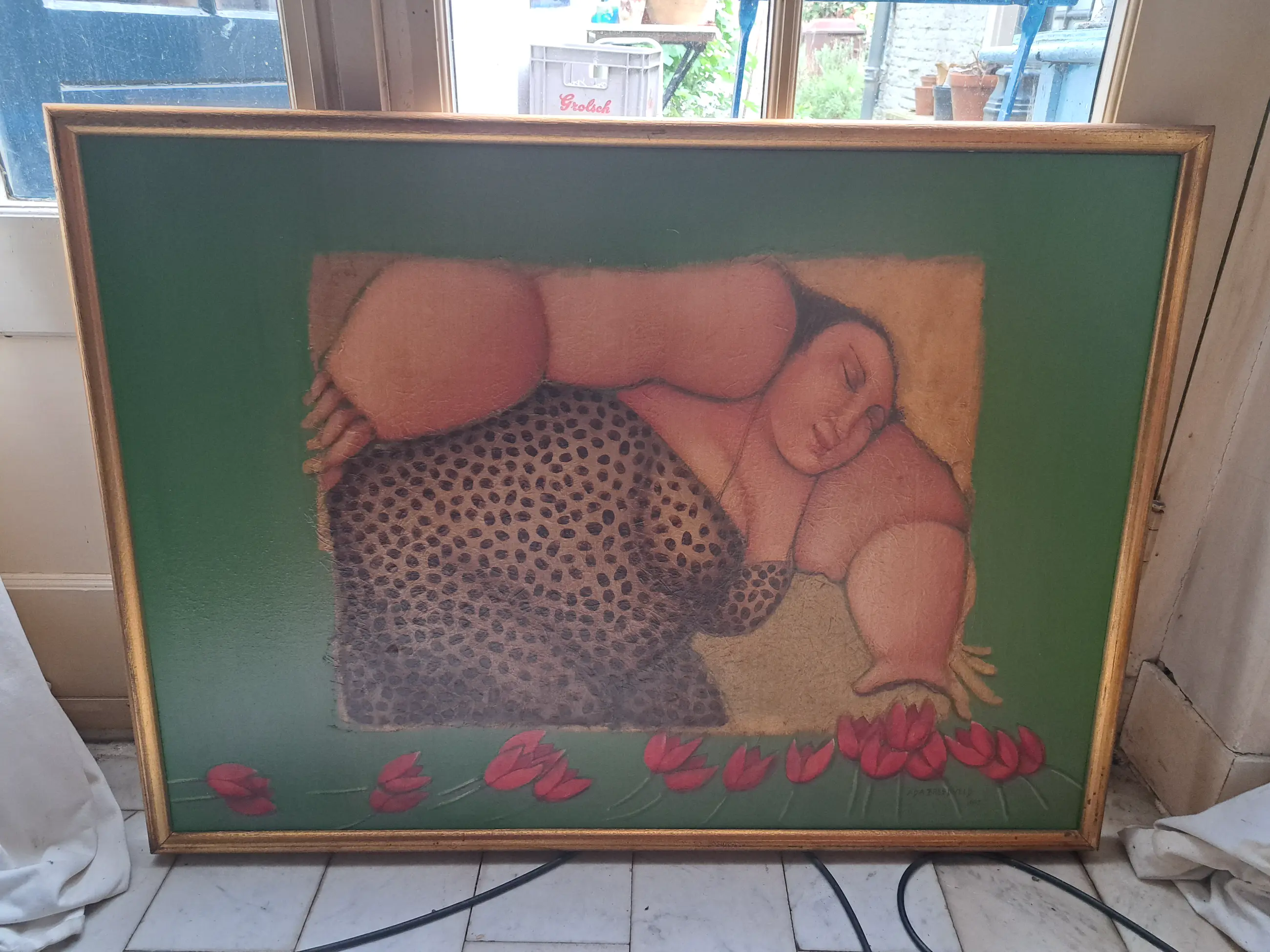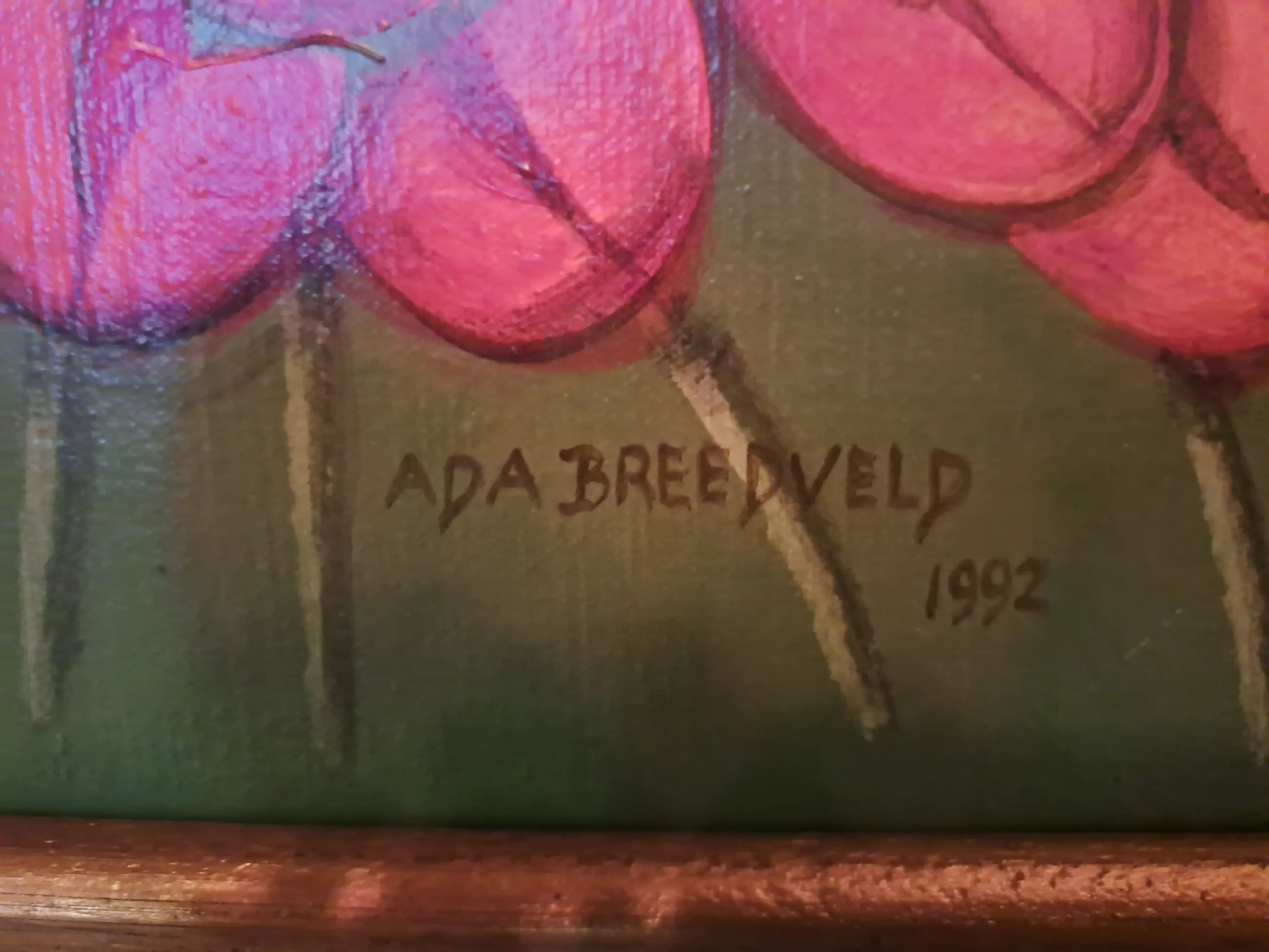Mijn ouders gingen met veel plezier naar de exposities van Ada en hebben verschillende werken van haar in de loop der jaren aangeschaft, waar onder deze mooie vrouw met rode tulpen!