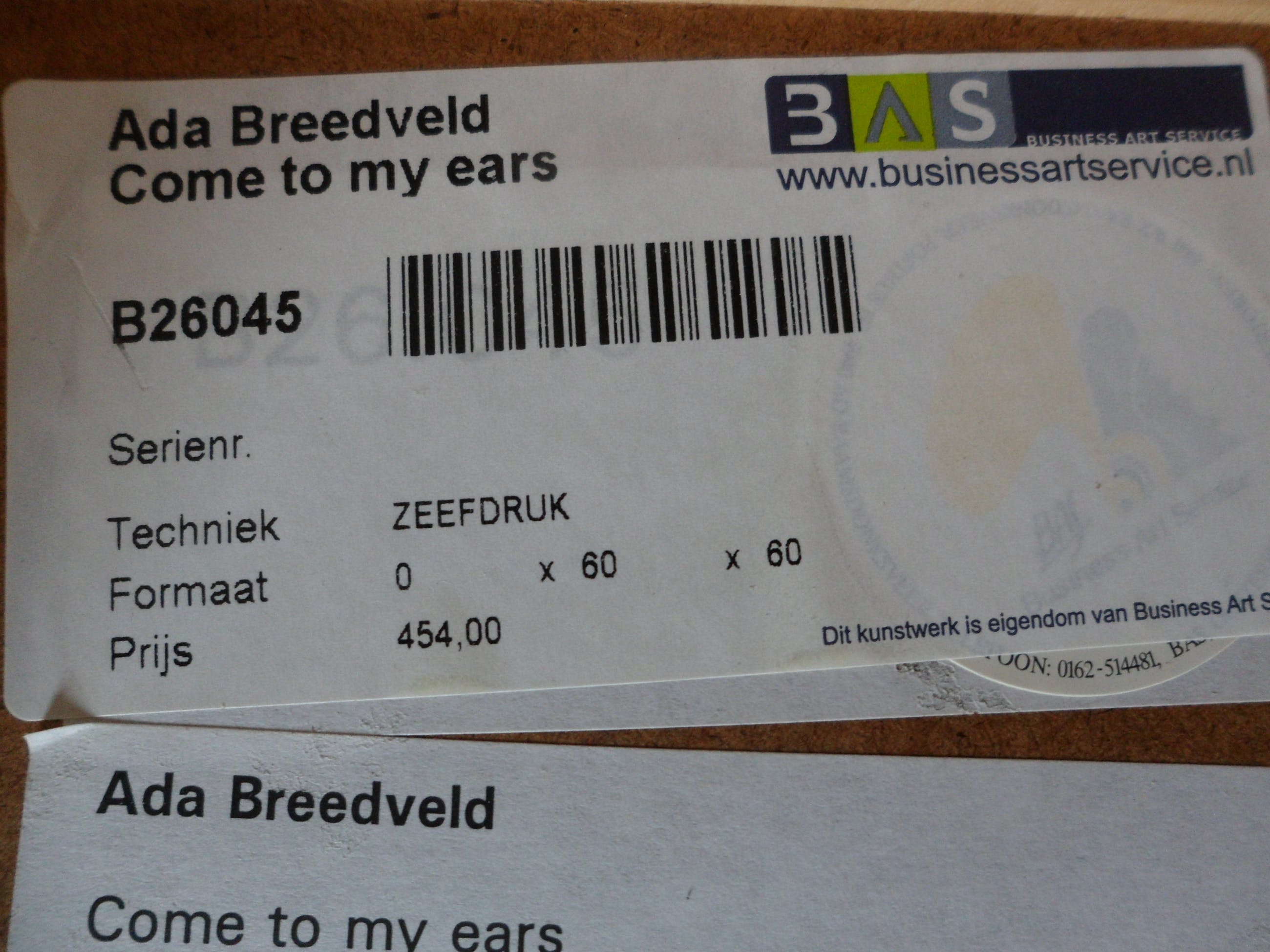 | Afhalen | Het werk is af te halen op locatie. Als koper dient u zelf verpakkingsmateriaal mee te nemen. De locatie is: Alkmaar, Nederland | ||