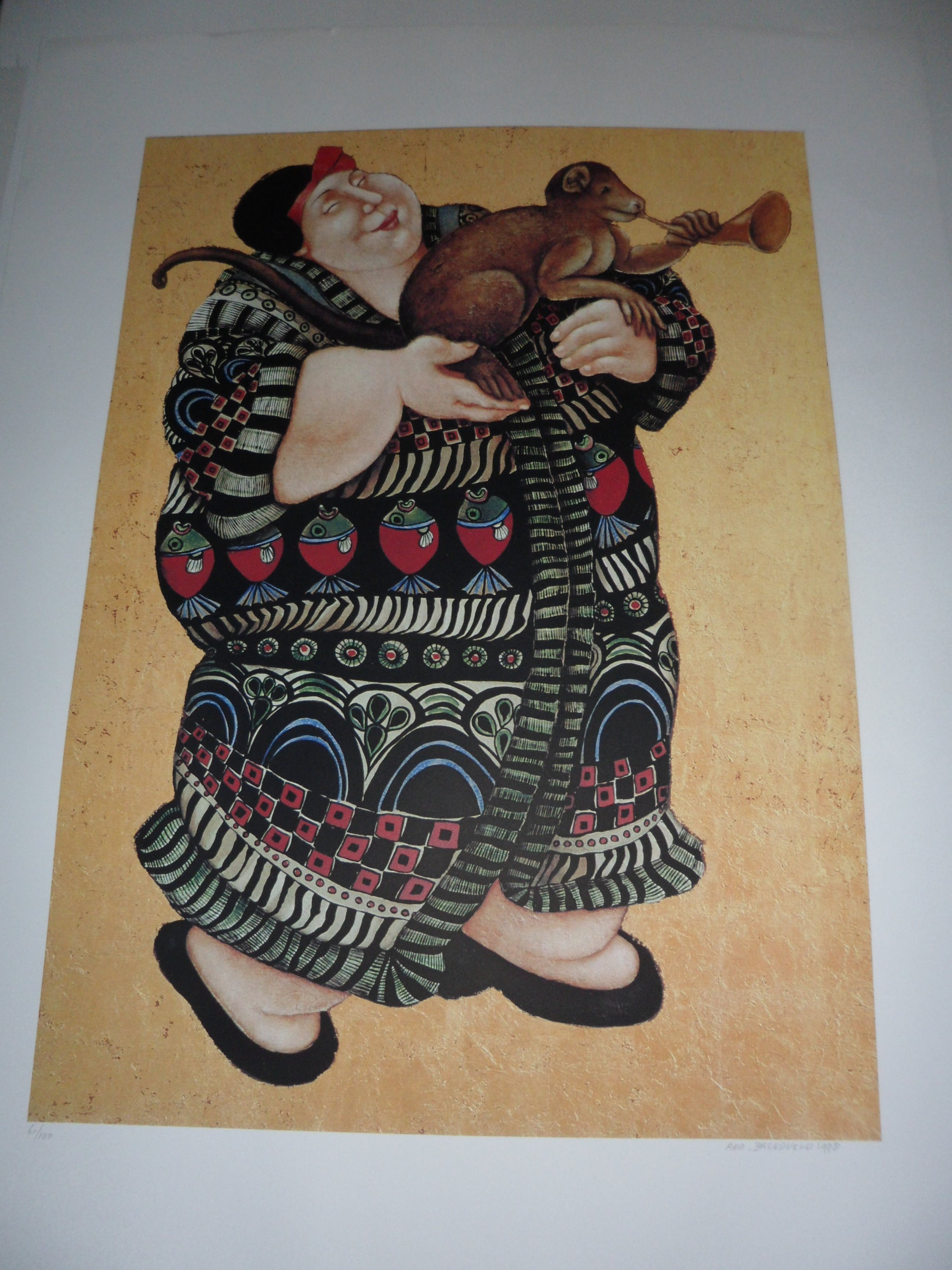 Ada Breedveld - Zeefdruk. z.t. (Dame in kimono met aap) - Verkocht