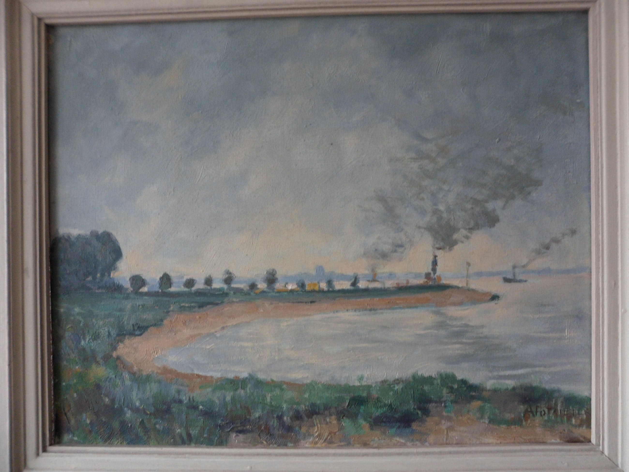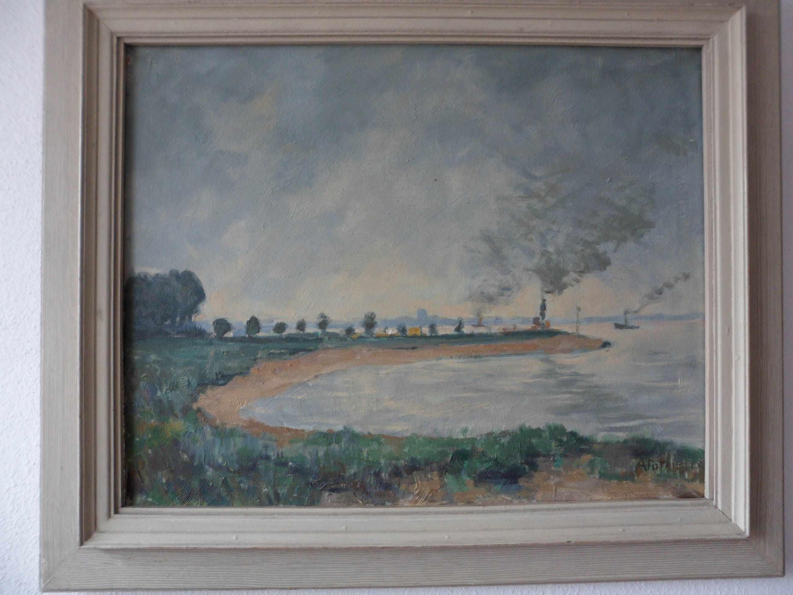 Schilderij is B. 50 x H.40 cm, in de lijst is de afmeting B. 63 x H. 52,5 cm.