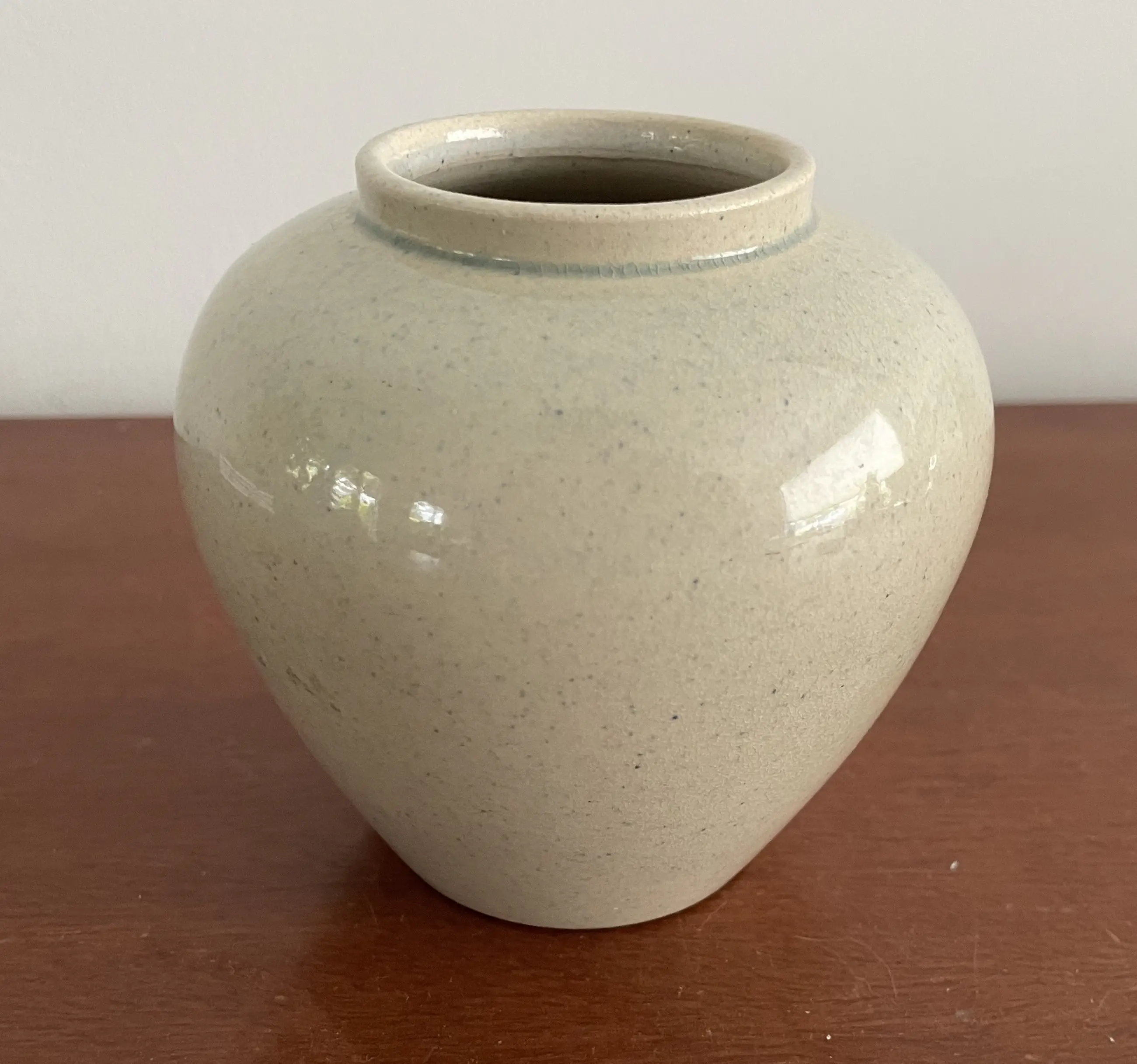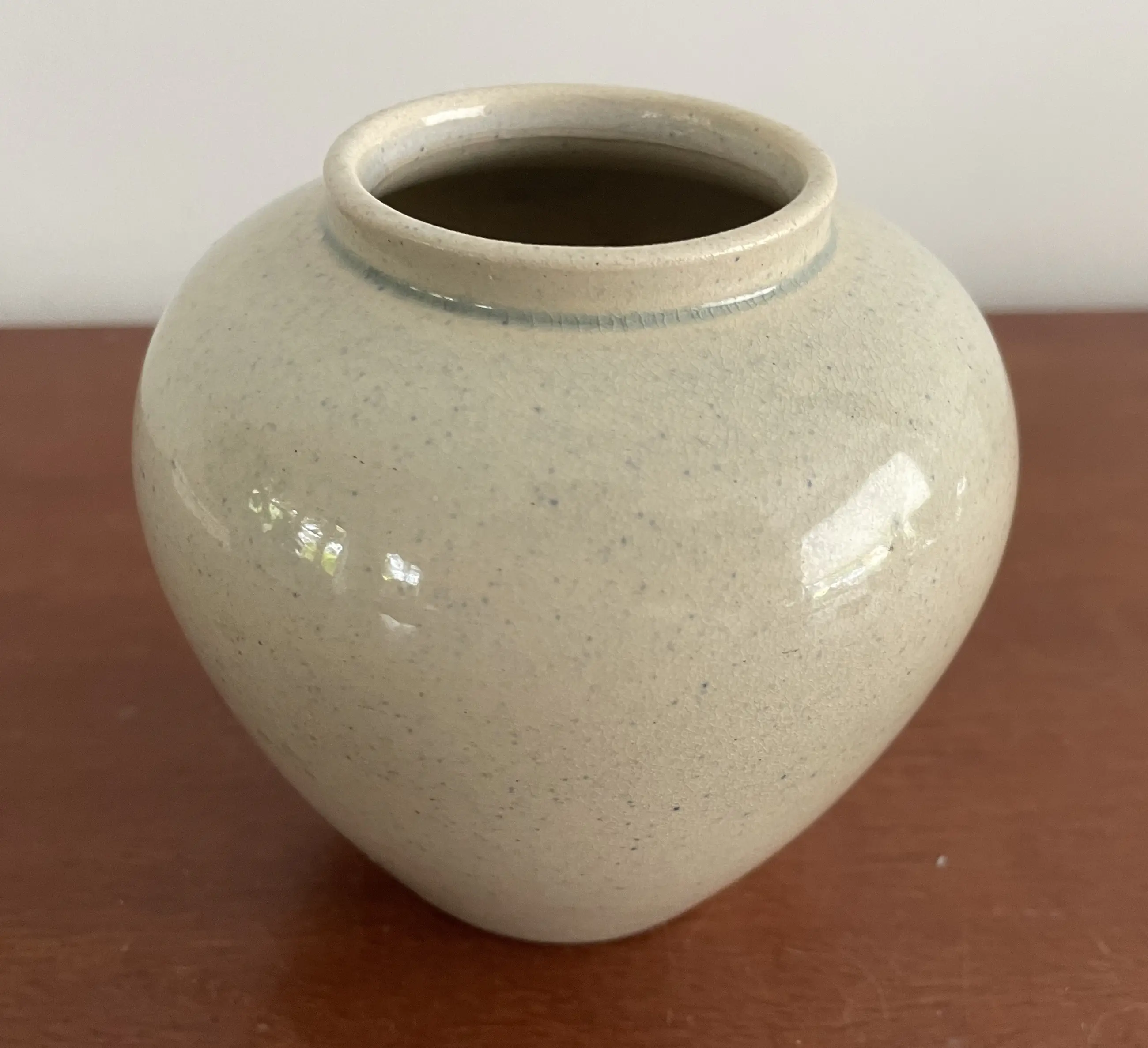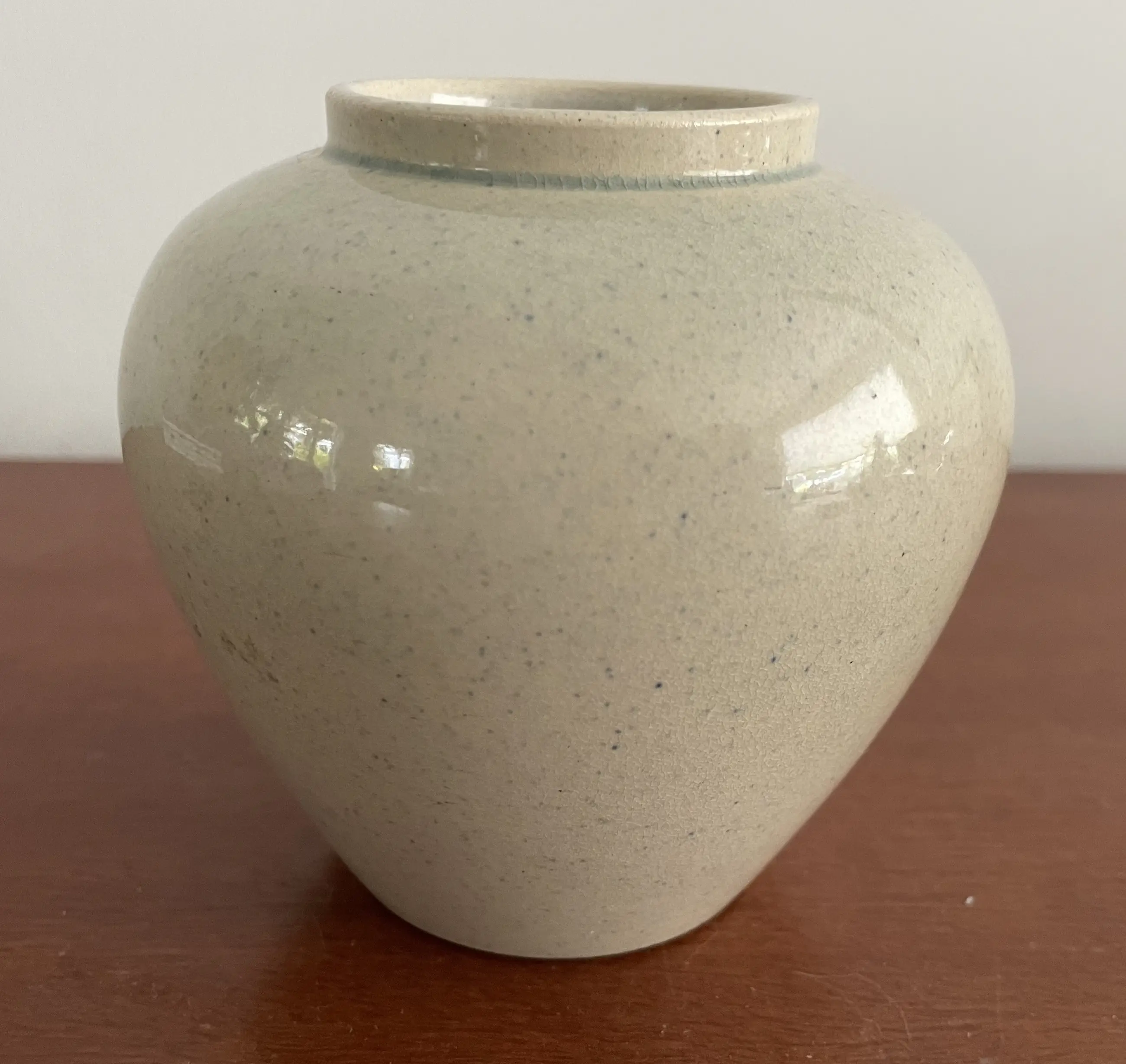 ADCO Groninger Steenfabriek - Art Deco vaasje model 1025. Uitgevoerd zandkleuring/grijs spikkelglazuur. In perfecte conditie. Gemerkt aan de onderkant.