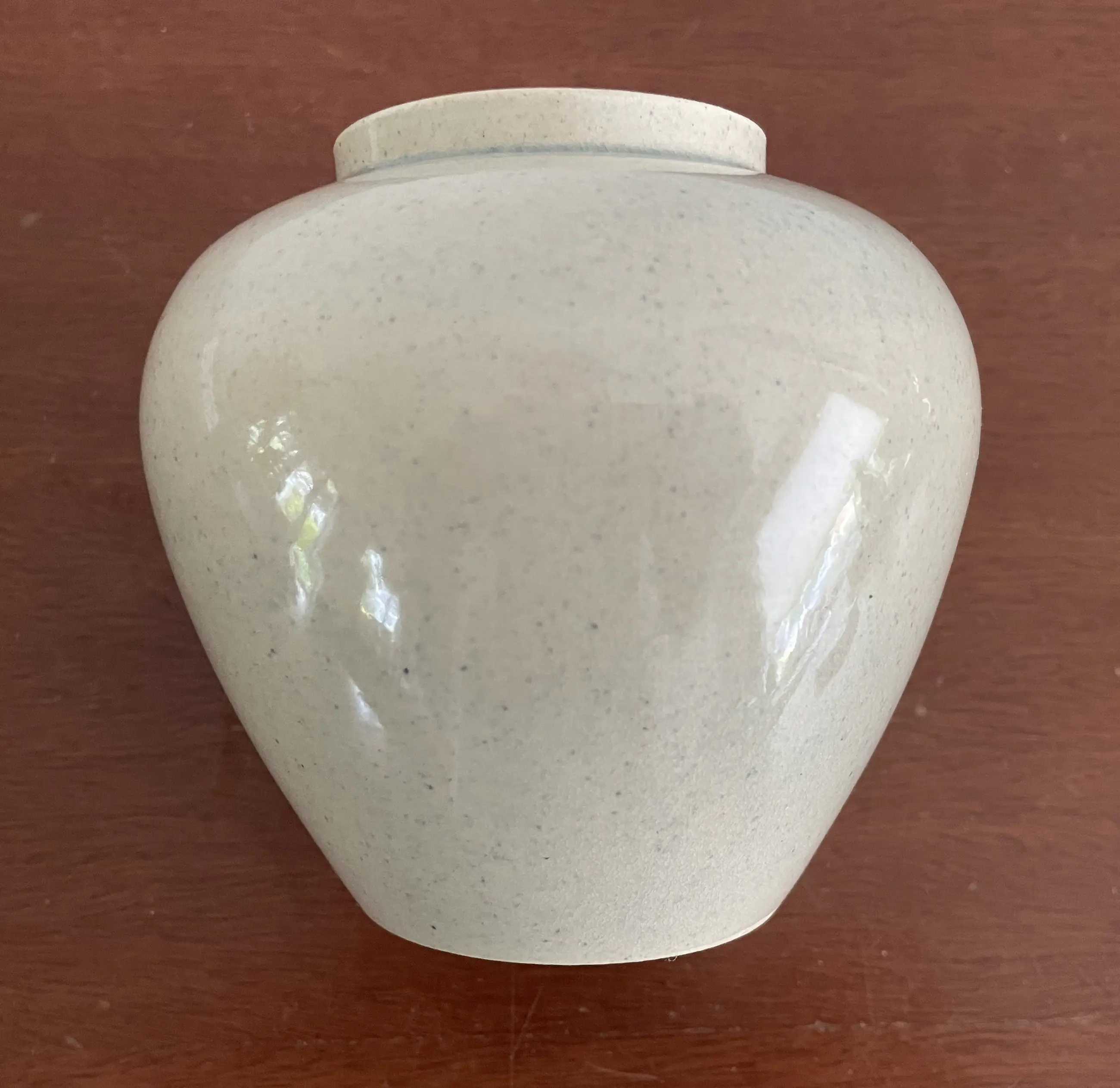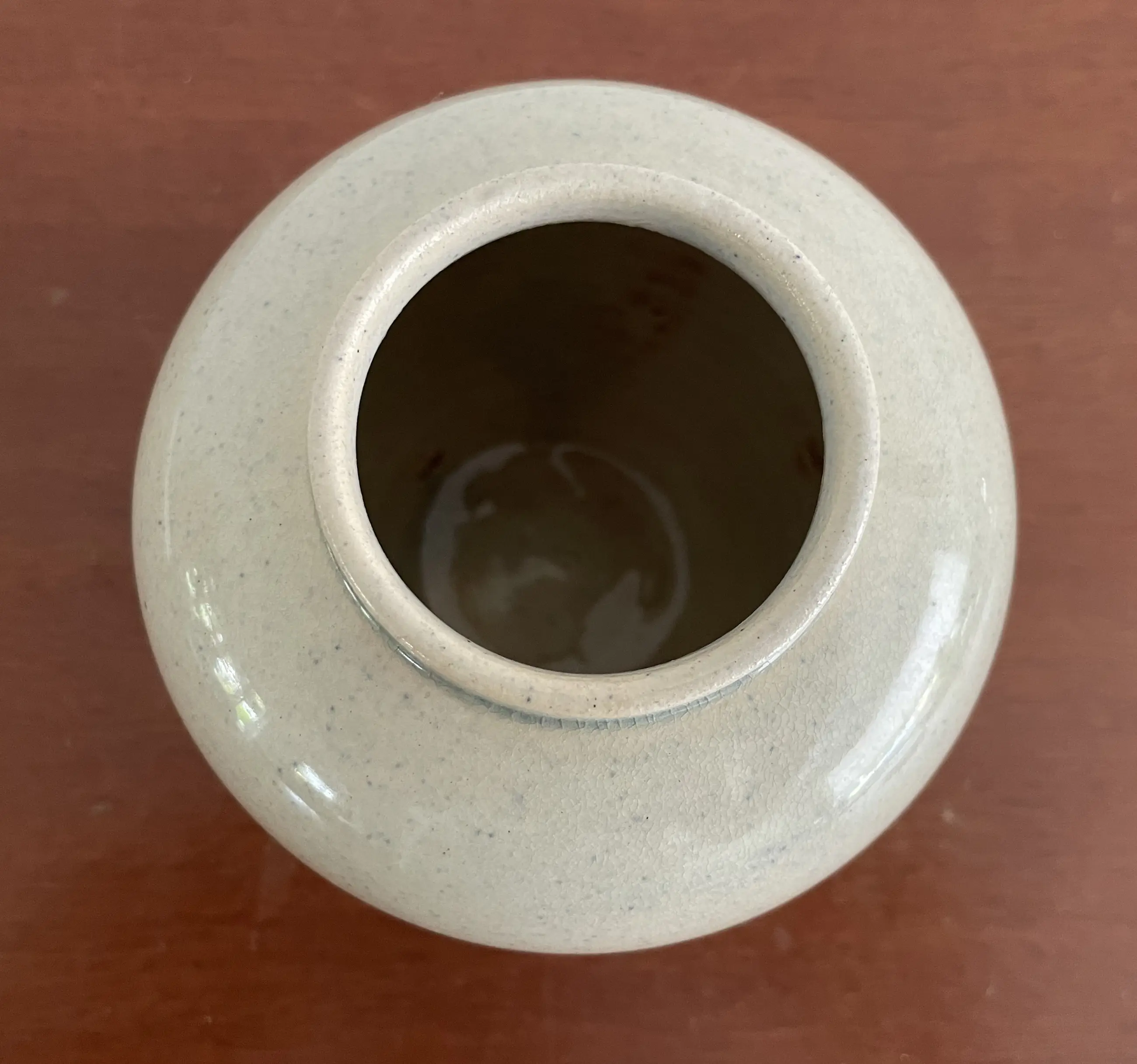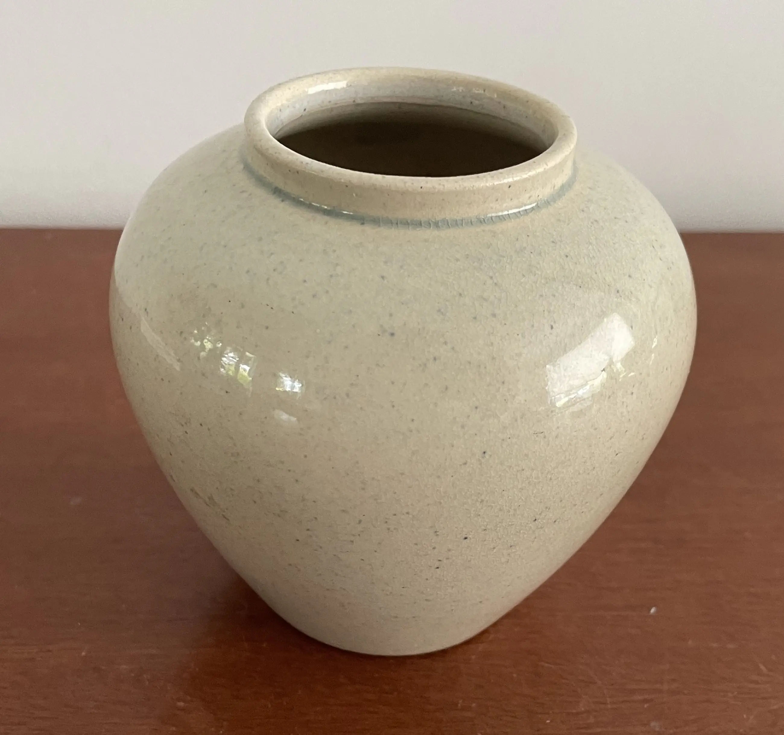 ADCO Groninger Steenfabriek - Art Deco vaasje model 1025. Uitgevoerd zandkleuring/grijs spikkelglazuur. In perfecte conditie. Gemerkt aan de onderkant.