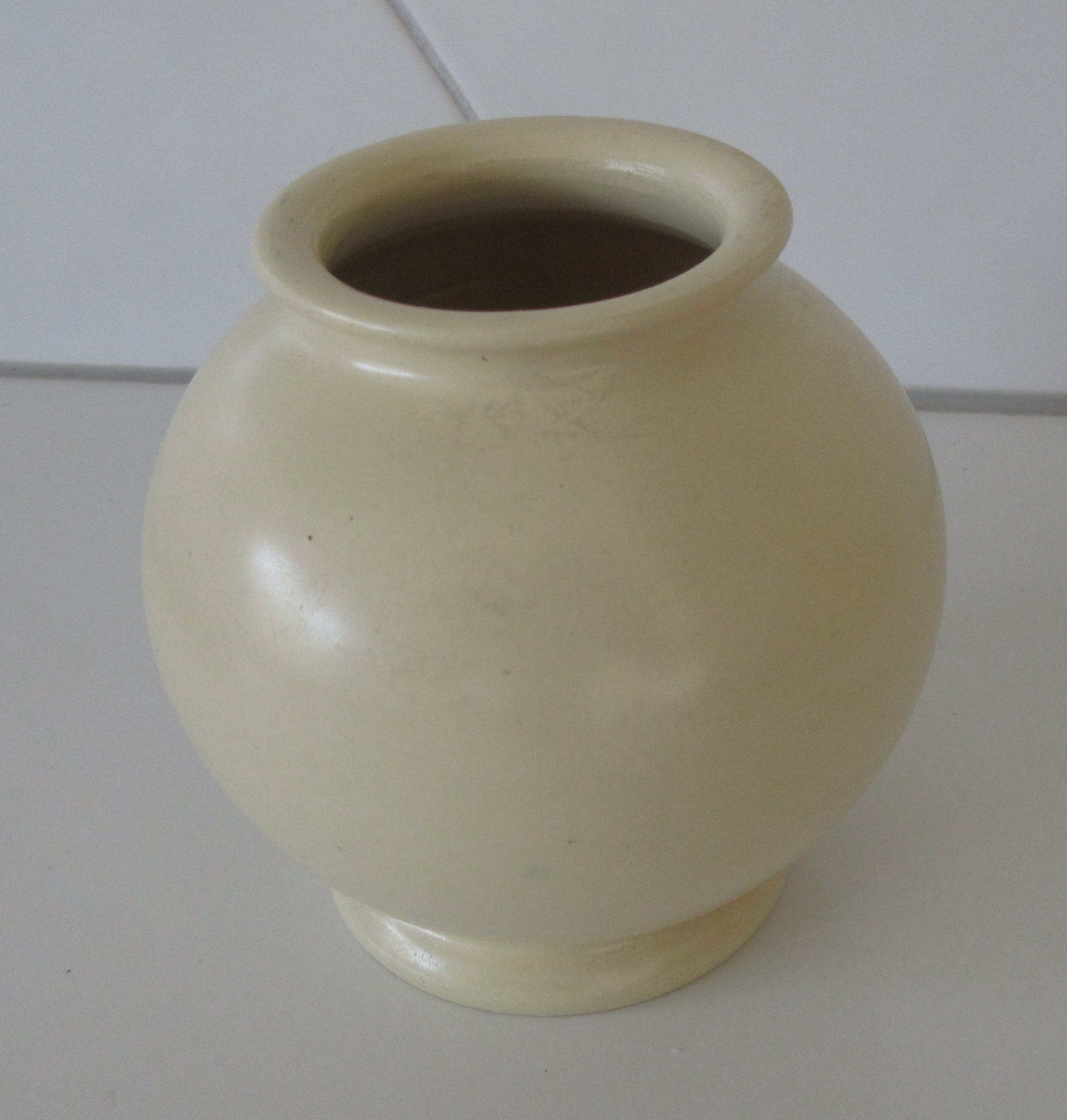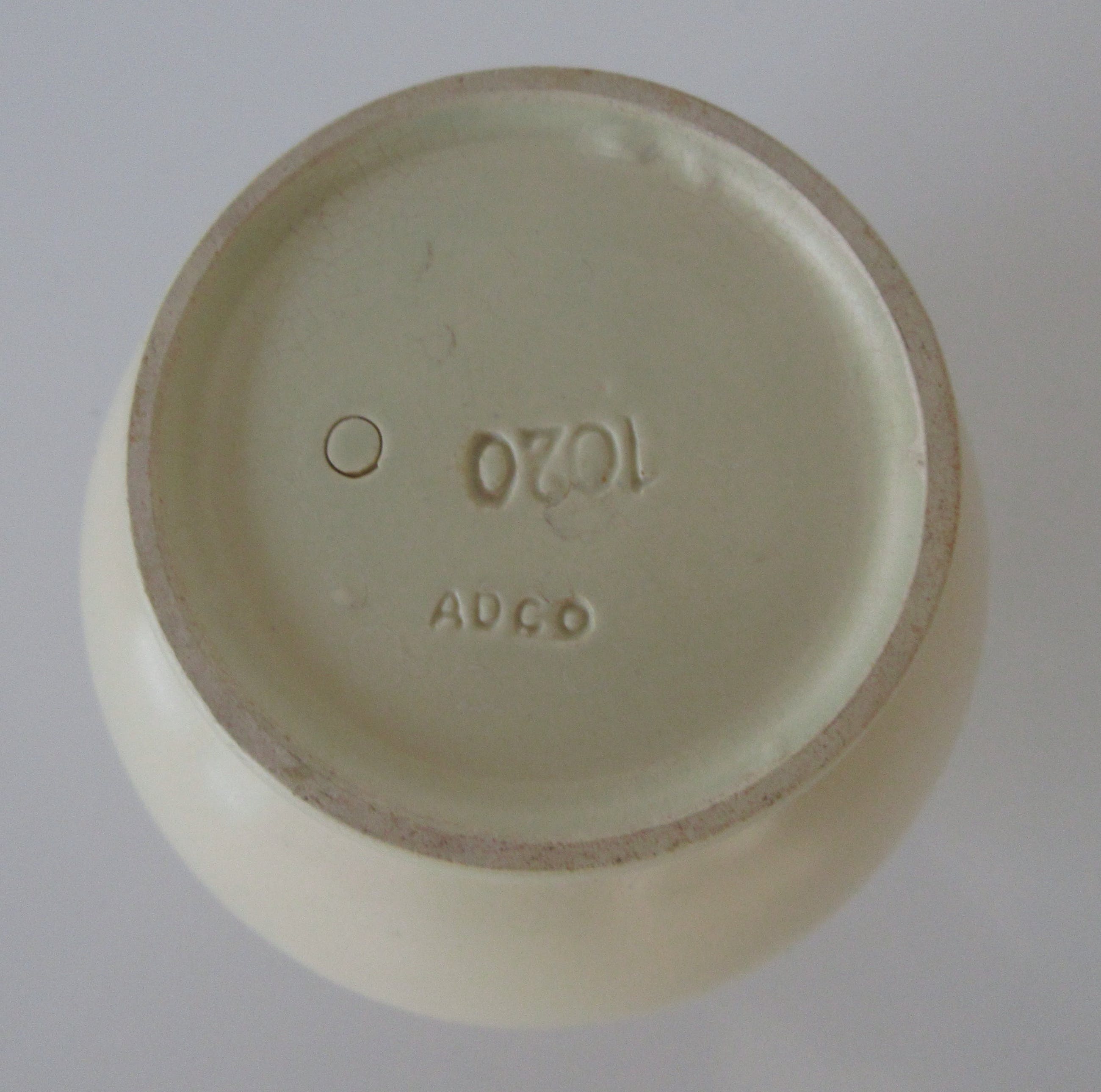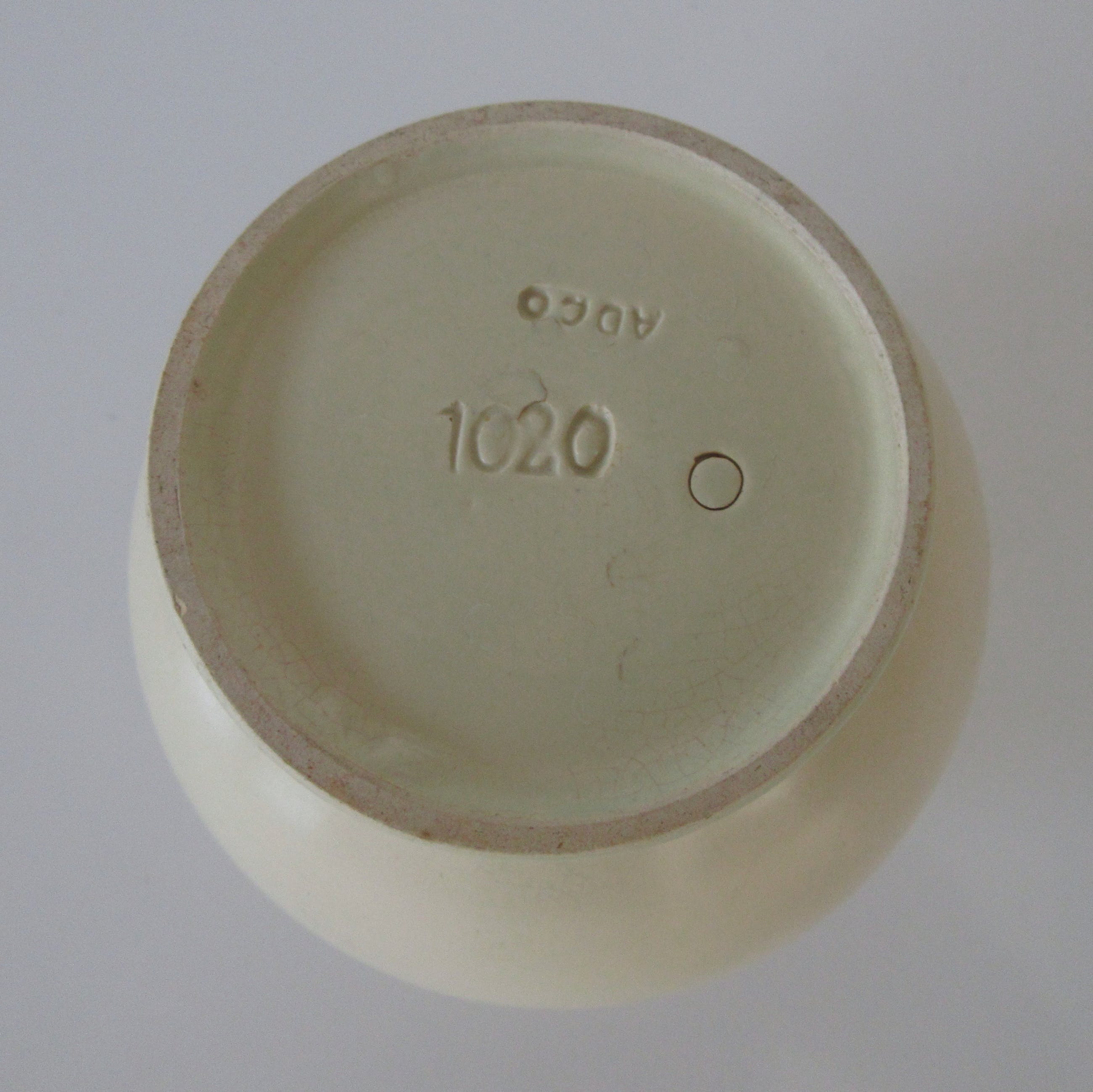 Mooi klein creme wit ADCO bolvaasje model 1020. Aan de onderzijde gemerkt en genummerd, in prima conditie.