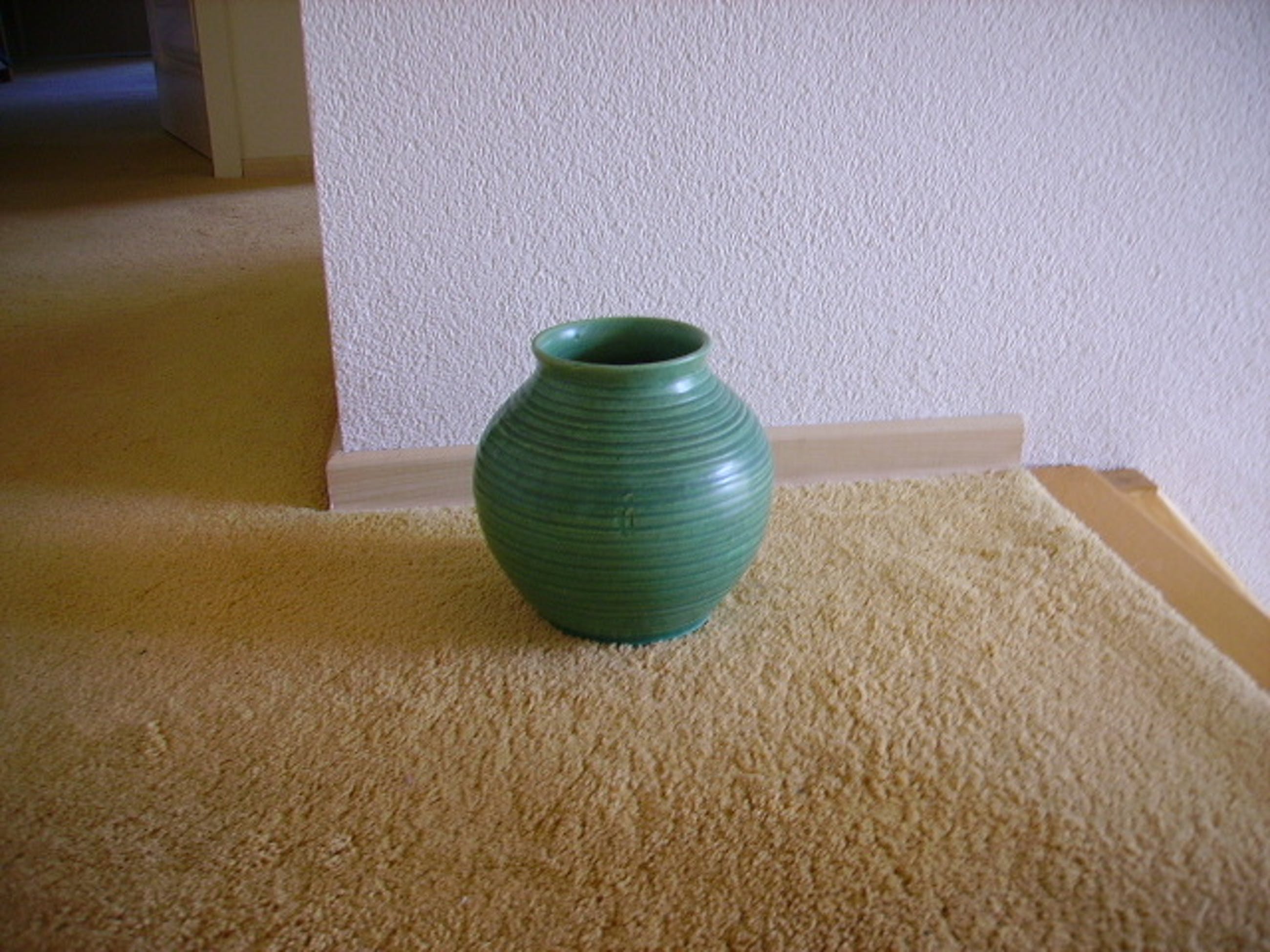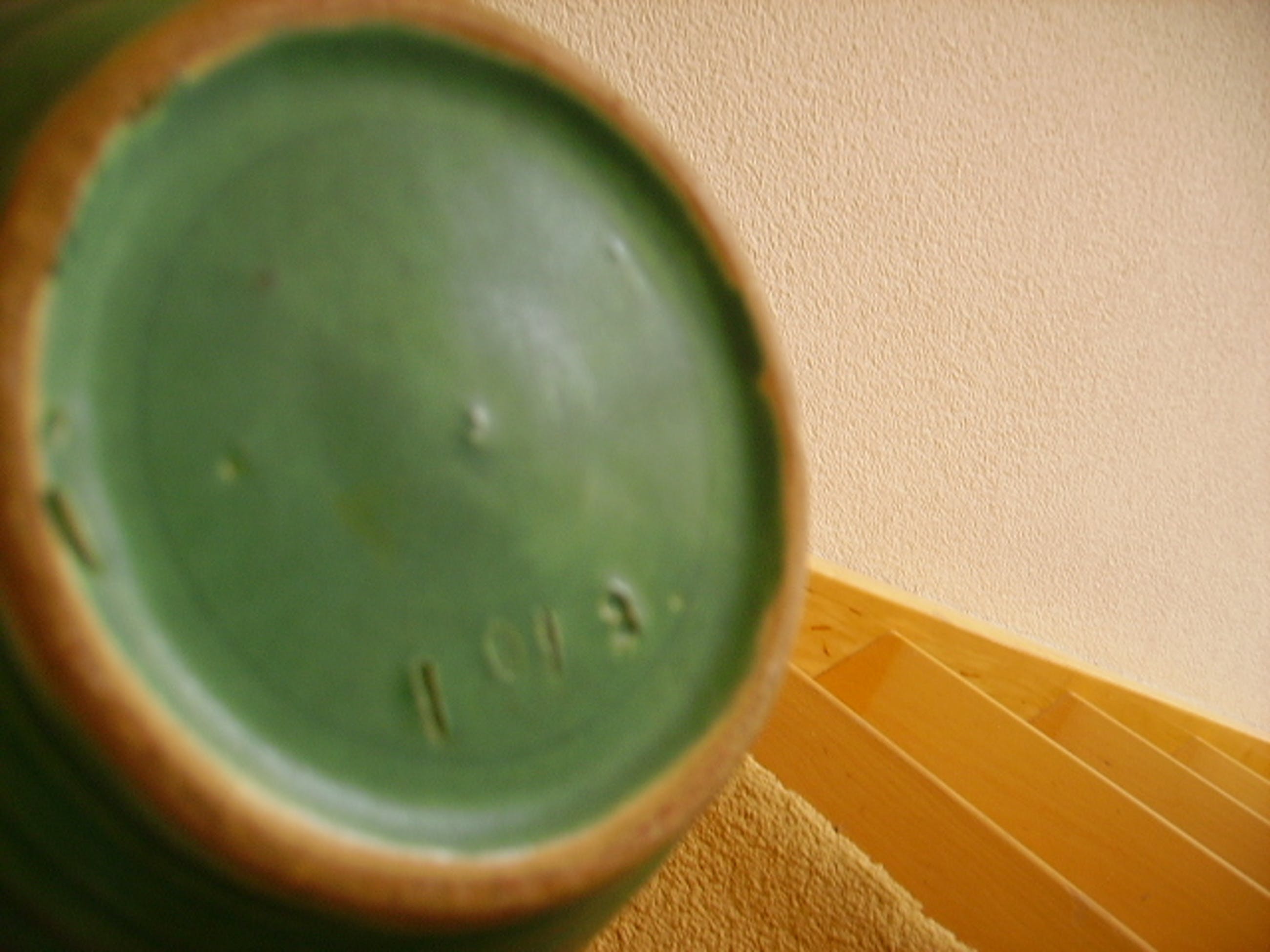 Groninger steenfabriek/ADCO vaas, jaren 20, Hoogte 16 cm, Diameter midden 16 cm, Gemerkt 1020 en een fragment van van het stempel van de Groninger steenfabriek. Gaaf .