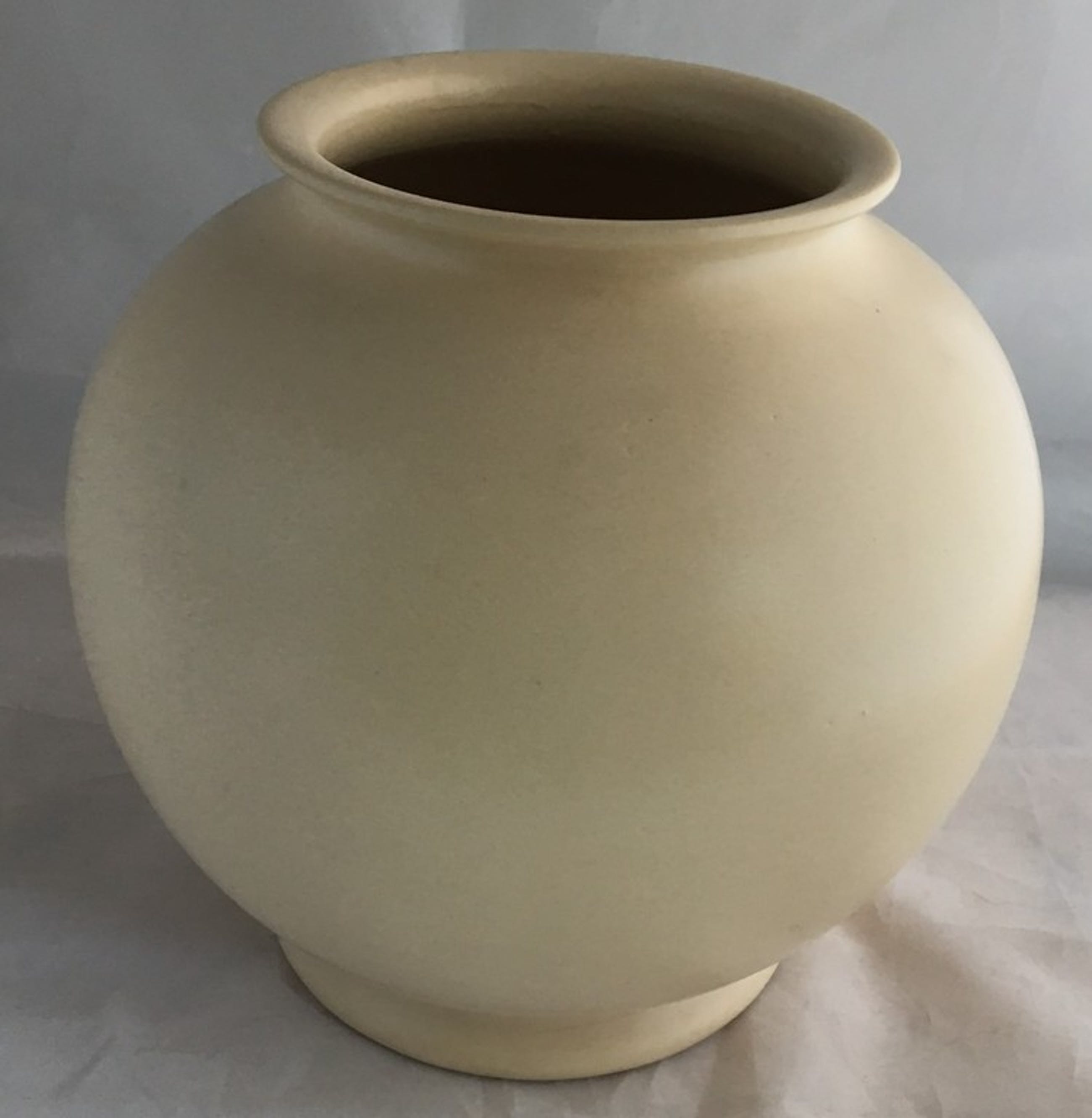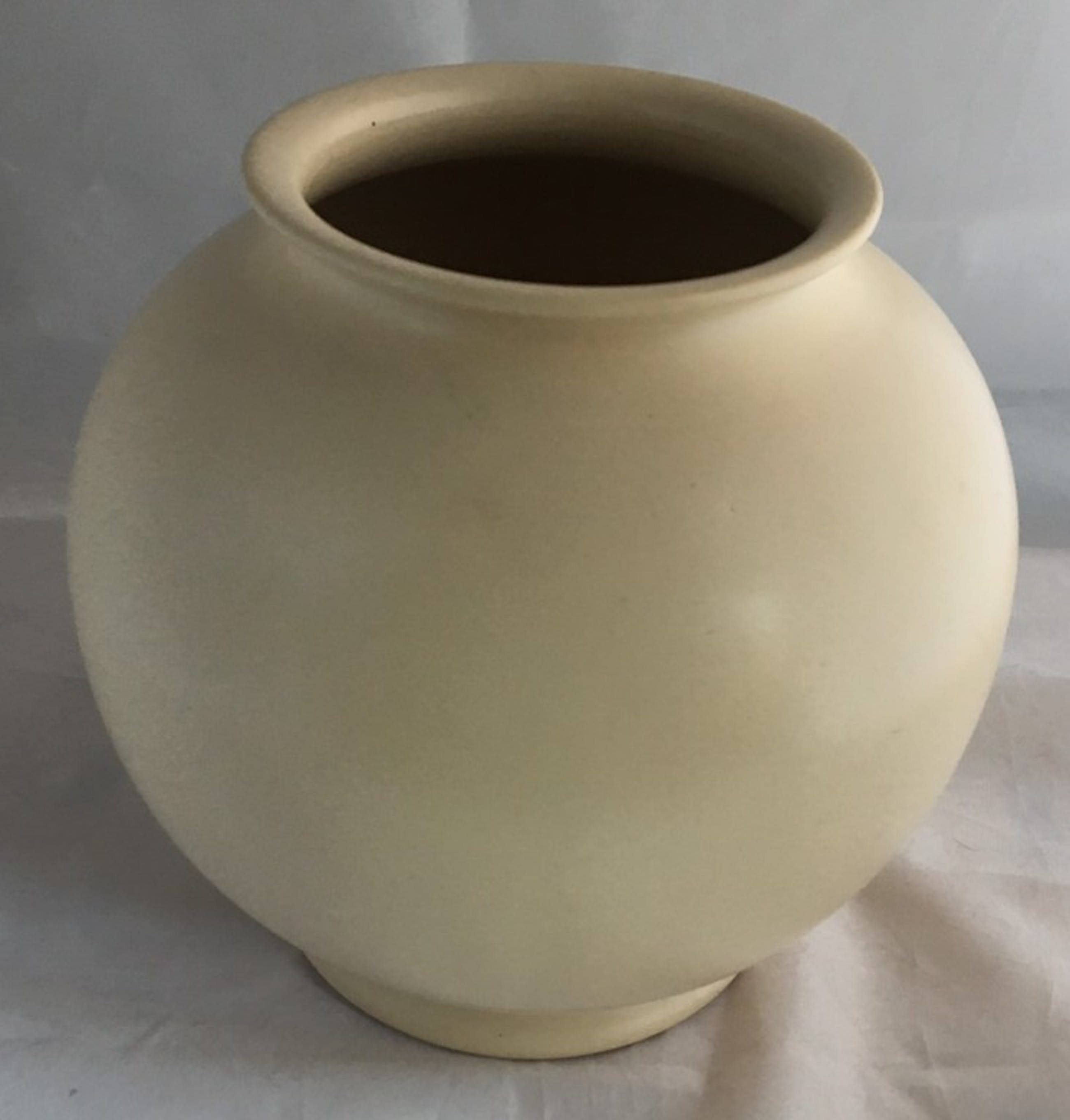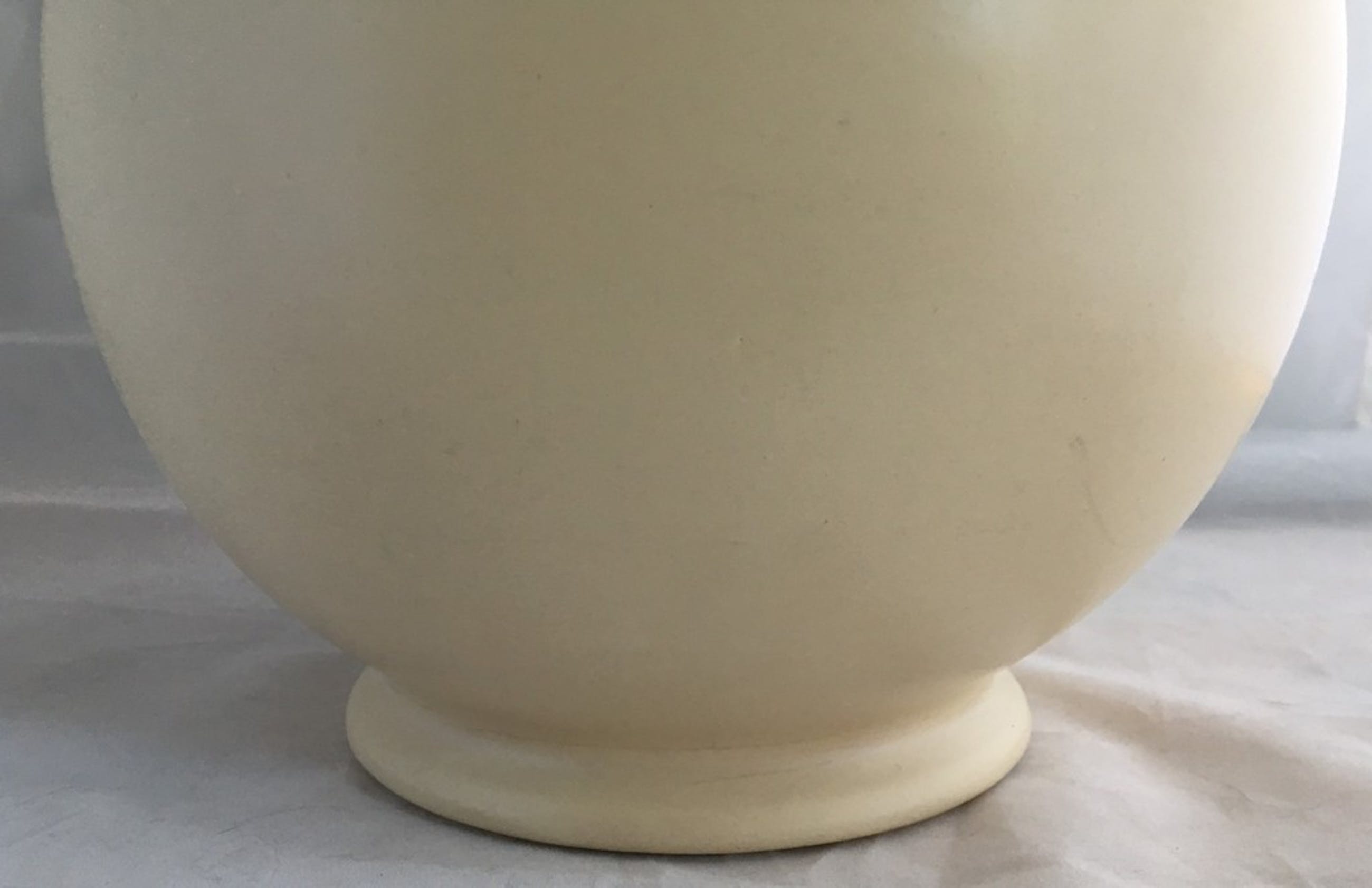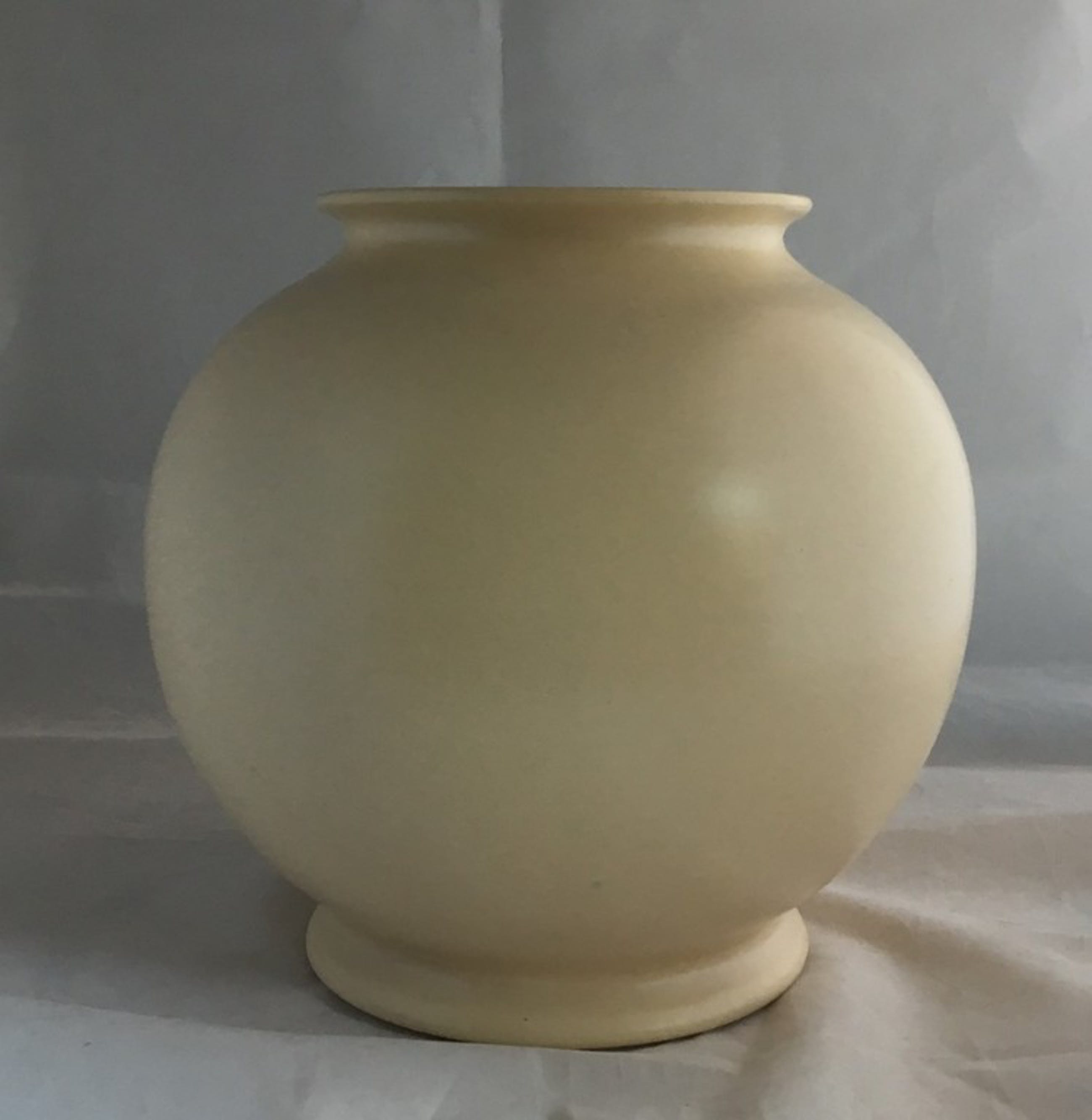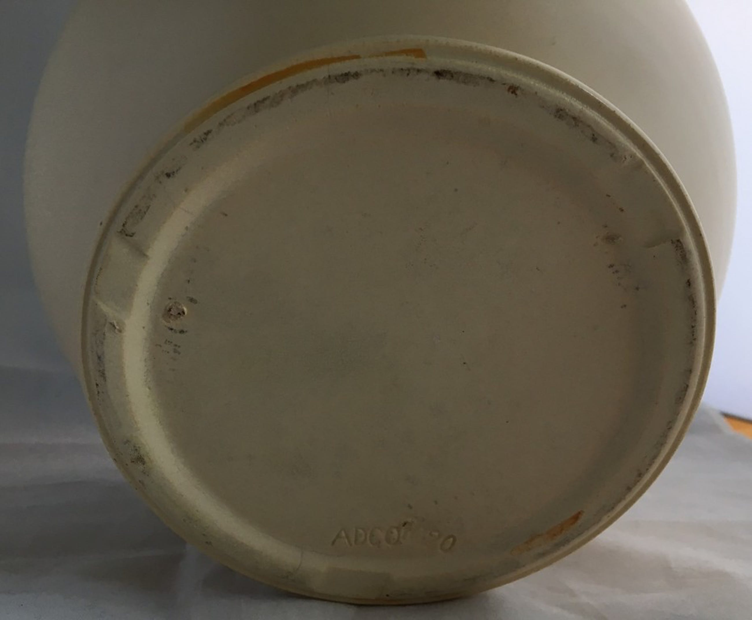 Mooie grote ADCO bolvaas model 1020, uitgevoerd in mat creme kleurig glazuur. In prima conditie, aan de onderzijde op de voet een klein haarlijntje. Aan de achterzijde voorzien van een ingedrukt merk en modelnummer.