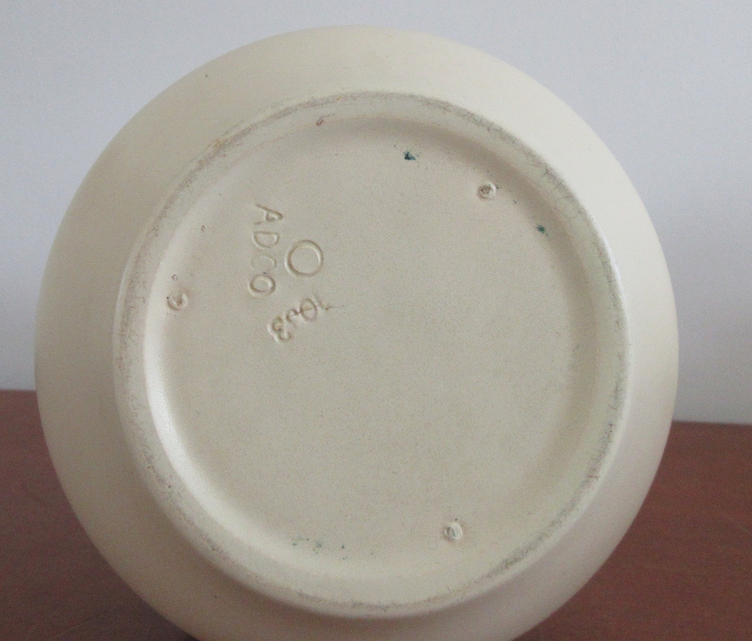 Mooie gestileerde matte creme witte ADCO vaas model 1033. In prima onbeschadigde conditie. Aan de onderzijde voorzien van ingedrukt blindmerk en modelnummer.