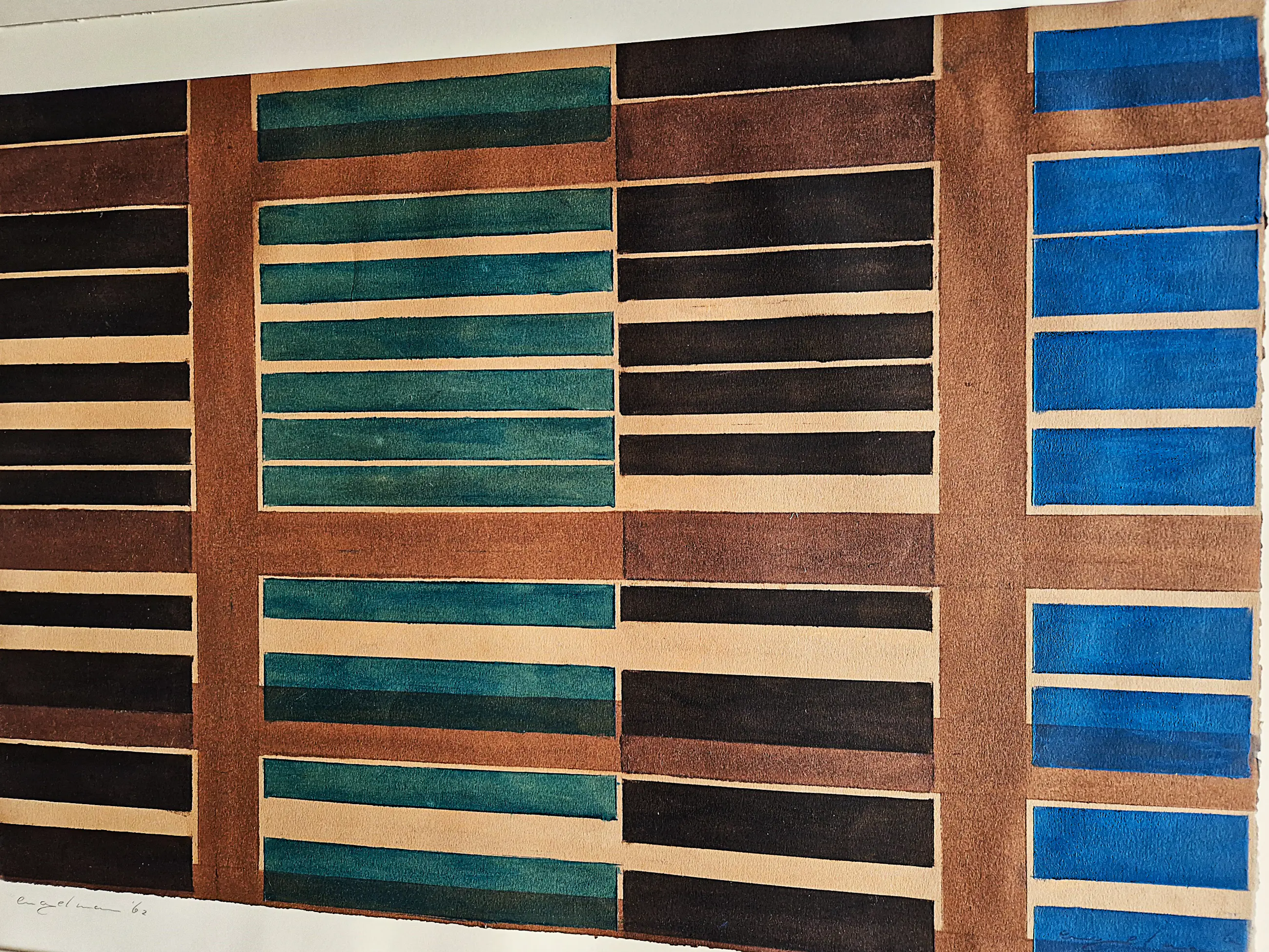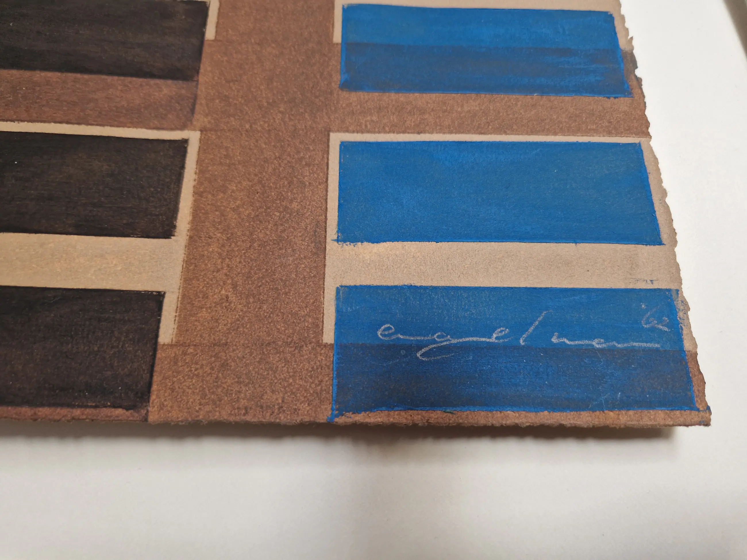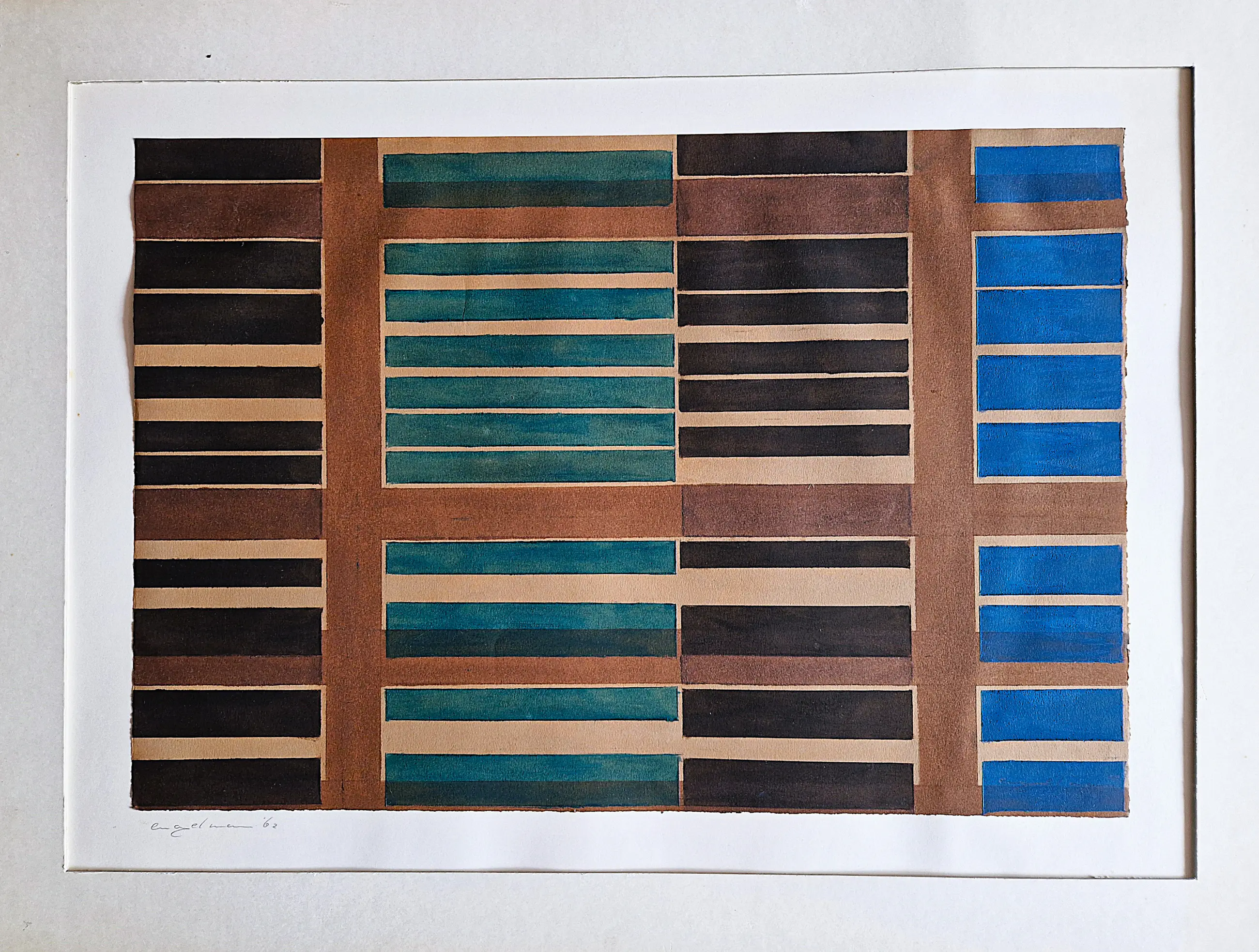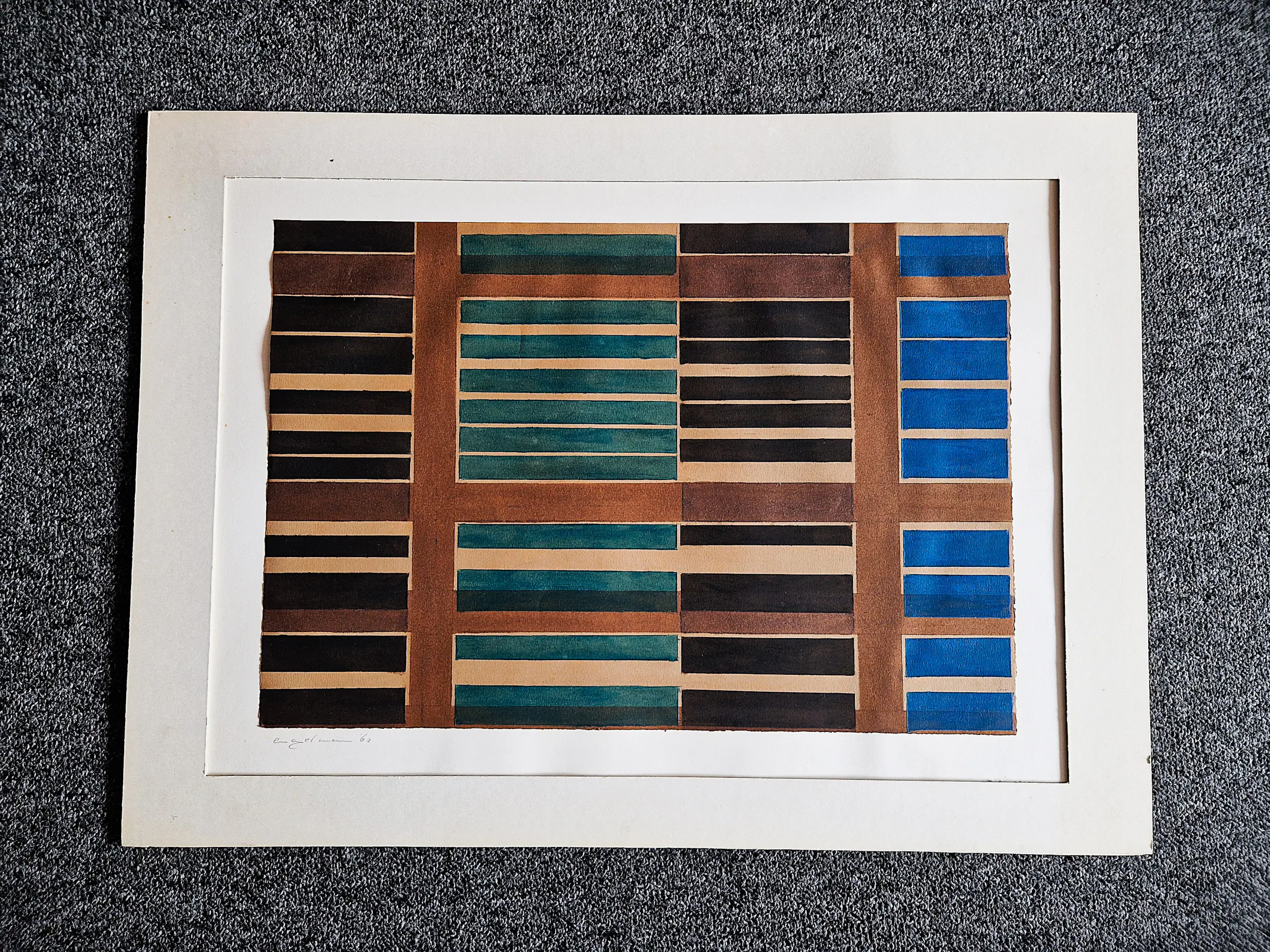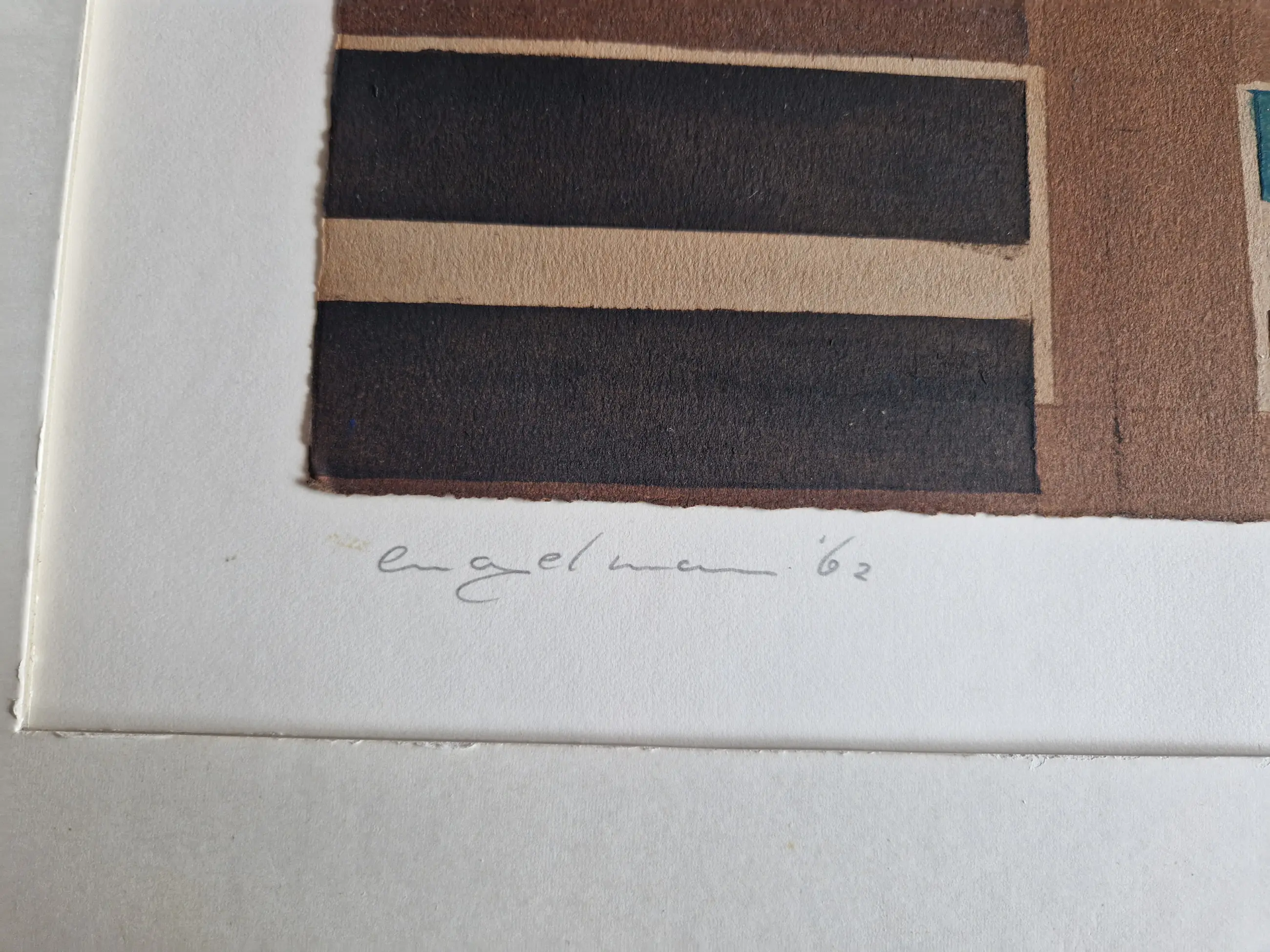 - 1962. Sjabloondruk. Anders dan bij de Monotype techniek maakte Engelman hier gebruik van de zg. sjabloondruk techniek : in meerdere lagen aangebrachte waterverf.
