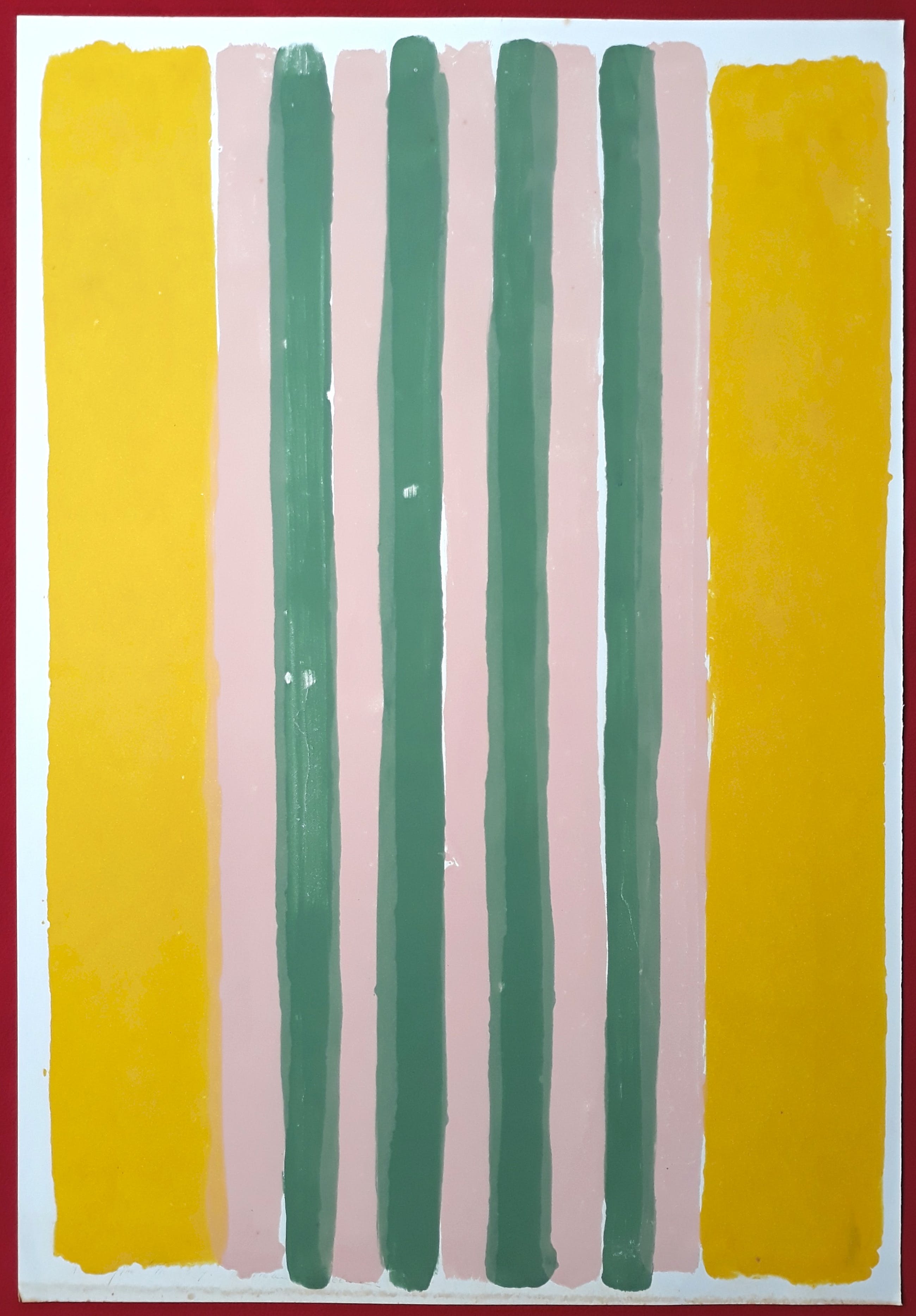 Krachtig abstract werk van (toen nog) Adriaan Engelman. Monotype op dik papier, met potlood gesigneerd en gedateerd rechtsonder (66/10 = oktober 1966). In goede conditie; paar foxing plekjes en helemaal aan de onderkant van het blad zit een soort verkleuring. Daarom iets lager geprijst. Afkomstig uit de nalatenschap van de kunstena(a)r(es).