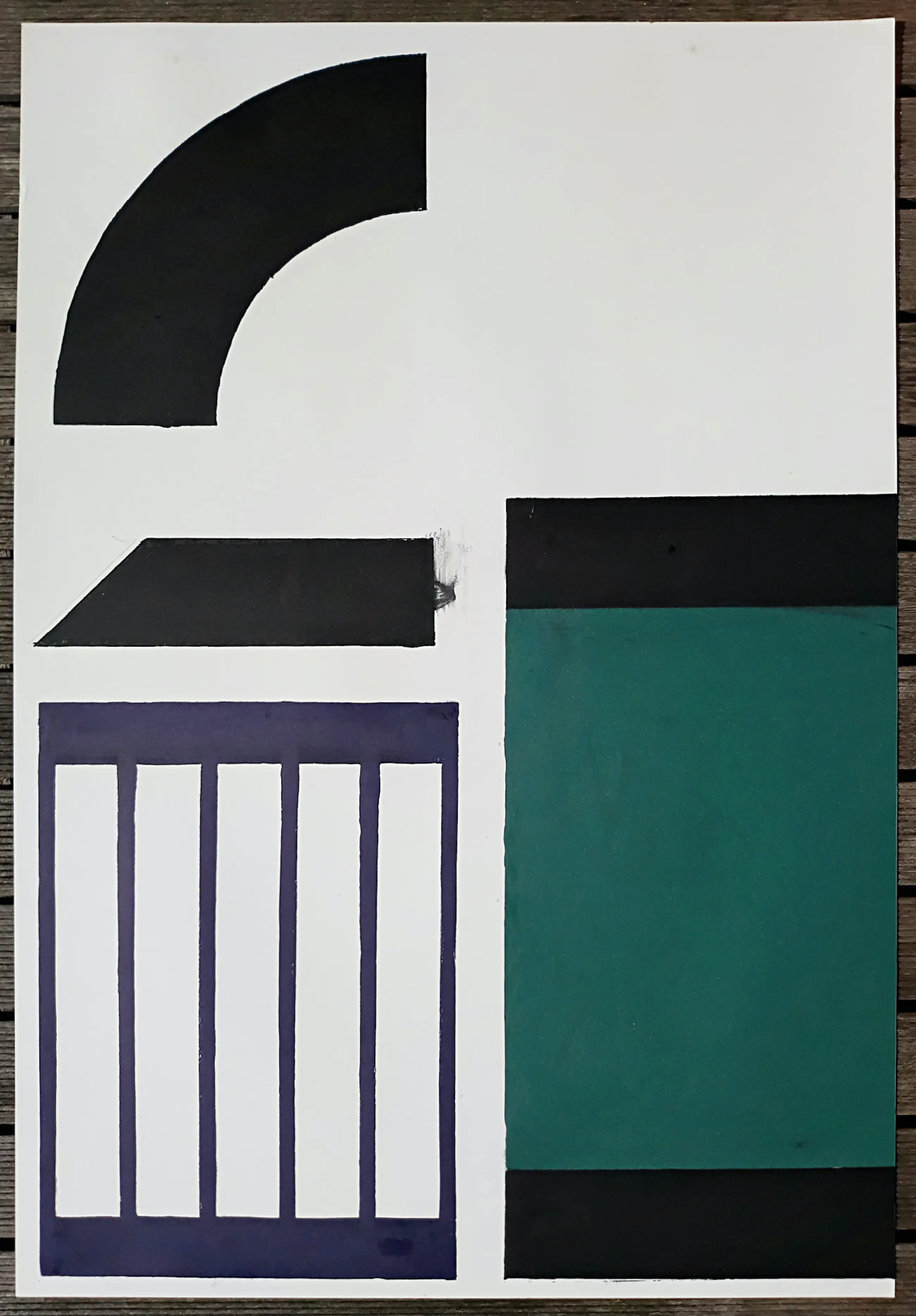 Strak abstract werk van (toen nog) Adriaan Engelman. Monotype op dik papier, niet gesigneerd, te dateren eind jaren 60. In goede conditie, wel wat onvolkomenheden die tijdens het drukken zijn veroorzaakt (inherent aan monotype, maar dit exemplaar is nog wat slordiger). Afkomstig uit de nalatenschap van de kunstena(a)r(es).