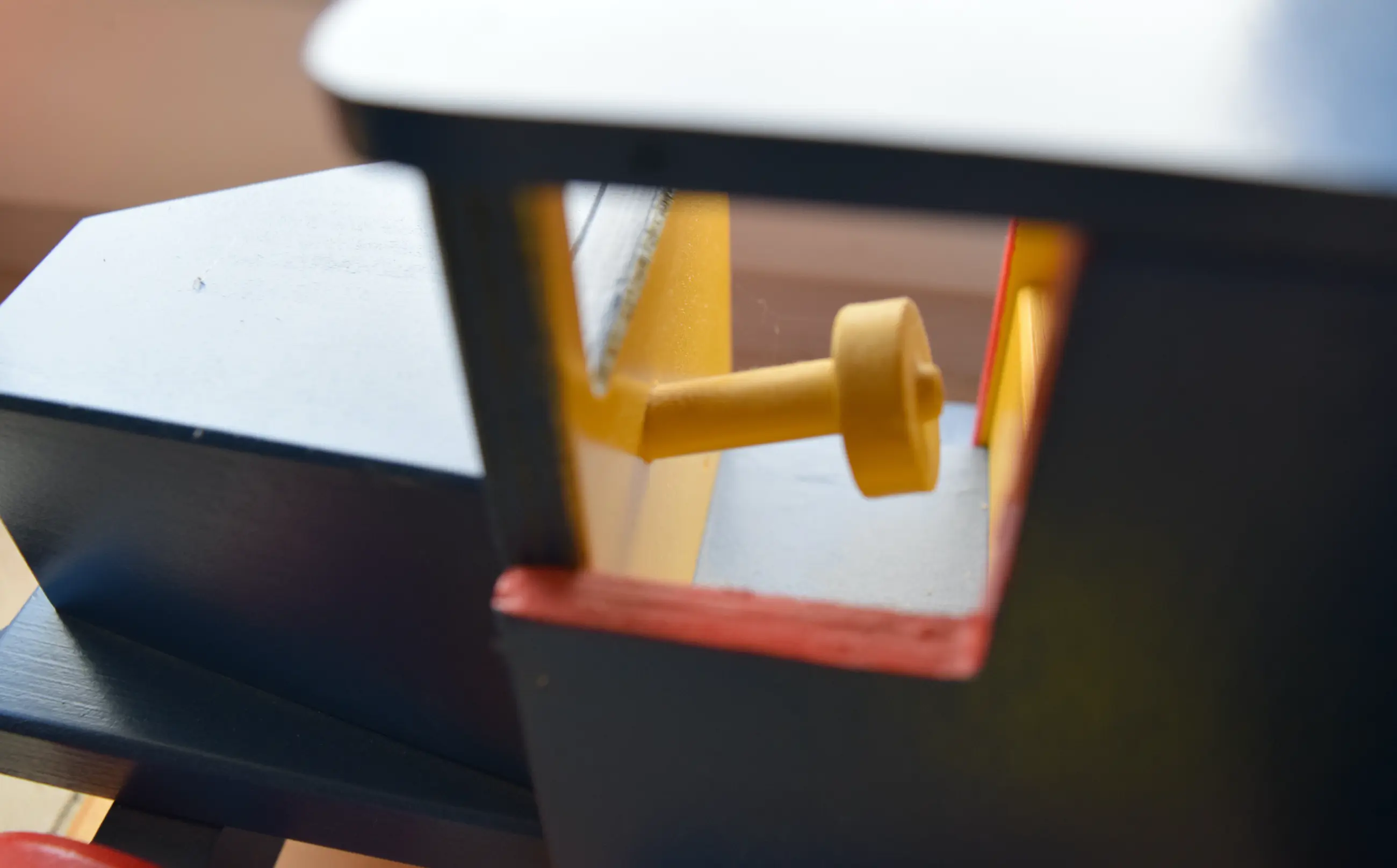 replica van een jaren '30 speelgoedauto uitgevoerd in de kleuren van DE STIJL
