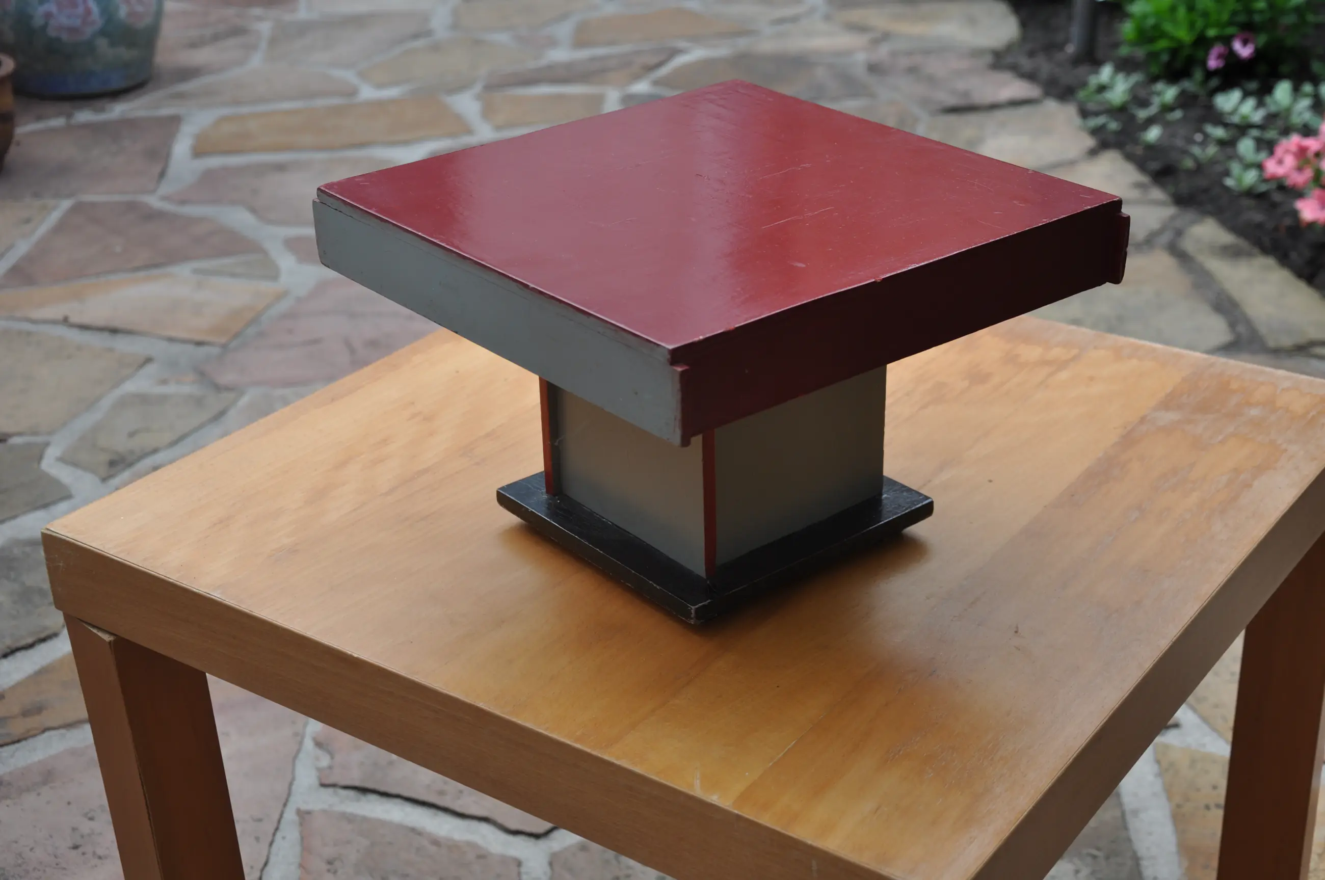 Een klein beetje slijtage van de Japanse lak aan de voet van het meubeltje.