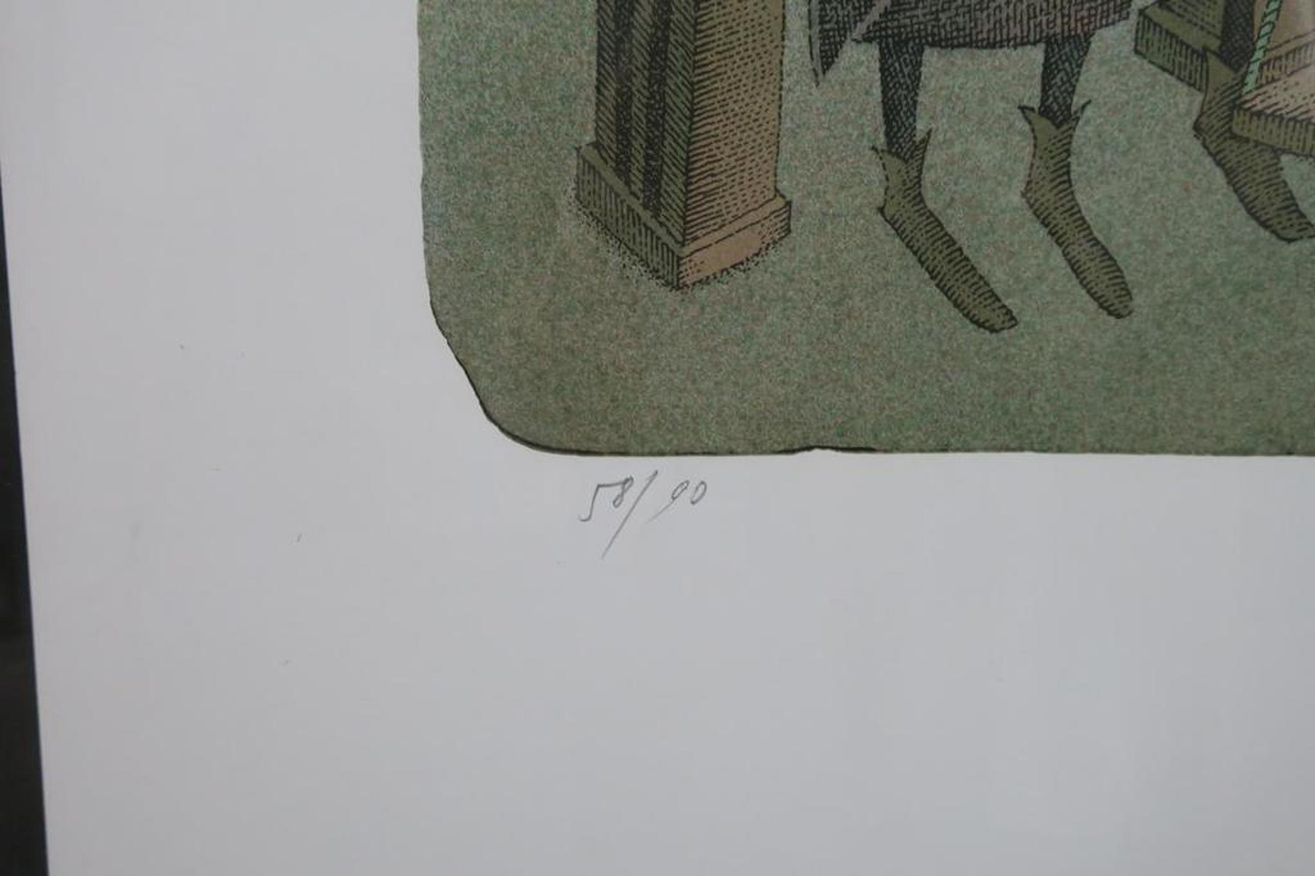 Bij foto´s van ingelijste werken kan spiegeling zichtbaar zijn. Het oplagenummer op de foto(‘s) kan afwijken van het hierboven genoemde correcte oplagenummer.