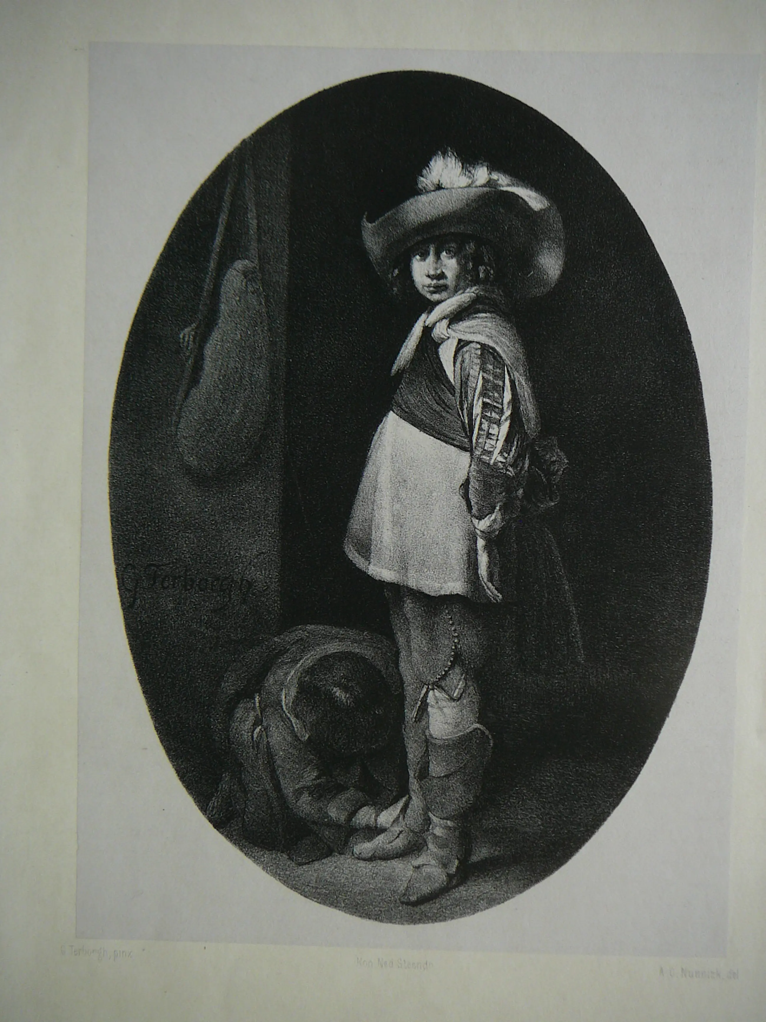 Mooie Litho van Een officier naar Anthonie Palamedesz Pinx G Terborgh Del A.C.Nunnink gedrukt door de Ned steen Drukkerij