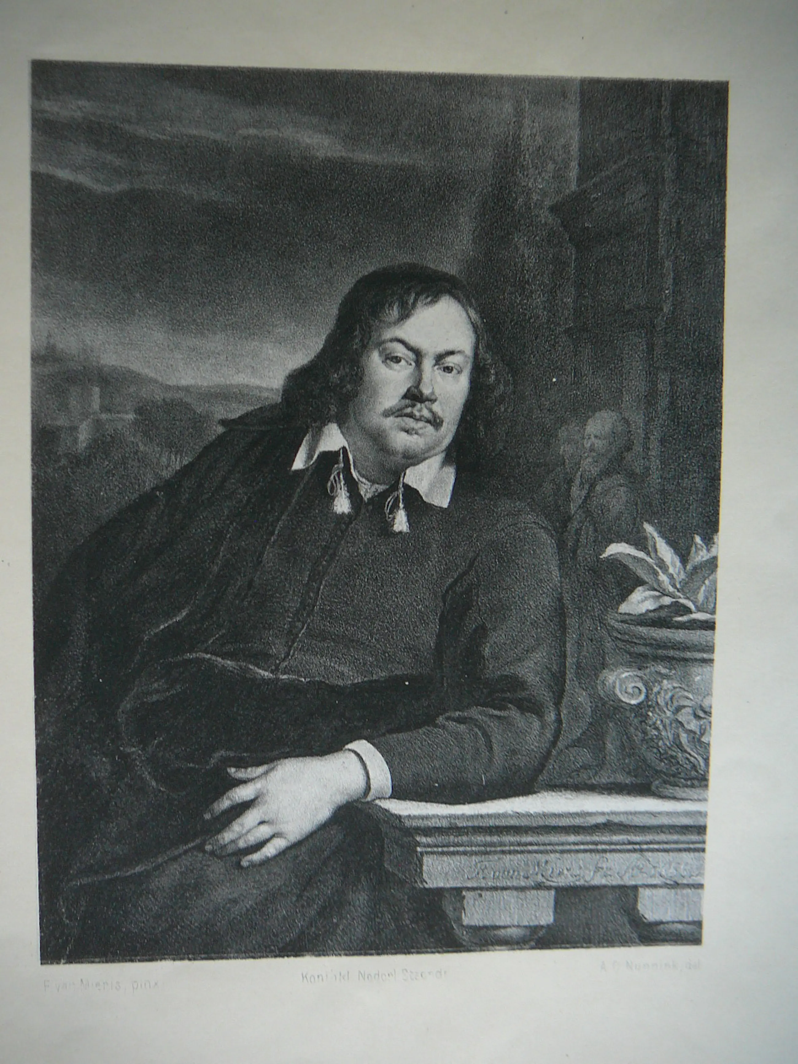 Mooie litho van F van Mieris door A.C.Nunnink afm papier 25,5 x 34 cm