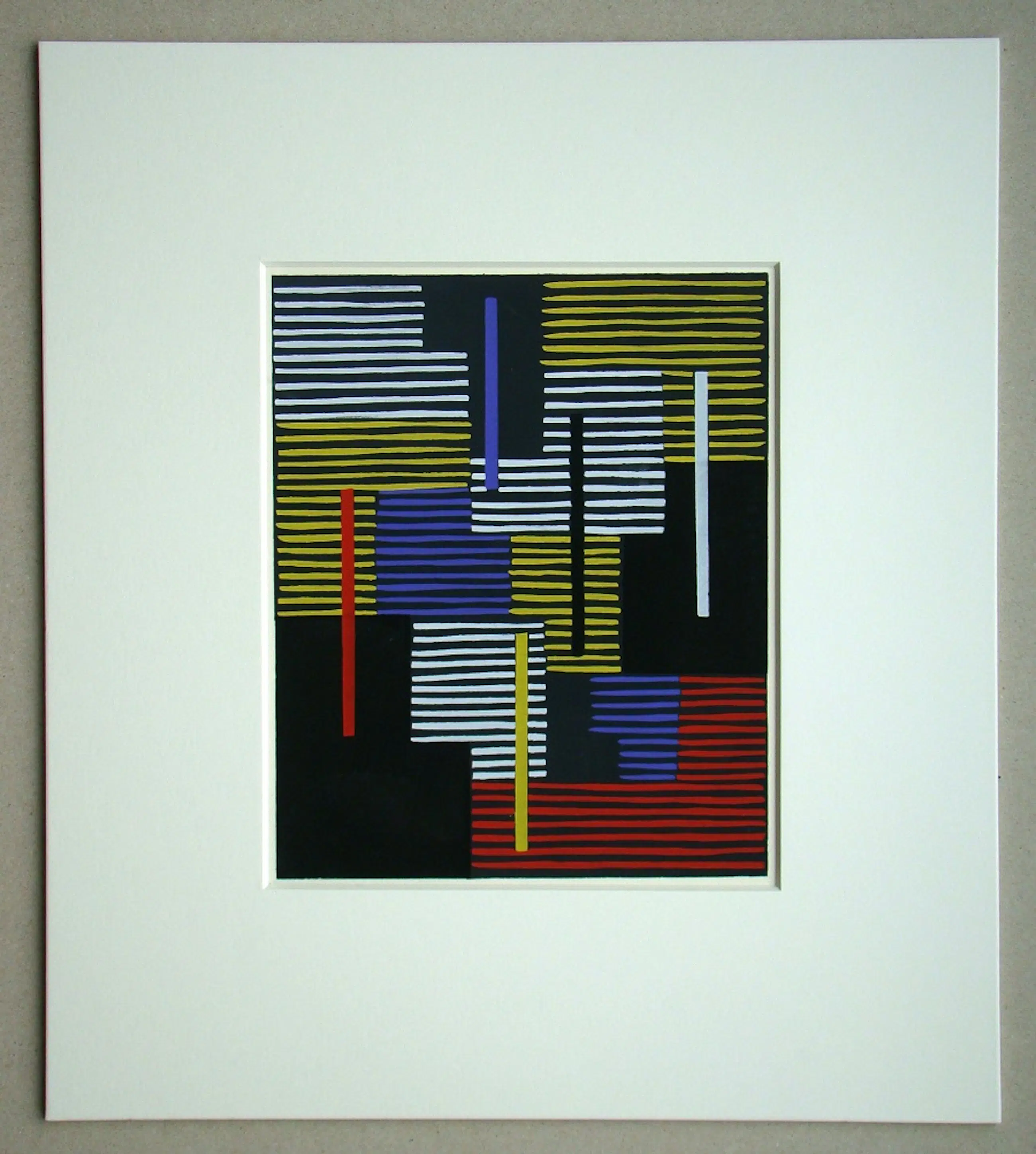 Pochoir / stencil in gouachekleuren op stevig geweven papier, niet gesigneerd.