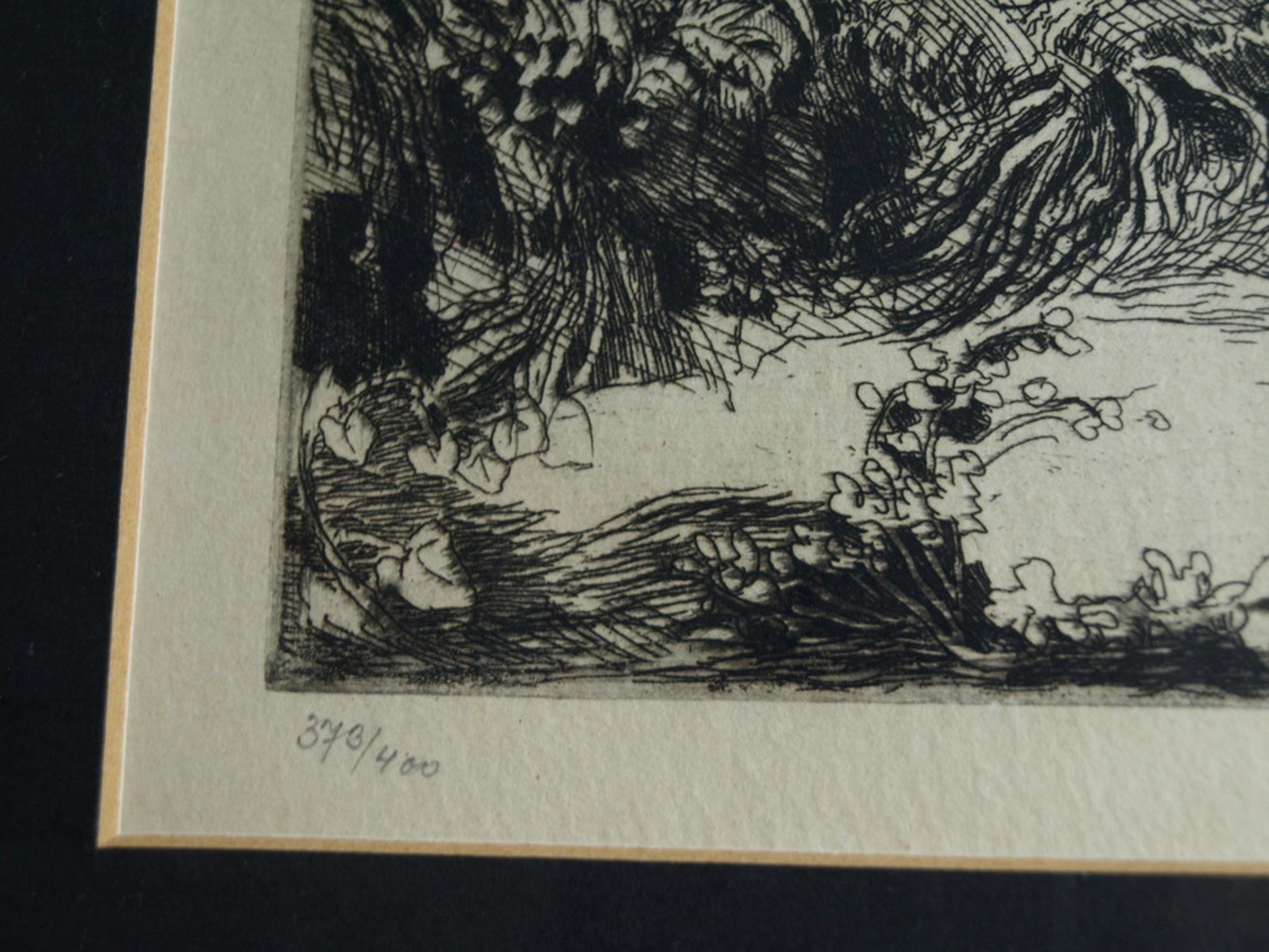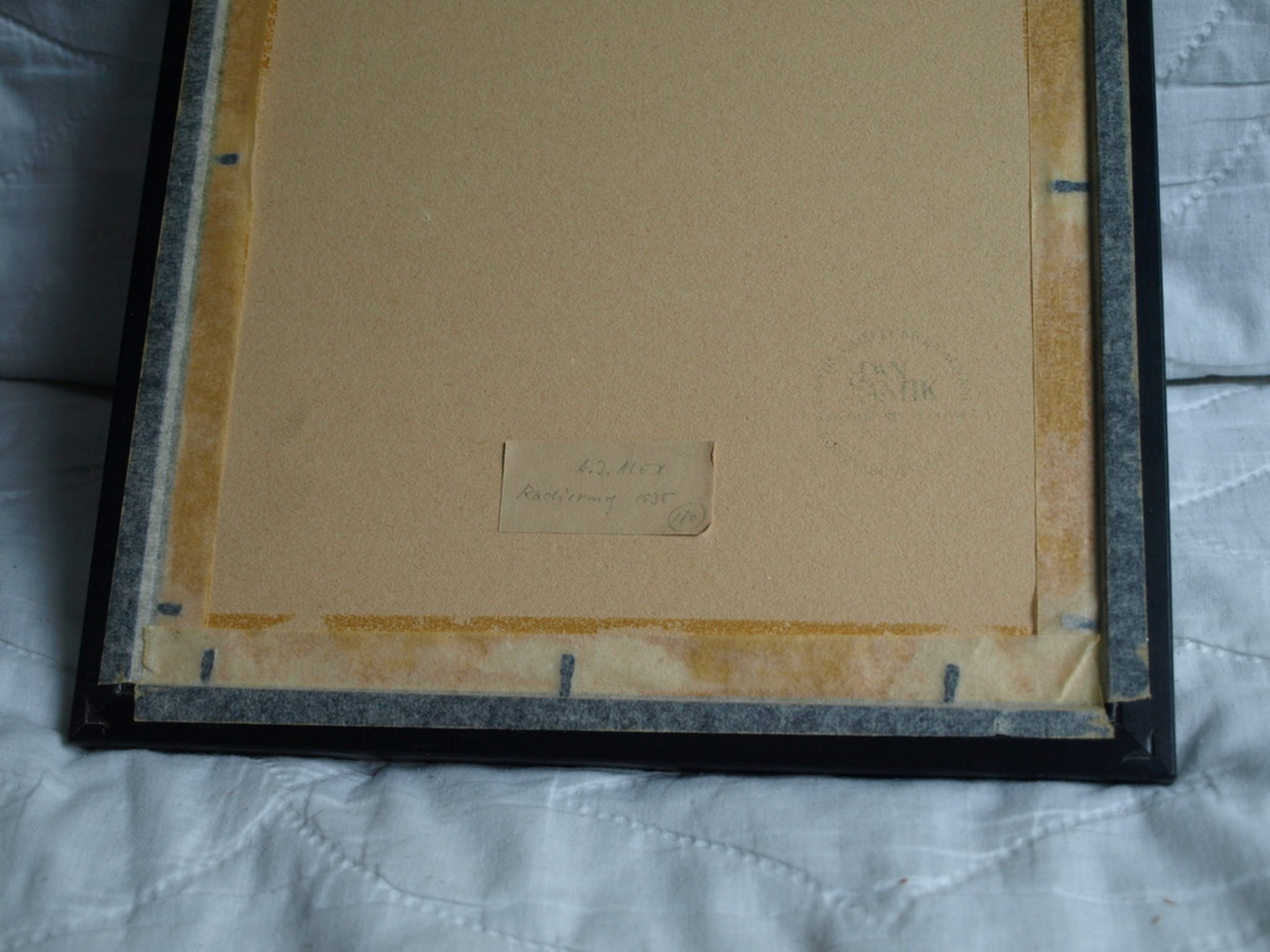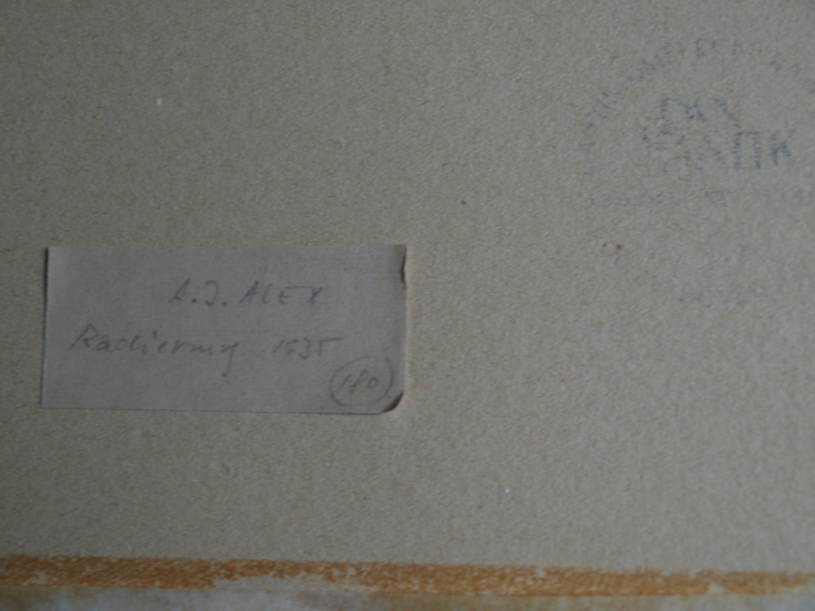 Een ingelijste ets uit 1935 van de Tsjechische kunstenaar Adolf Jelinek Alex.