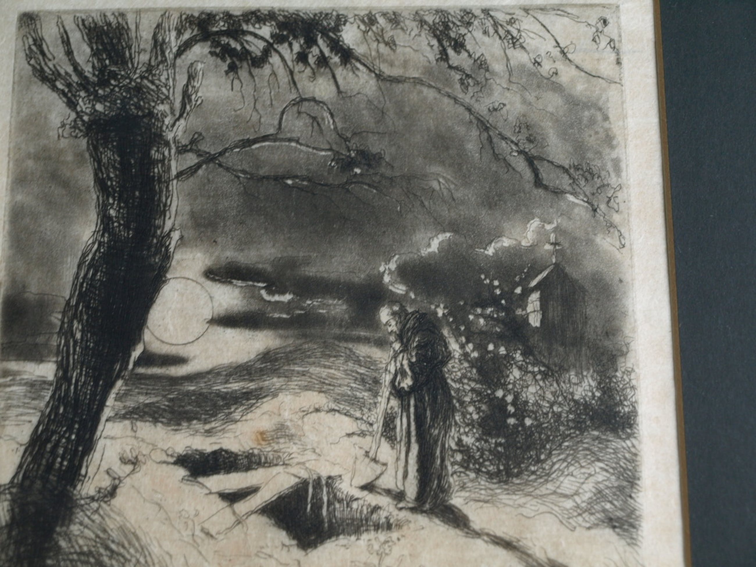 Een ingelijste ets uit 1930 van de Tsjechische kunstenaar Adolf Jelinek Alex.