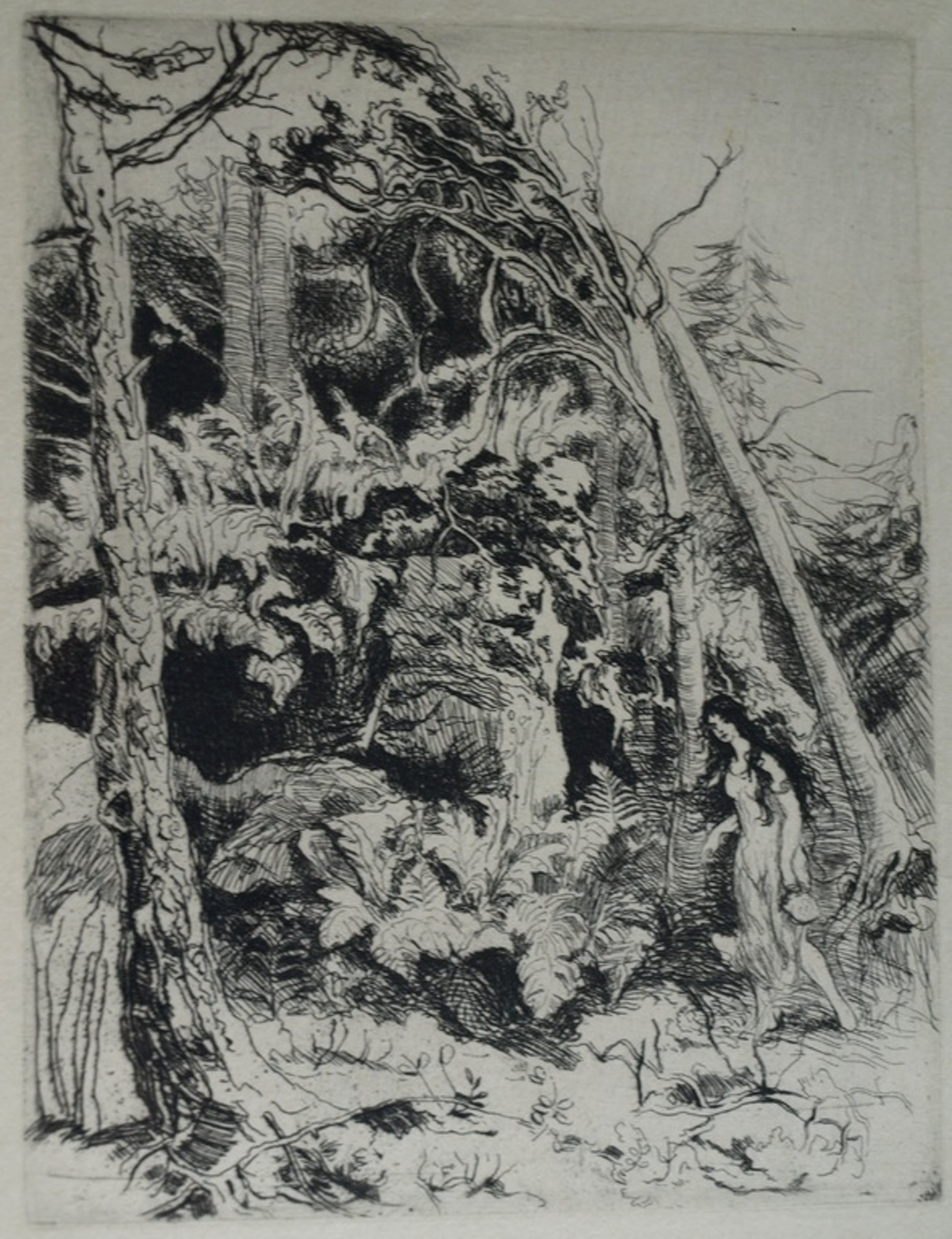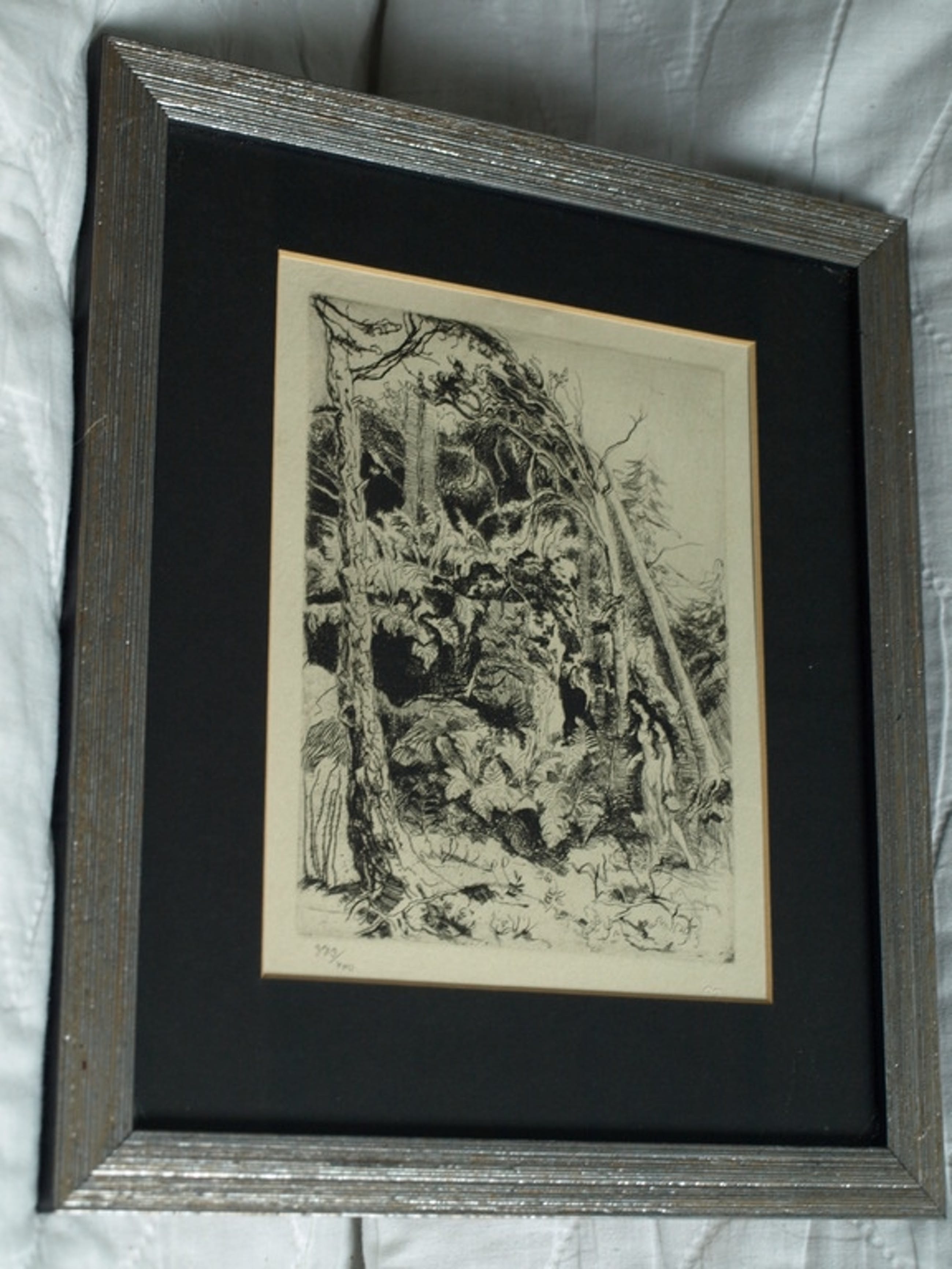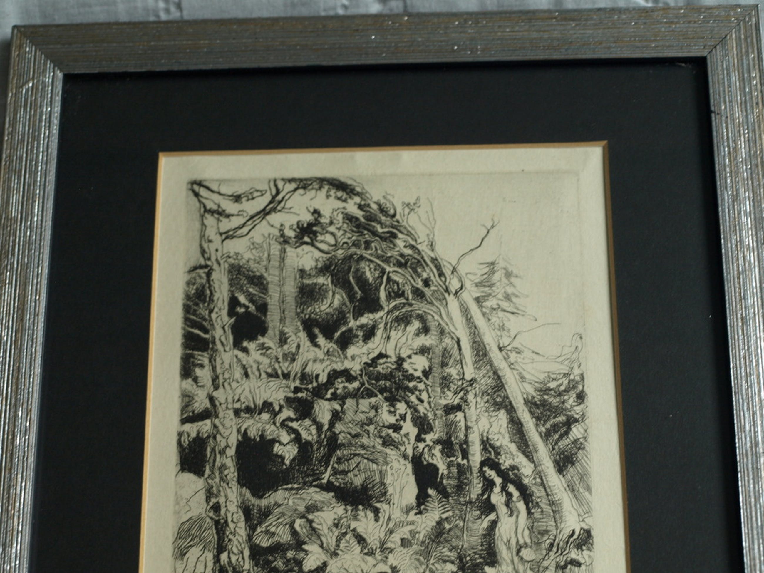 Een ingelijste ets uit 1935 van de Tsjechische kunstenaar Adolf Jelinek Alex.
