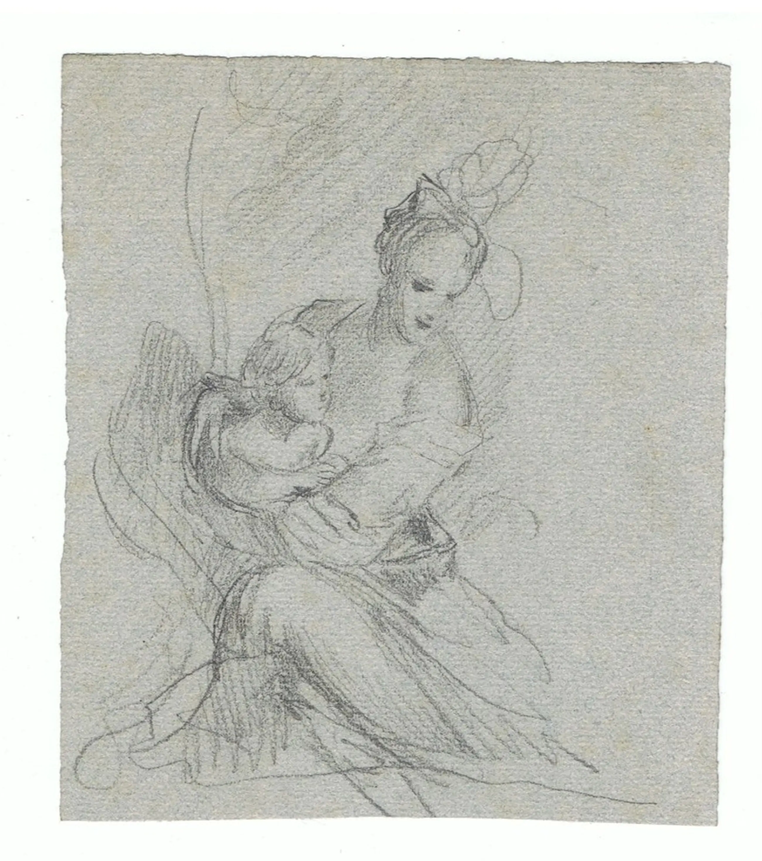 | De tekening verkeert in een goede staat. Geen scheurtjes. Slecht een aantal zeer kleine vlekjes. Op de achterzijde drie stukjes passe-partout tape. | |||||||||