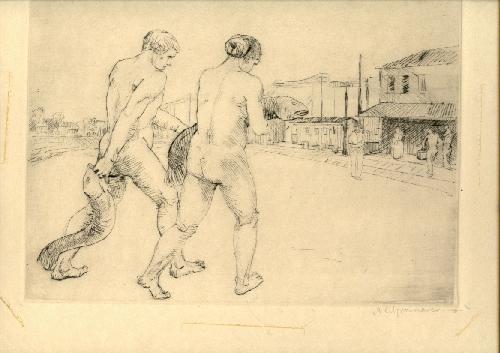 Adolf Schinnerer radierung rechts unten eigenhändig signiert. Rückseitig bezeichnet: Aus Das geträumte Paar Sie laufen... Plattengröße:Etwa 25.7 mal 21 , cm .Der schöne breite Rand ist leider durch Klebereste eines unsachgemäßen Tesafilmeinsatzes im Passepartout beeinträchtigt. Siehe scan. Rückseitig mit zwei Papierstreifen auf Karton befestigt. Fragen bitte unbedingt vorab klären! Privatverkauf aus Privatsammlung. Versand 8 Euro.