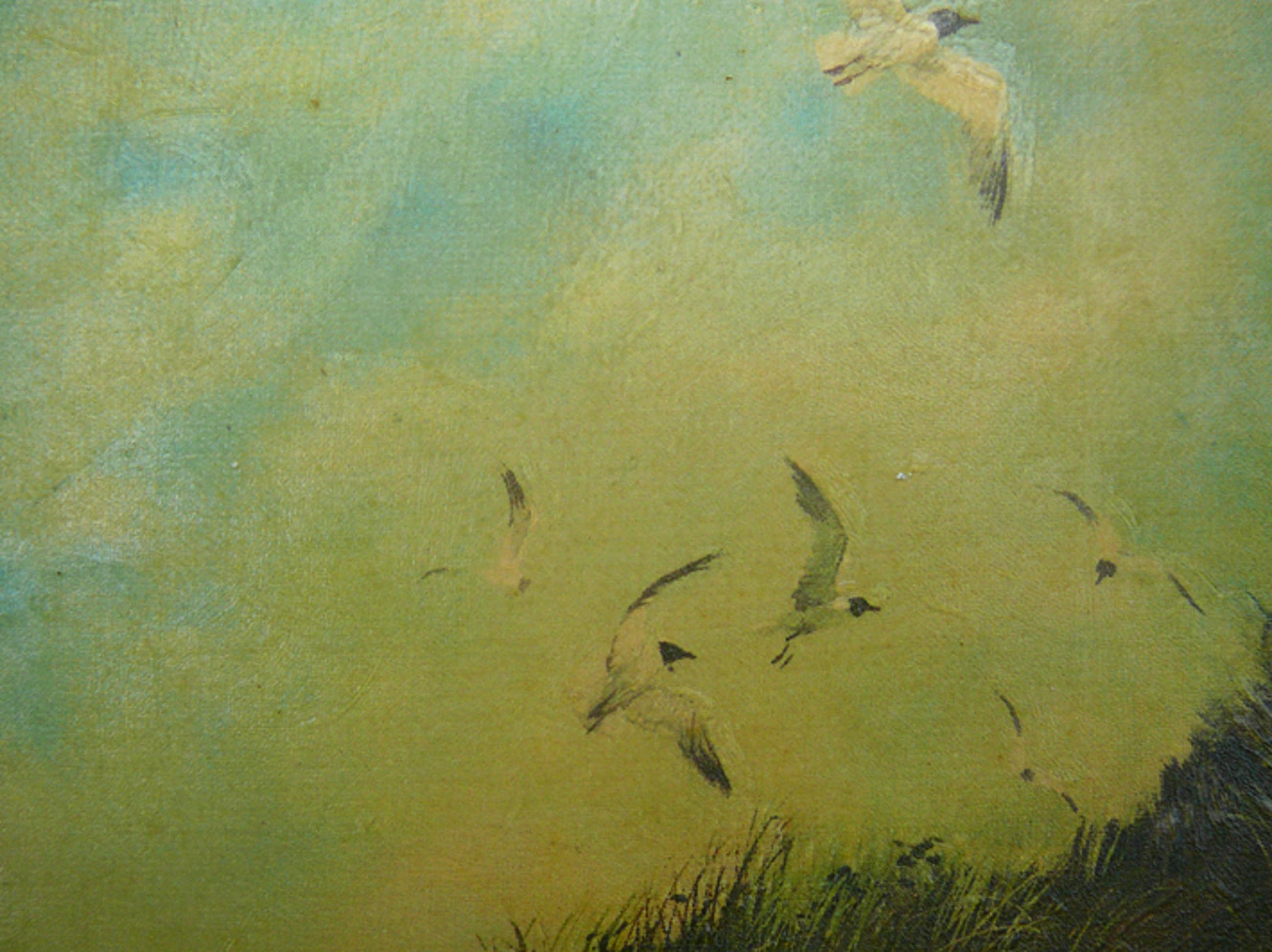 Prachtig realistisch olieverf van de Amerikaanse kunstenaar met Russische roots Adolf Sehring op schildersboard. In Nederland vrij onbekend, in de VS een gewaardeerd kunstenaar. In goede conditie afgewerkt met een groenig vernis.