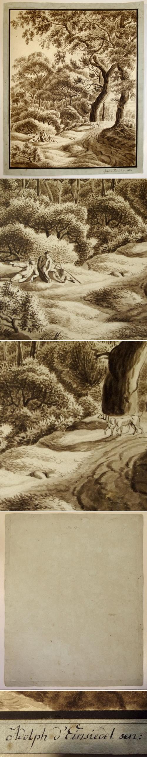 Adolph Graf von Einsiedel (1776-1821). Waldinneres mit zwei Rastenden und Jäger zu Pferd. Handzeichnung, 1803.