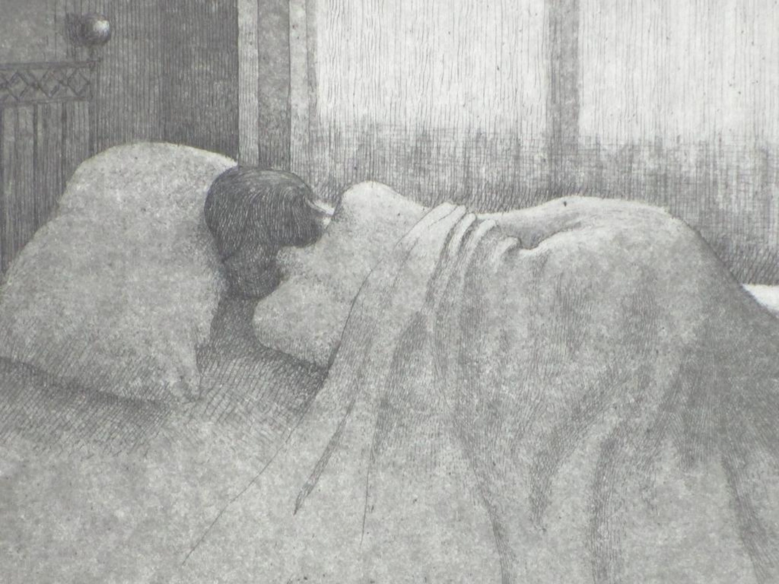 Voorstelling van een slapende vrouw.