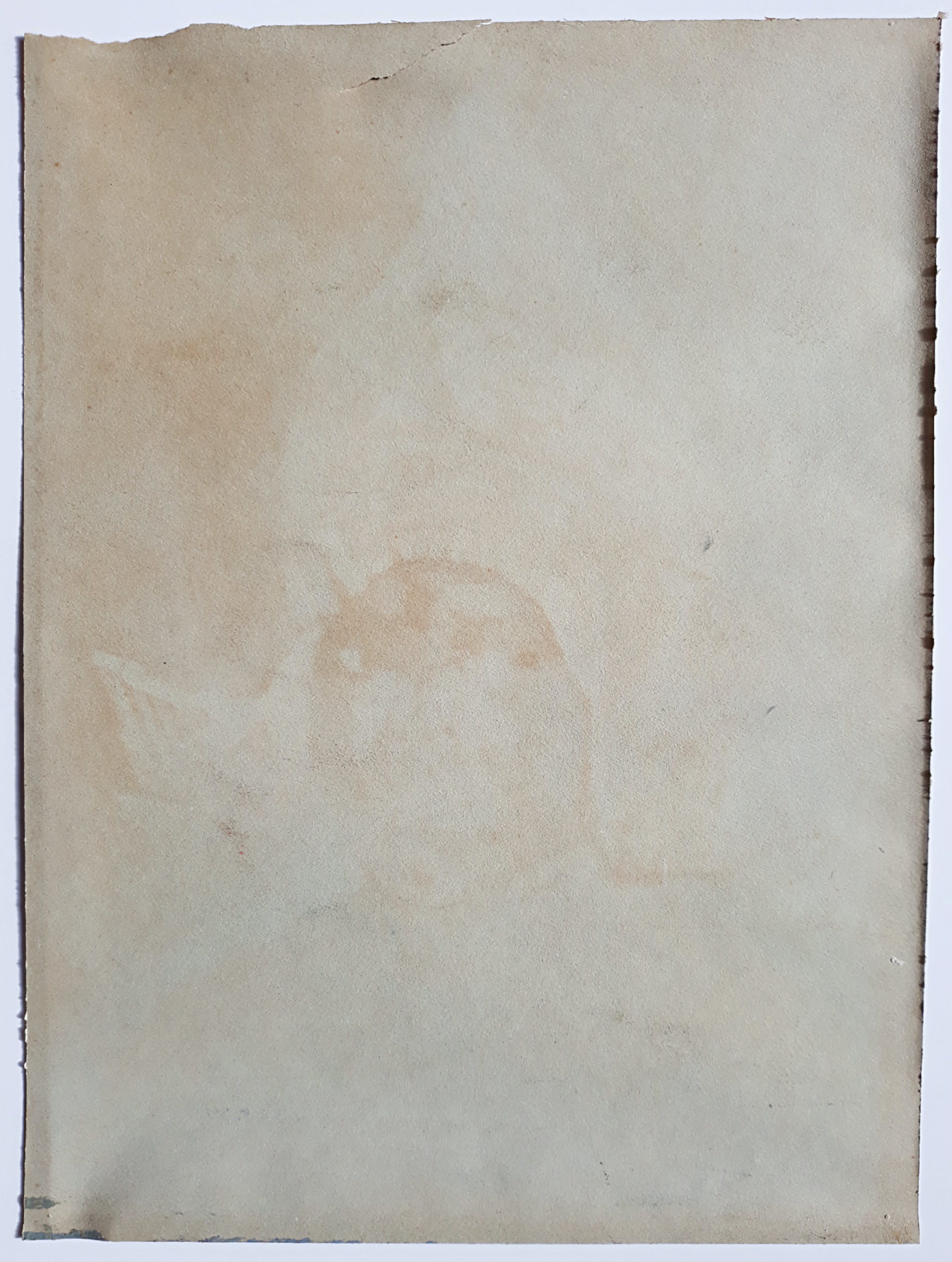 | Enkel een scheurtje in het papier middenboven aan de rand. Ingelijst met passe-partout nauwelijks zichtbaar. | |||