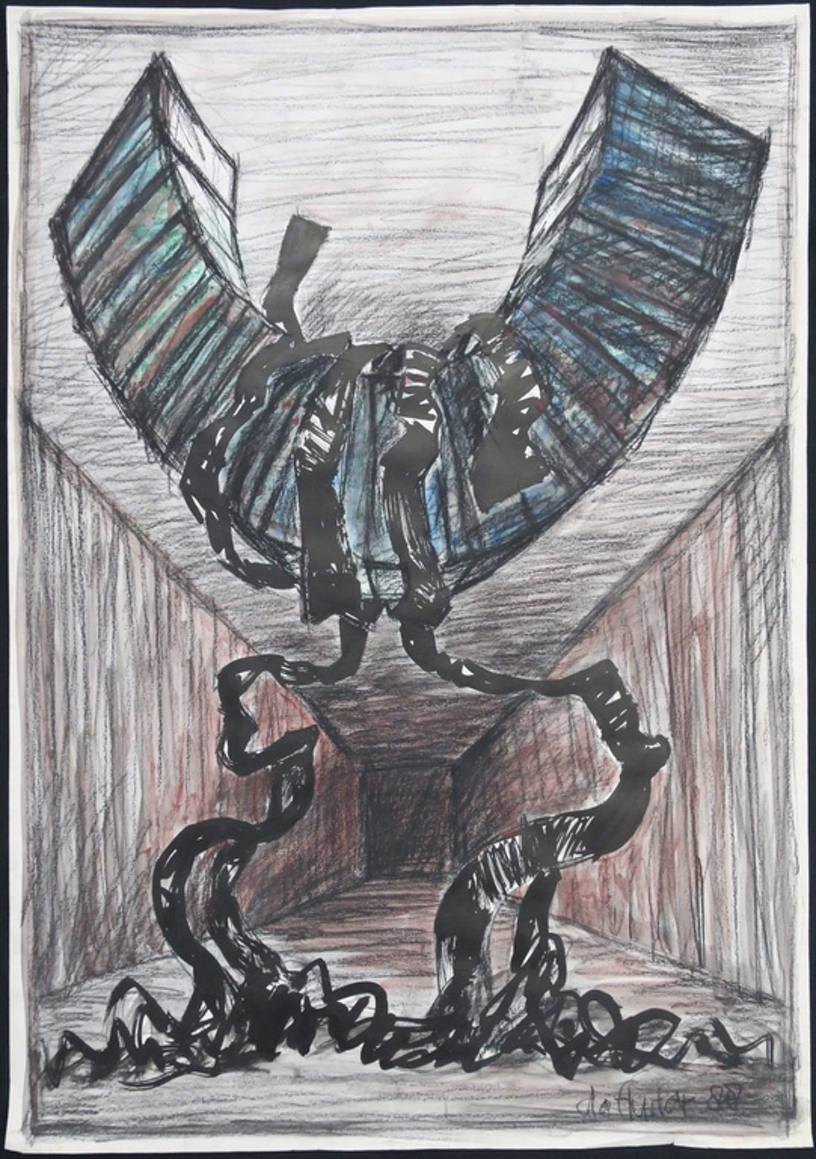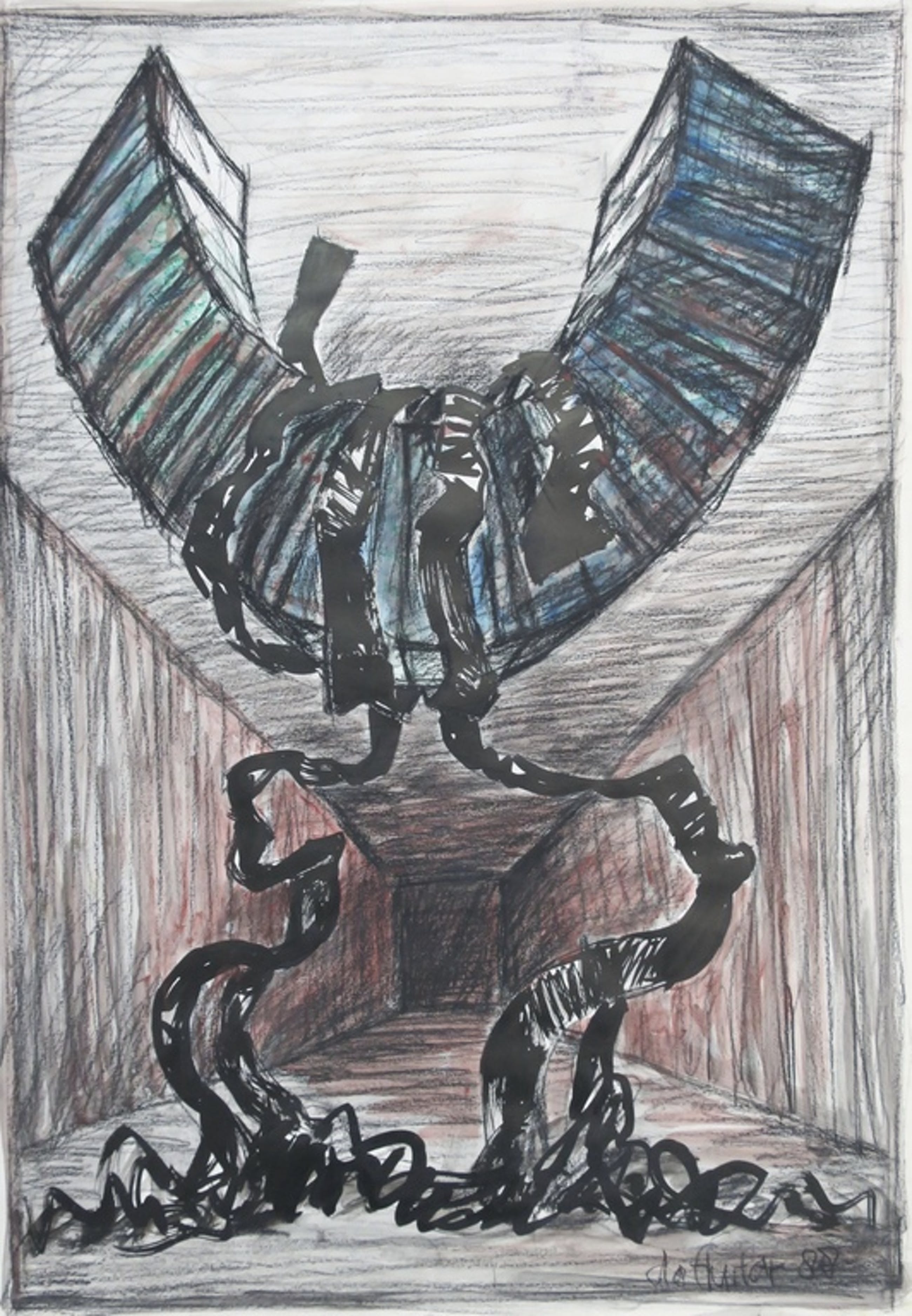 Materiaal: Gemengde techniek, oa. inkt, krijt en aquarel op papier