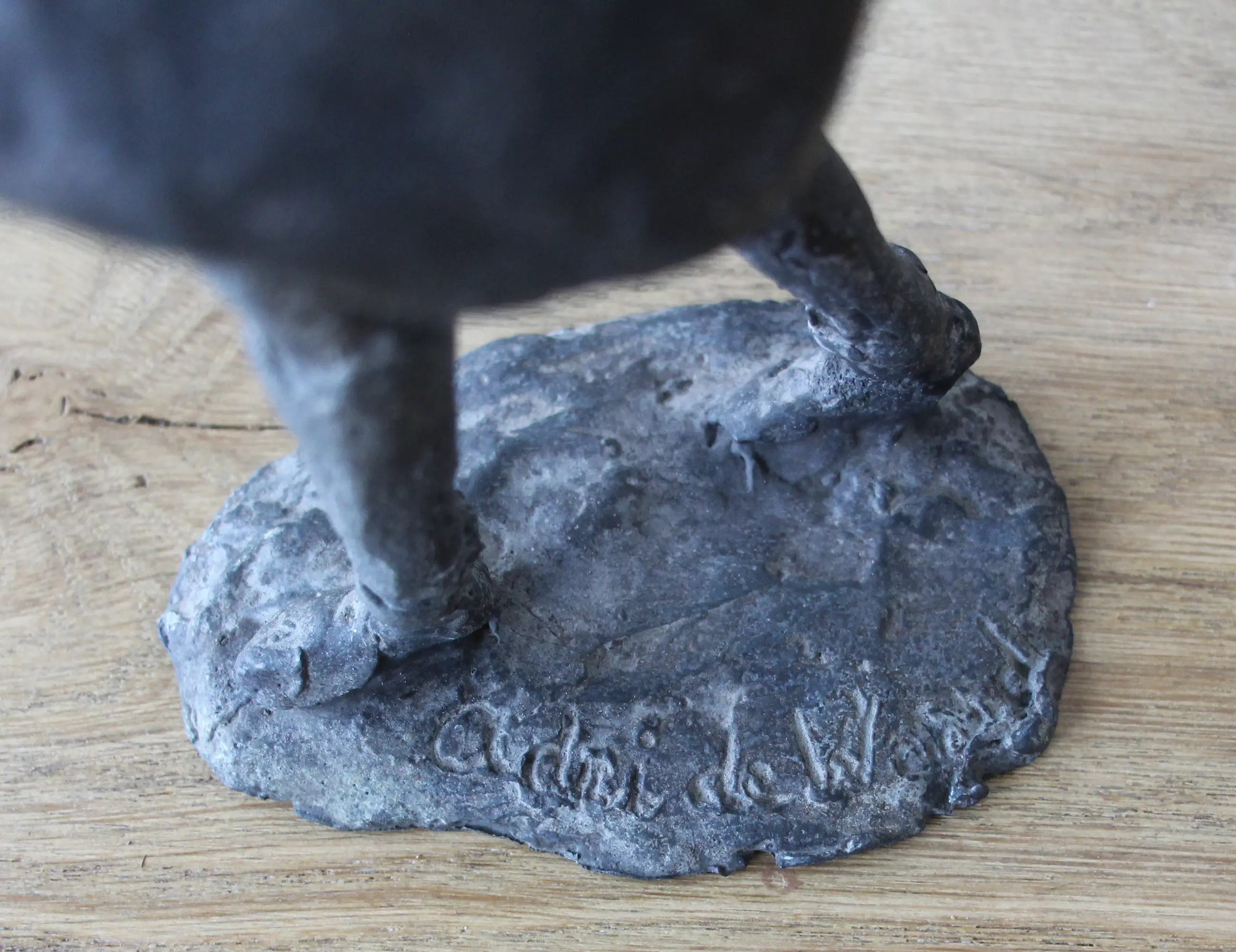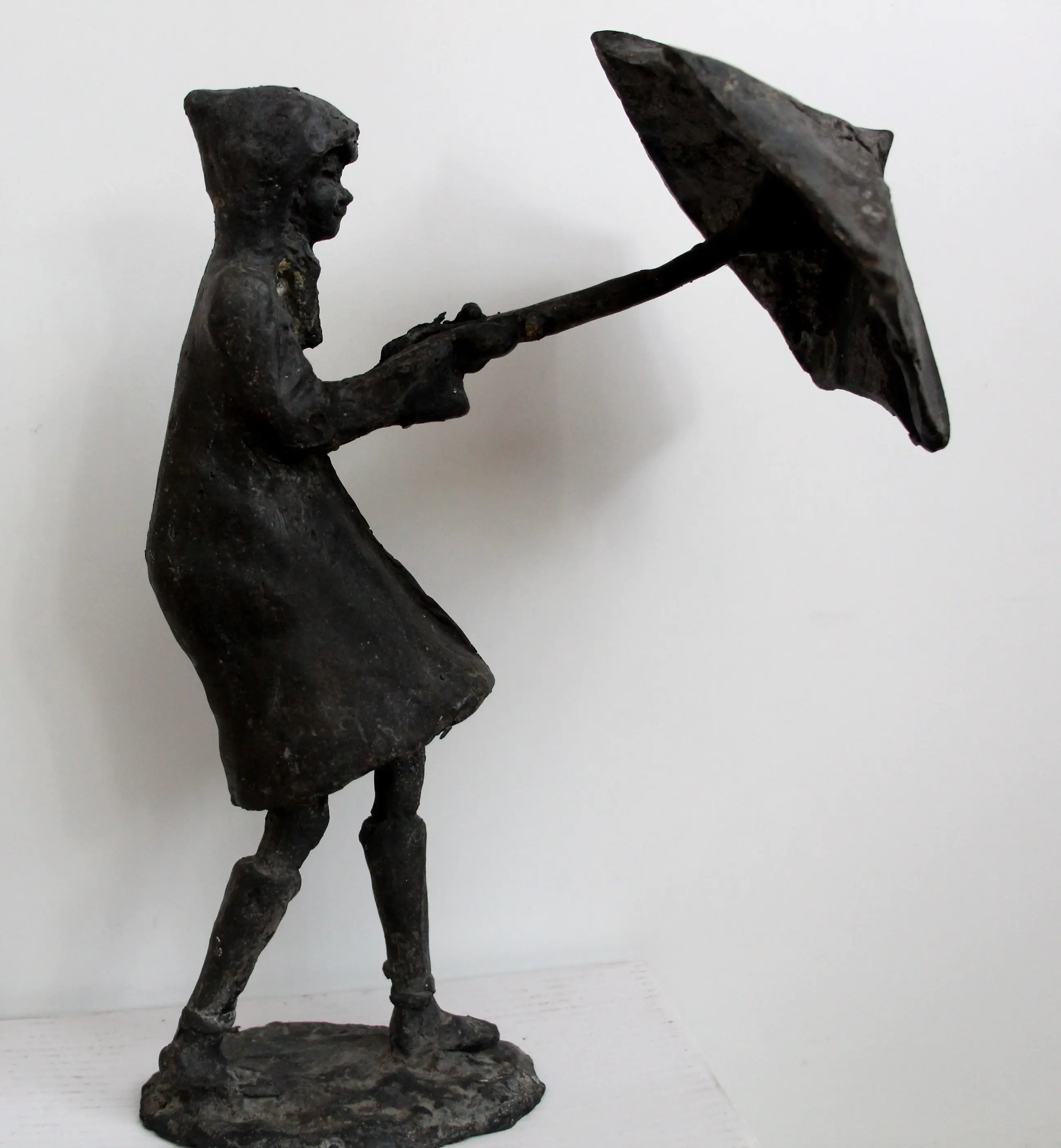 Prachtig beeld van de in Rotterdam geboren kunstenaar Adri de Waard. Titel: Meisje met paraplu. Het beeld is gesigneerd in de voet.